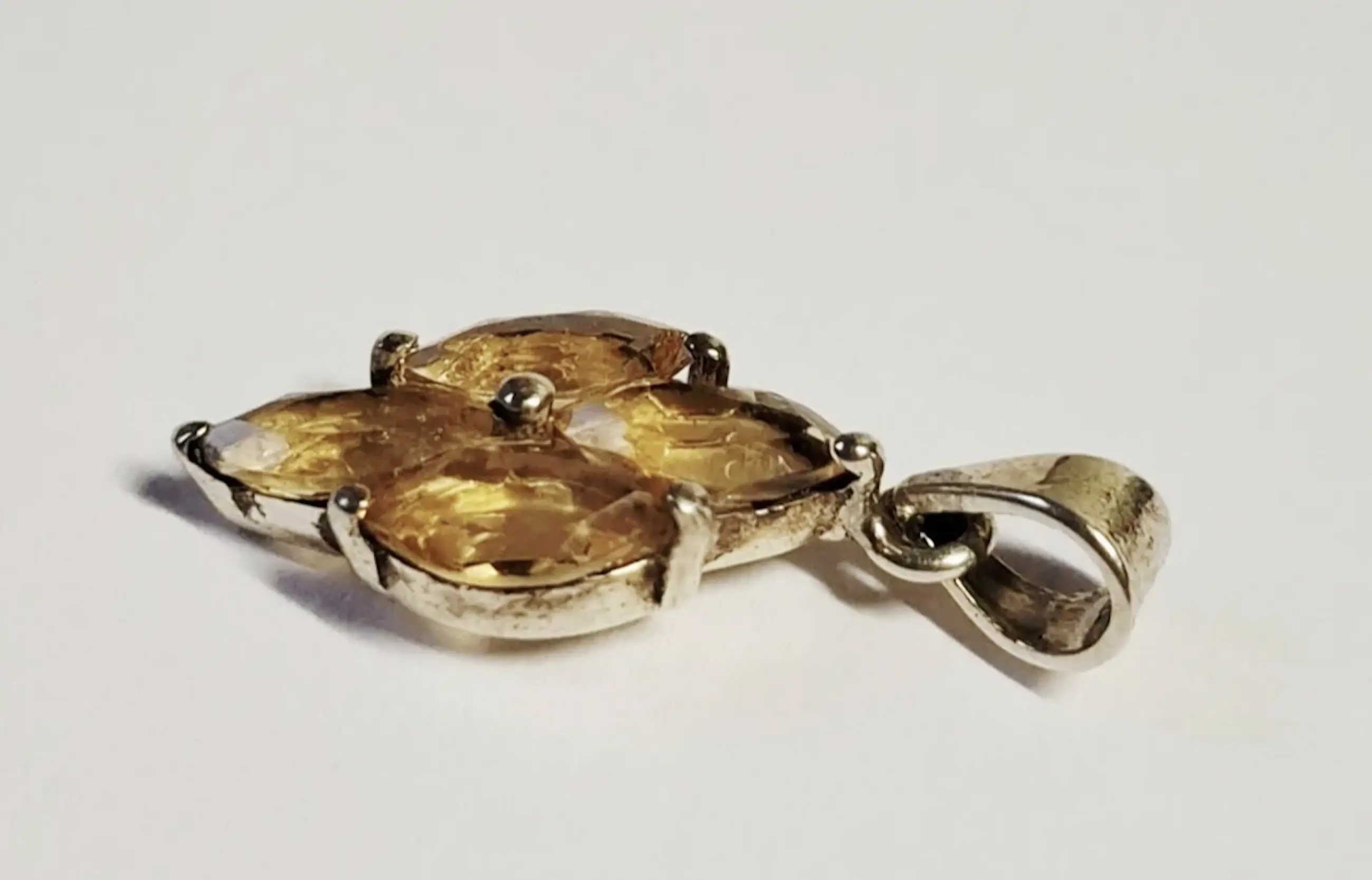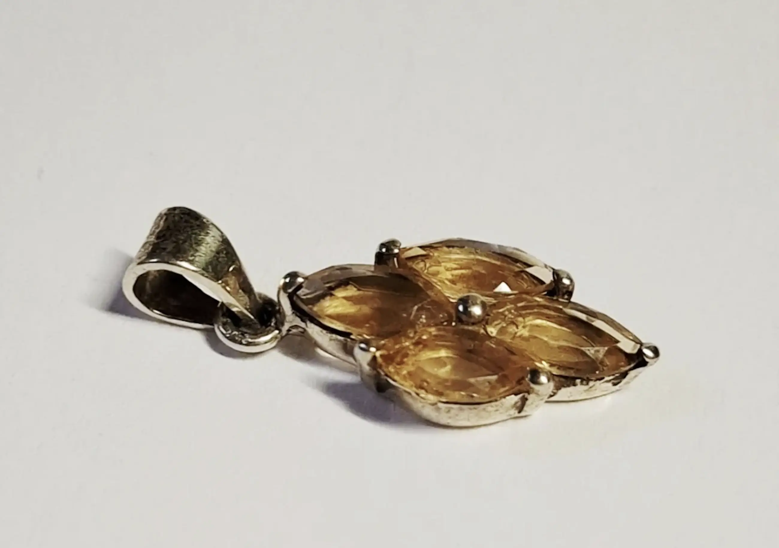 Nieuwe zilveren hanger met facet geslepen citrien: gele edelsteen,