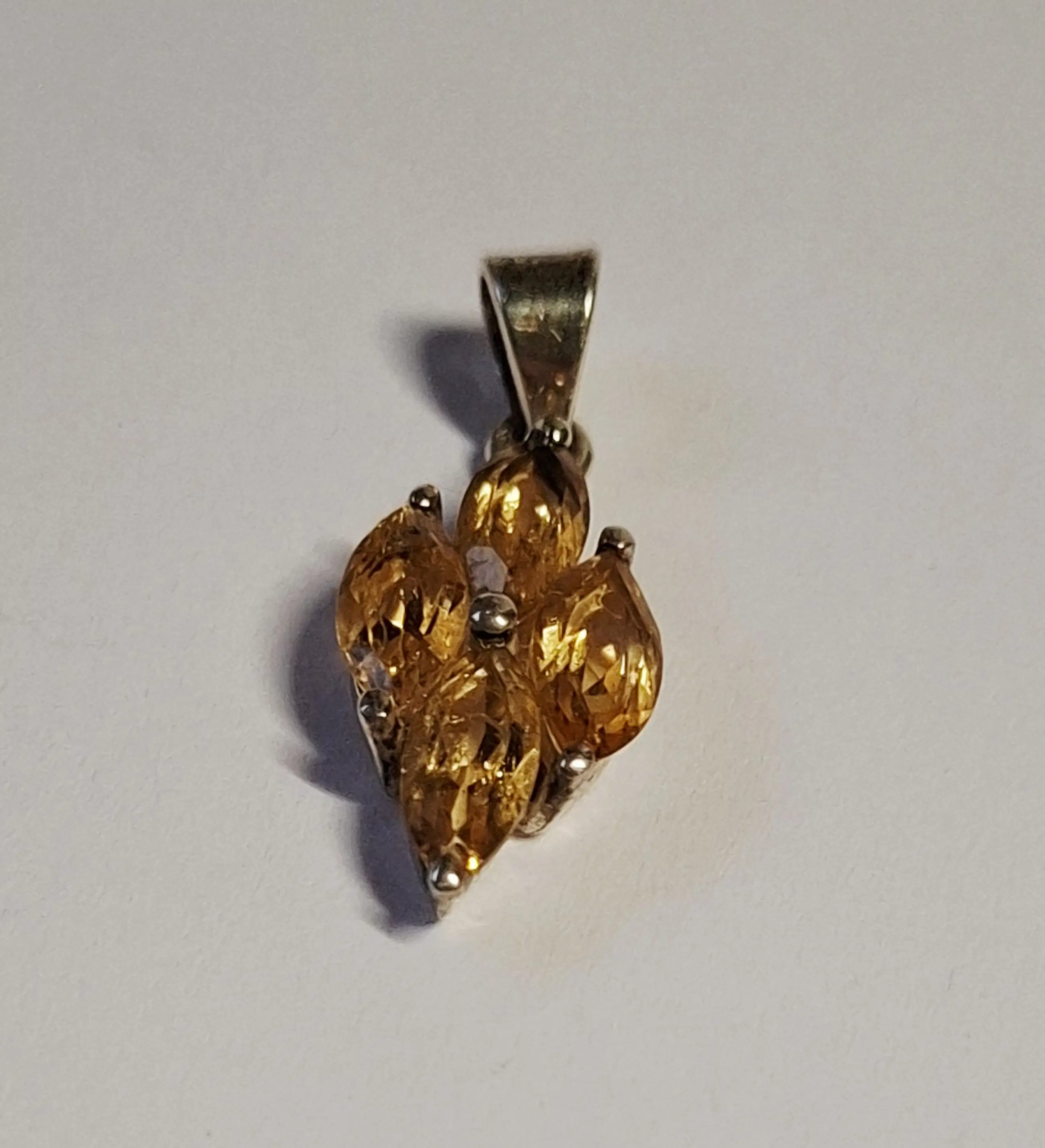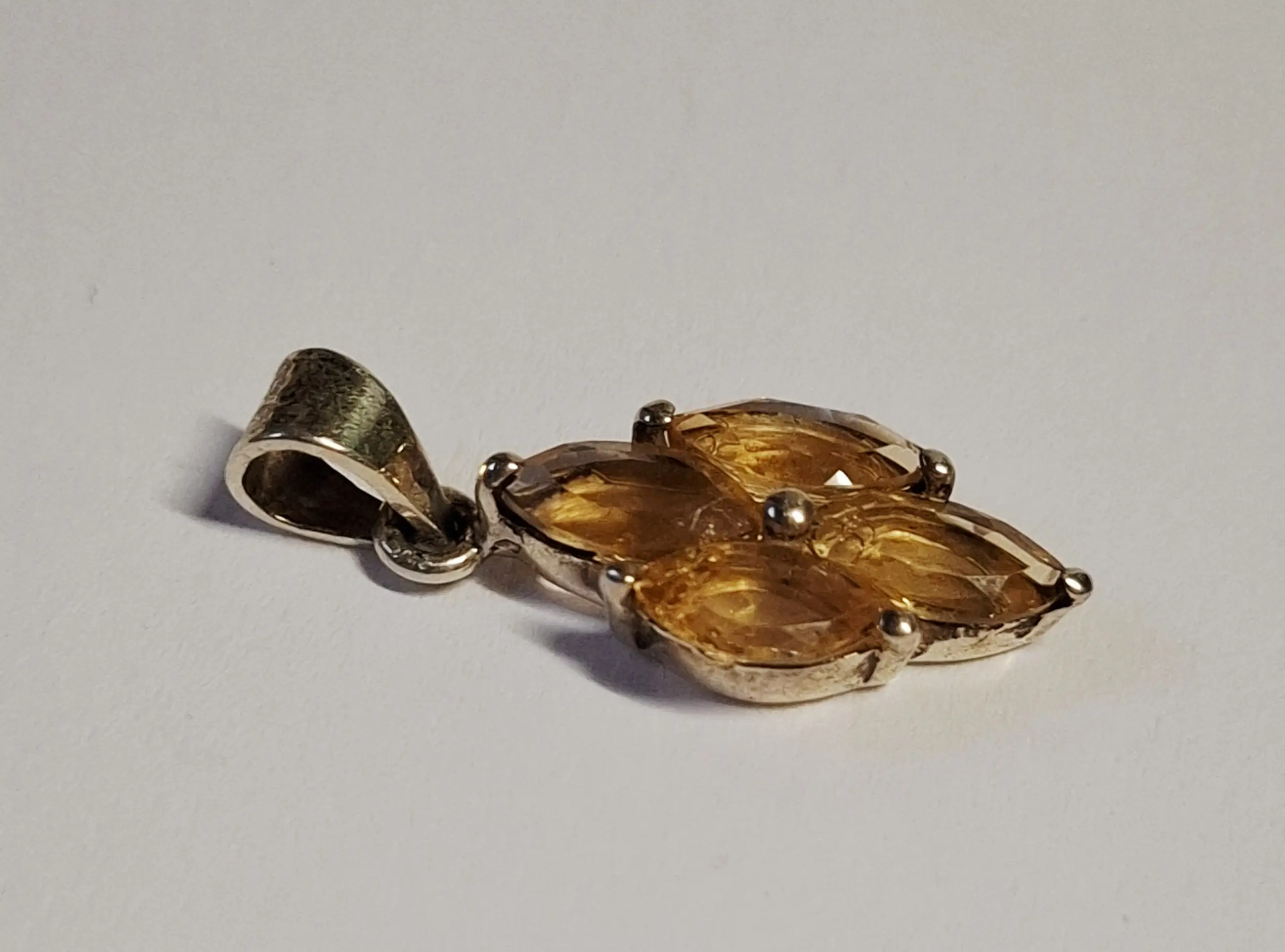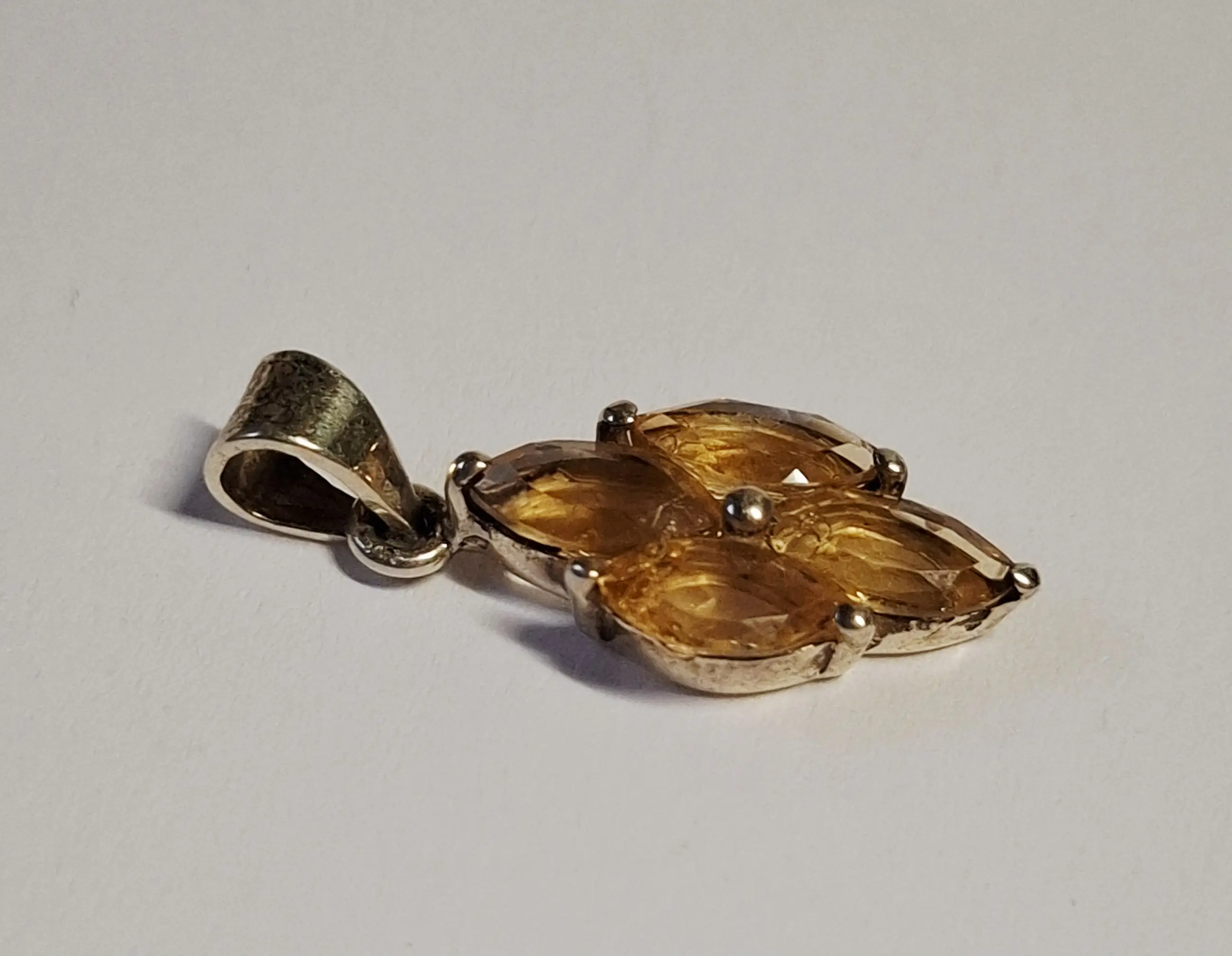 Nieuwe zilveren hanger met facet geslepen citrien: gele edelsteen,
