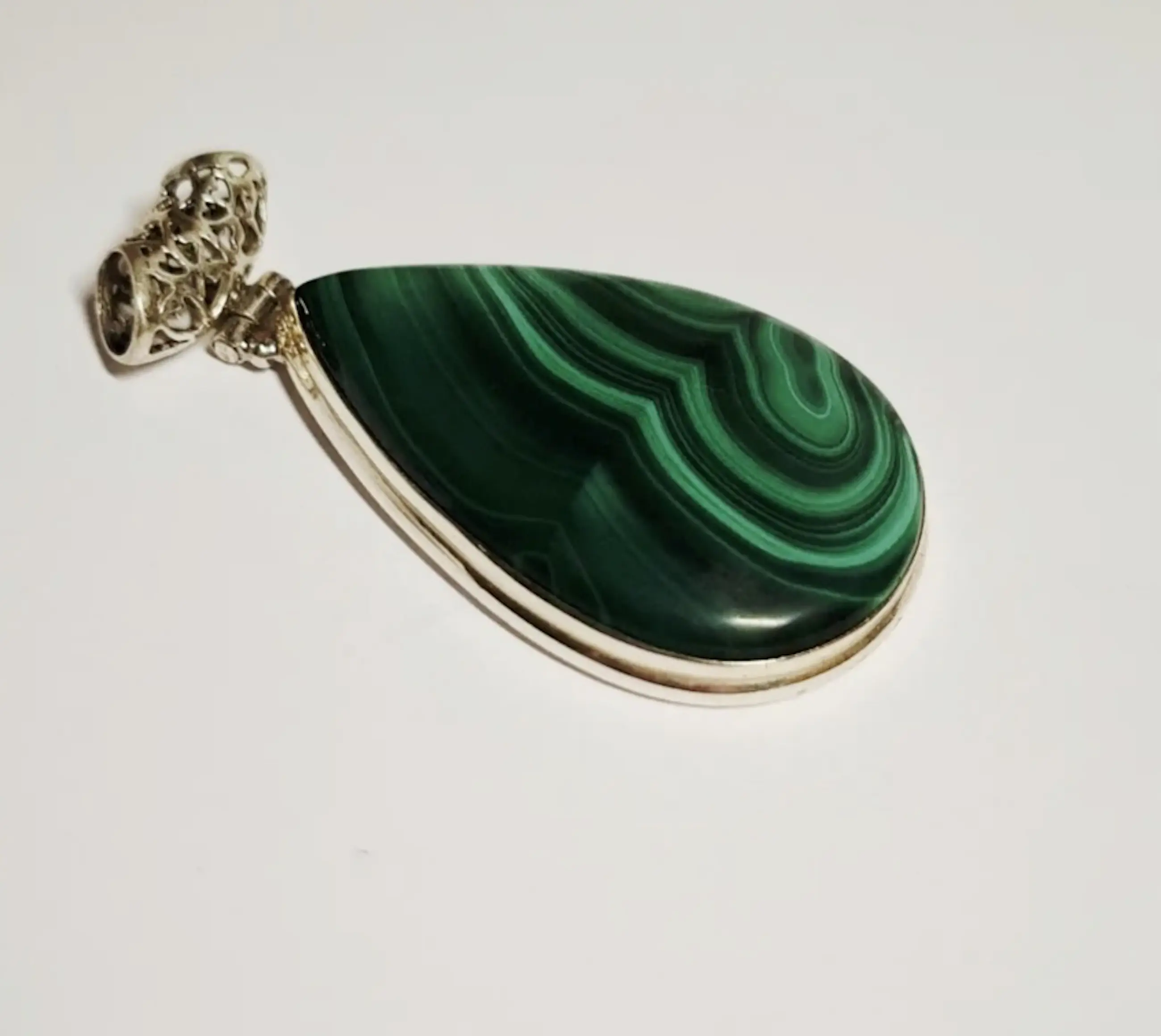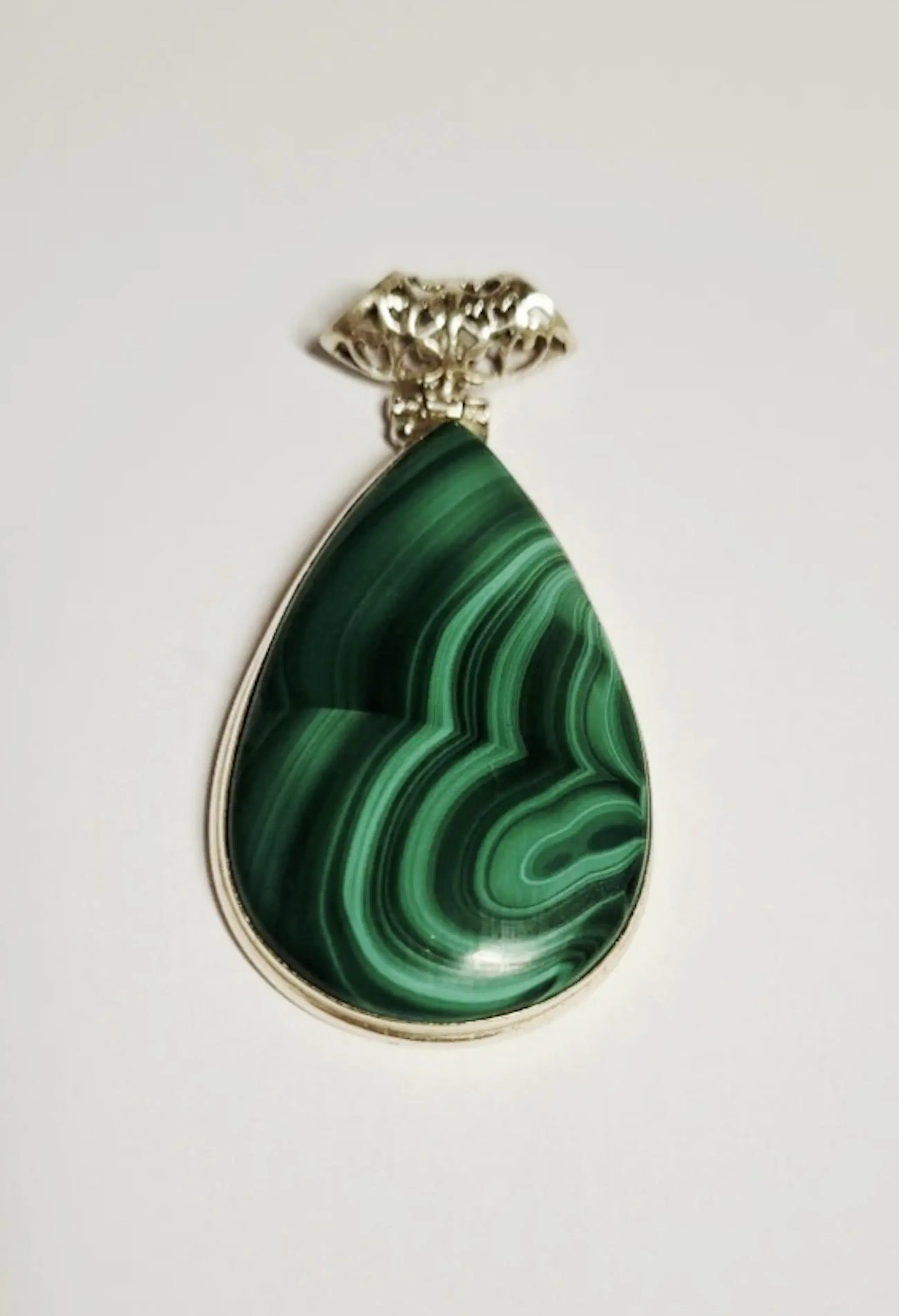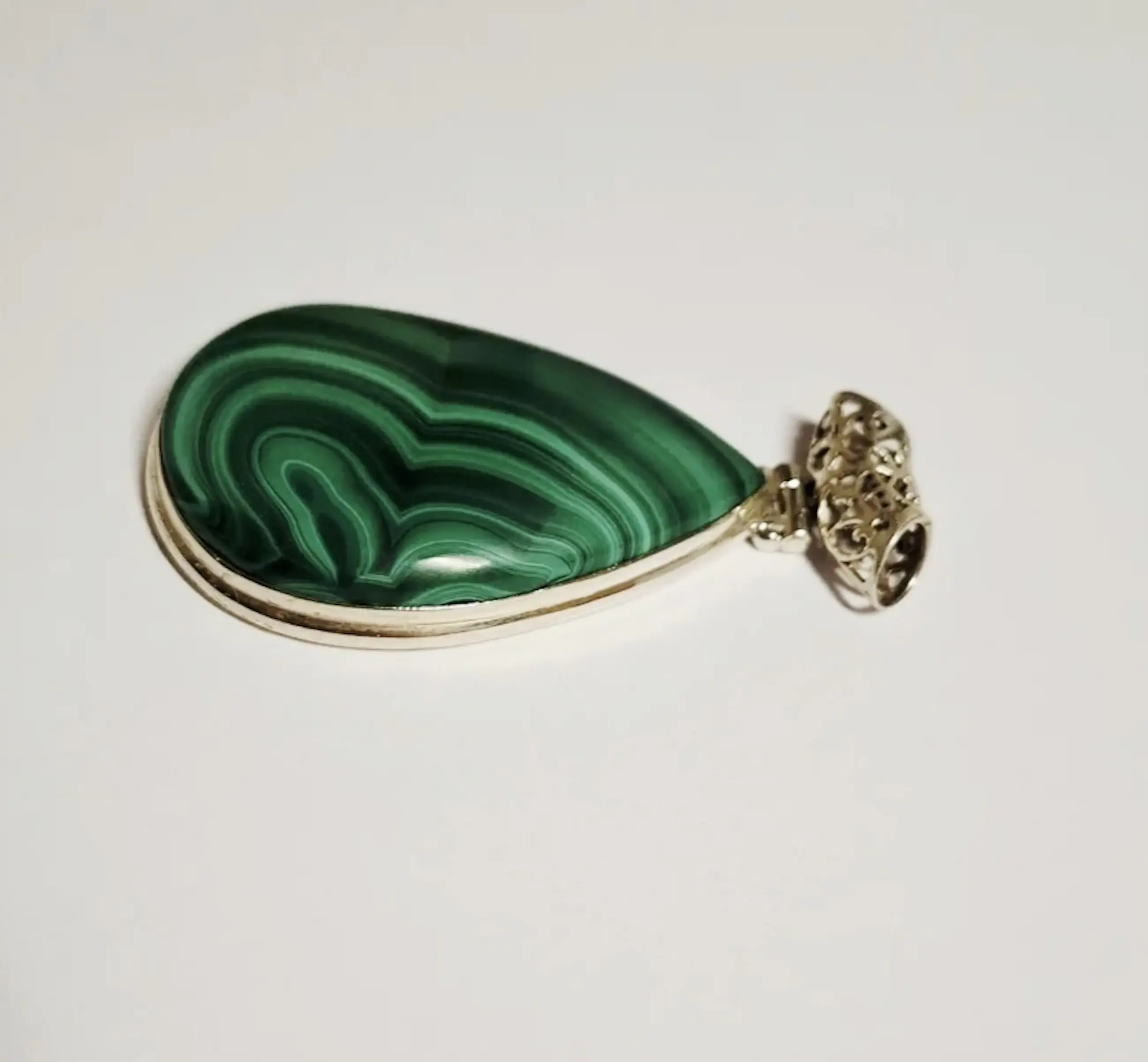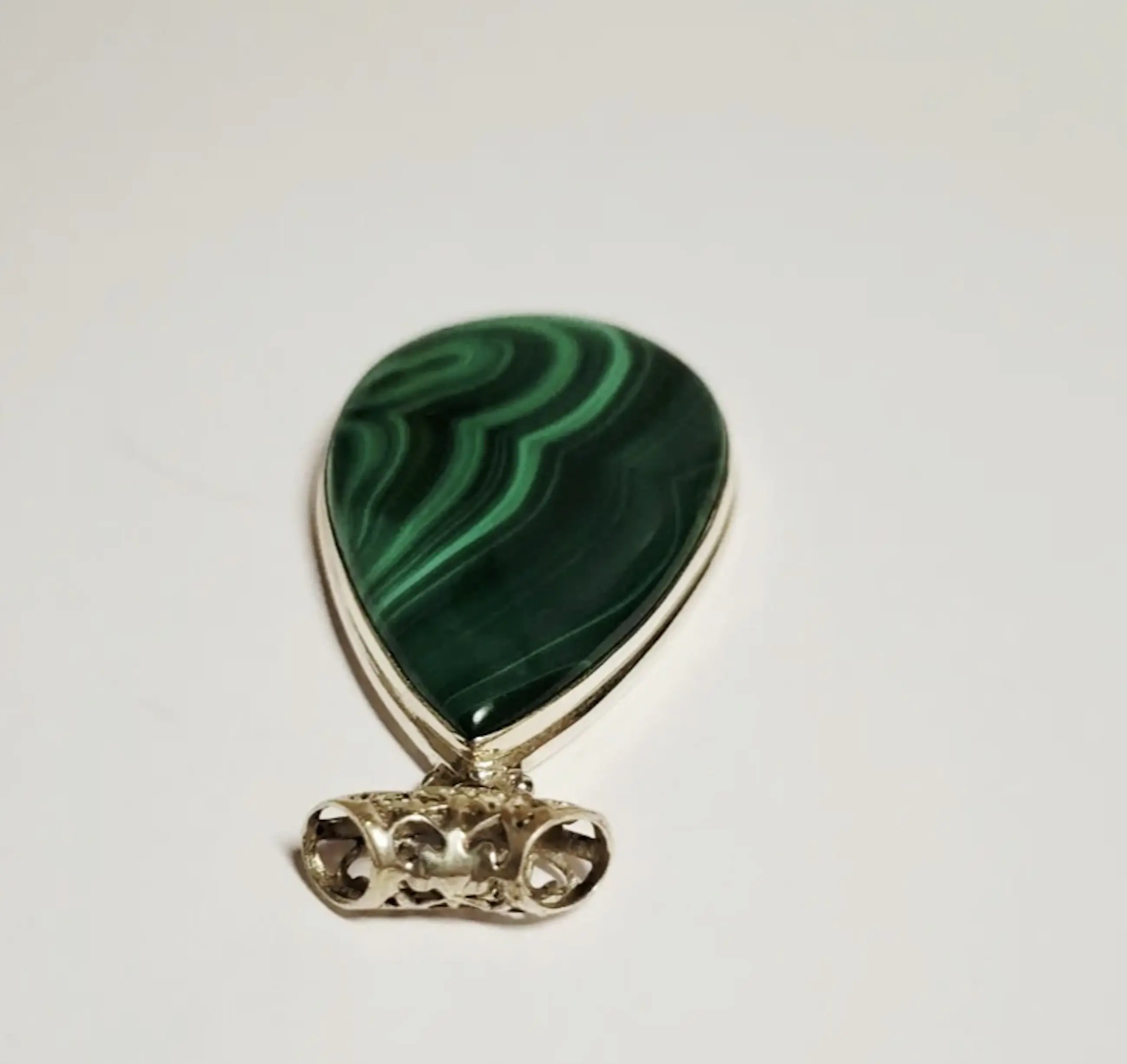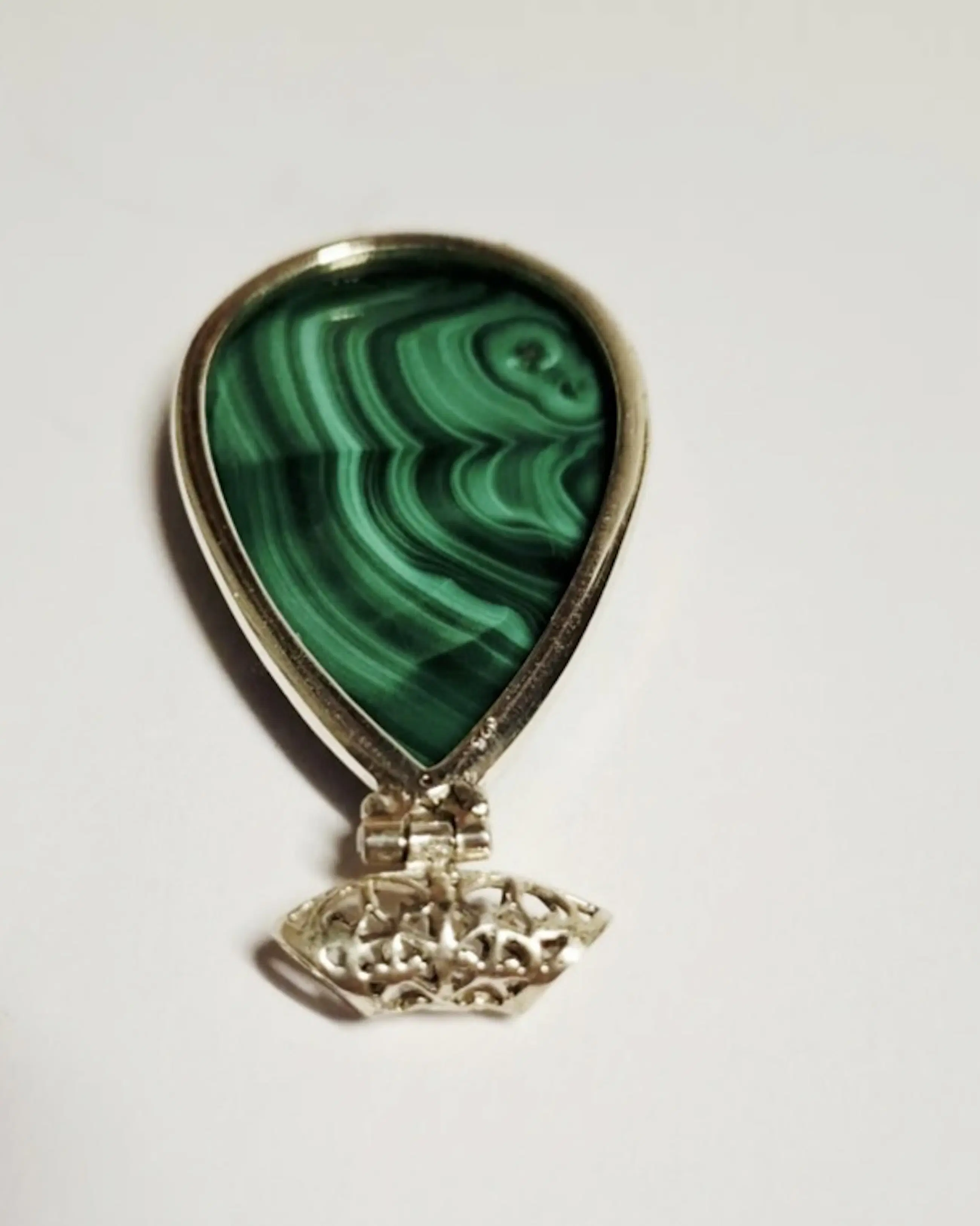 Mooie Sterling zilveren hanger gezet met Malachiet. Deze zilveren hanger heeft een totale lengte van 5,5 cm.