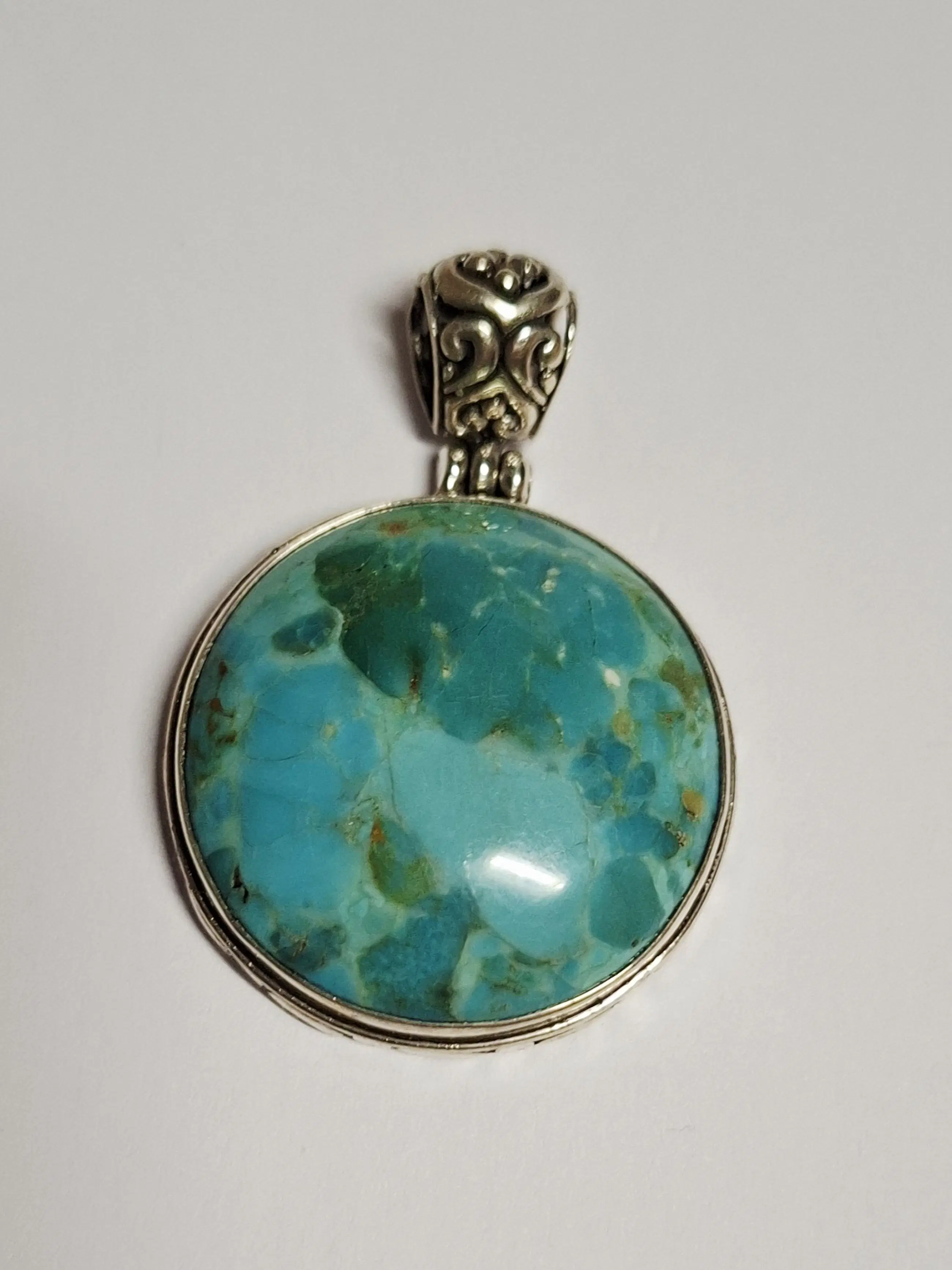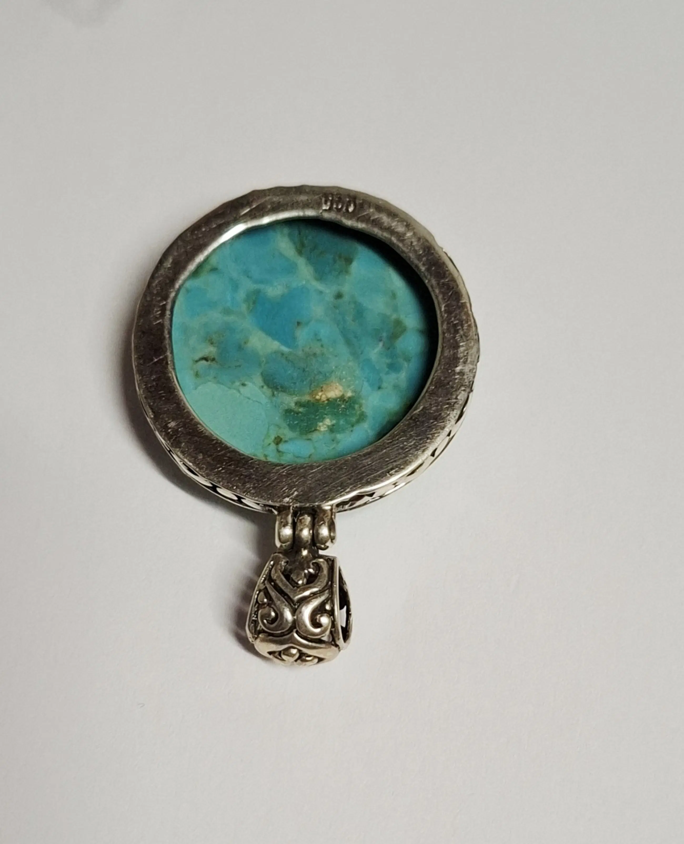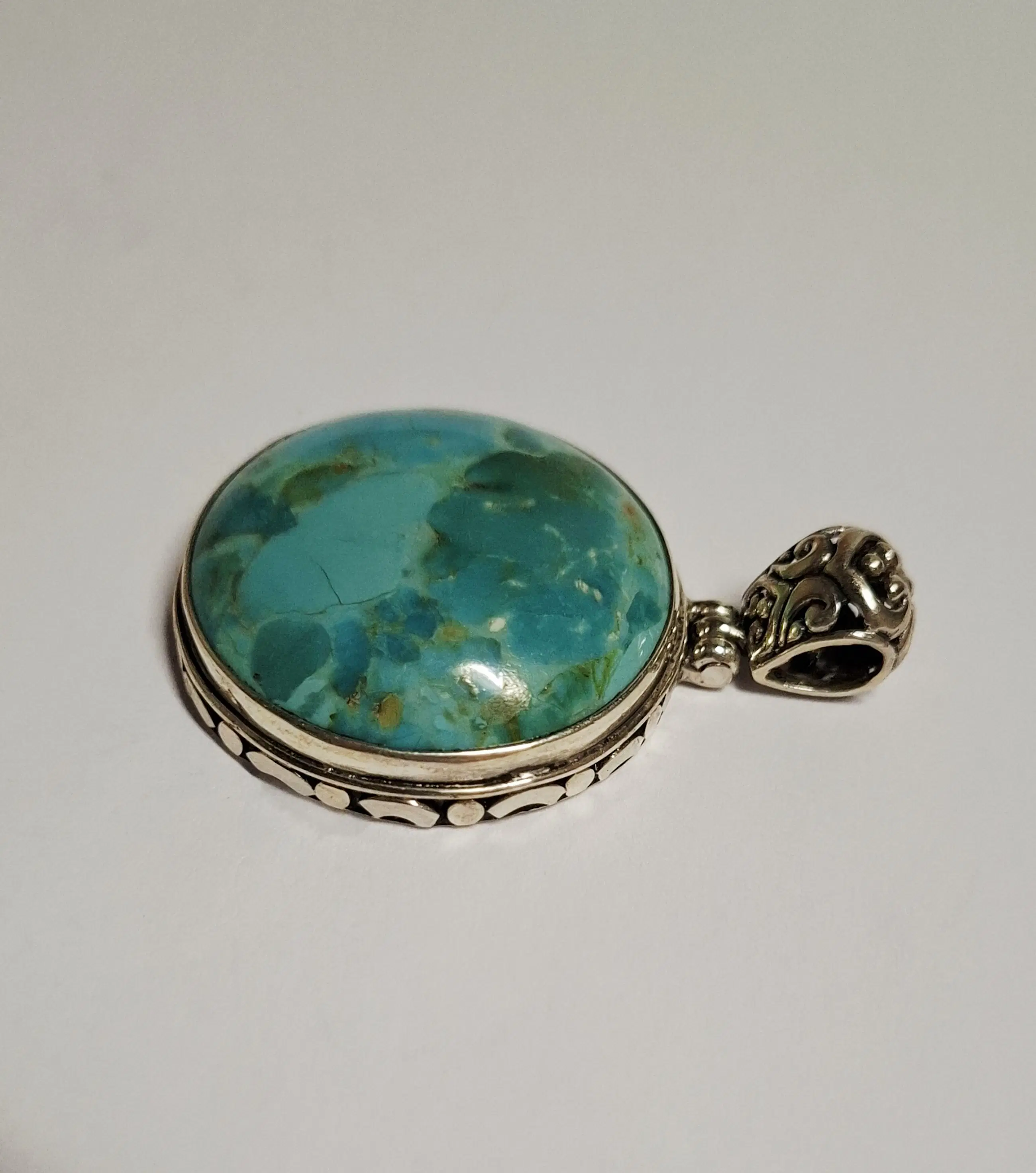 In nieuwstaat Een sierlijk bewerkte hanger Zilver met Natuurlijke Turkoois Edelsteen Handgemaakte Mode Ontwerper Hanger Voor Dames, Moderne Etnische Filigraan Tribaal Zigeuner Boho Bohemien Stijl, Dit prachtige hangende sieraad is met de hand gemaakt van 925 sterling zilver door traditionele ambachtslieden en kan bij verschillende gelegenheden worden gedragen of als cadeau worden gegeven voor de feest dagen aan uw geliefden Perfect voor zowel informele als formele kleding, voegt een vleugje verfijning toe aan elke outfit. Nog nooit gedragen. eigenlijk is het nog nieuw voor een sieraad uit 1995 Komt uit een Prive collectie altijd in een kastje gelegen . moet nog een beetje opgepoetst worden voor verzending zodat hij mooi aankomt Wordt goed verpakt en verzekerd verzonden met track en trace