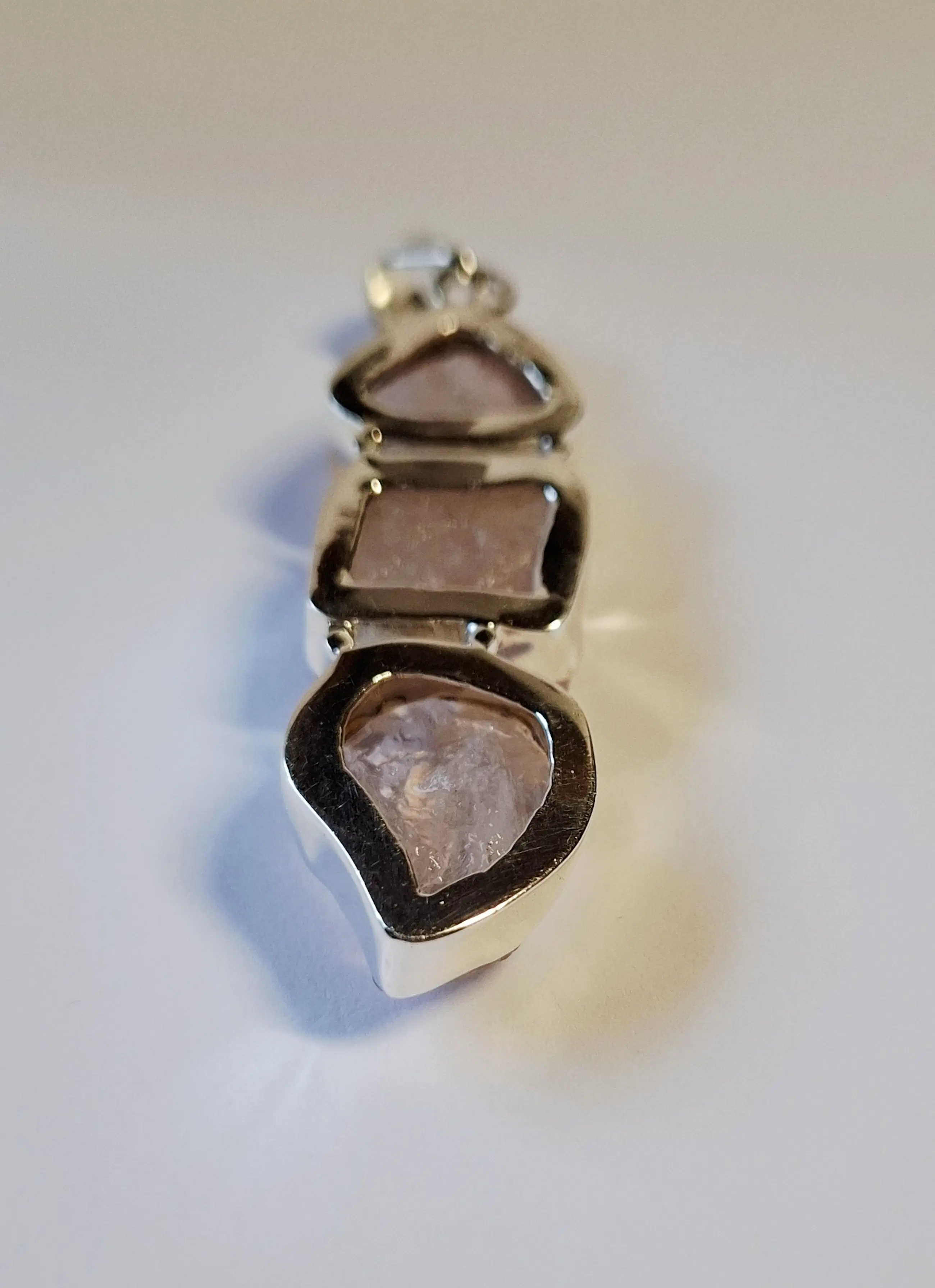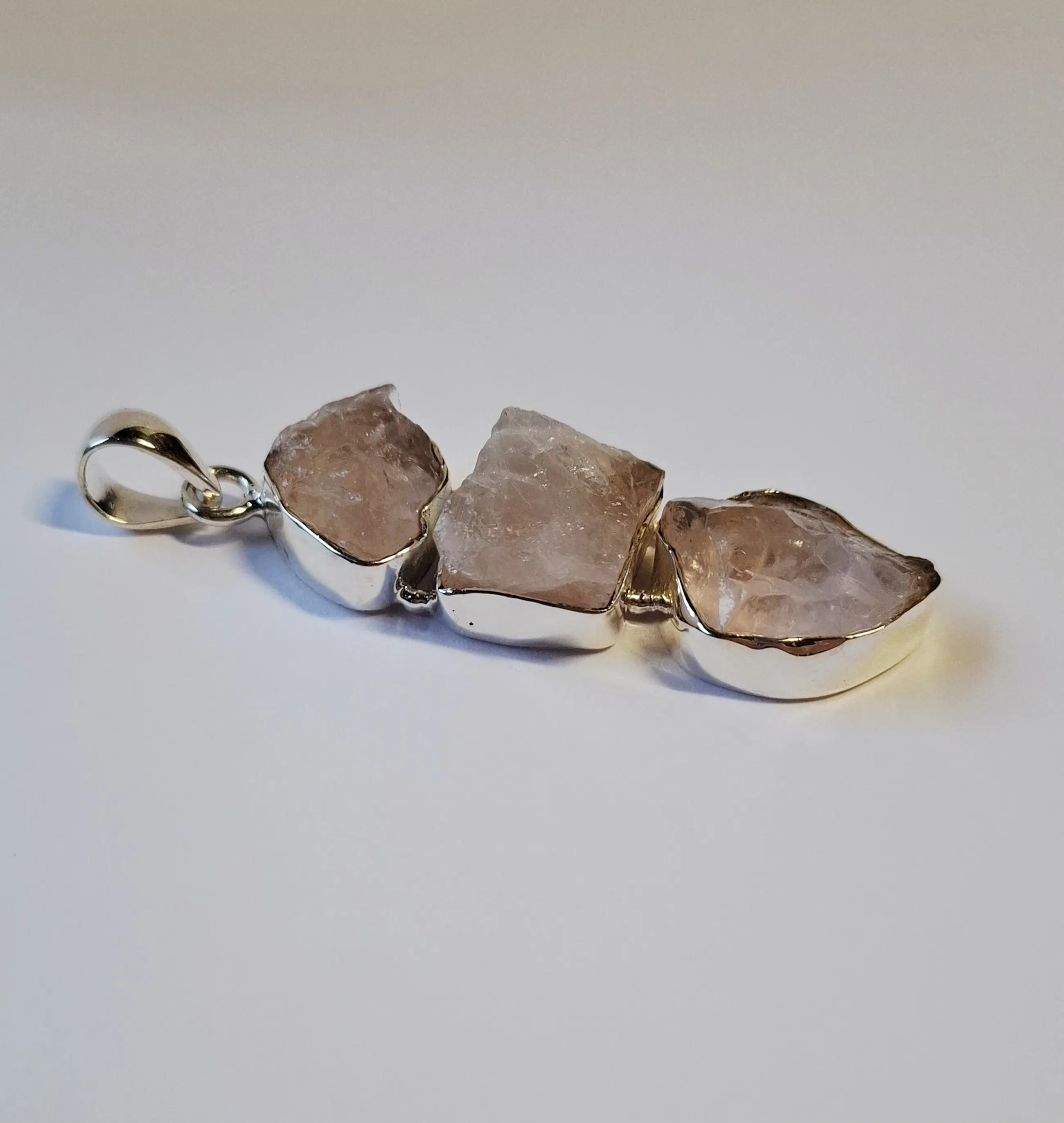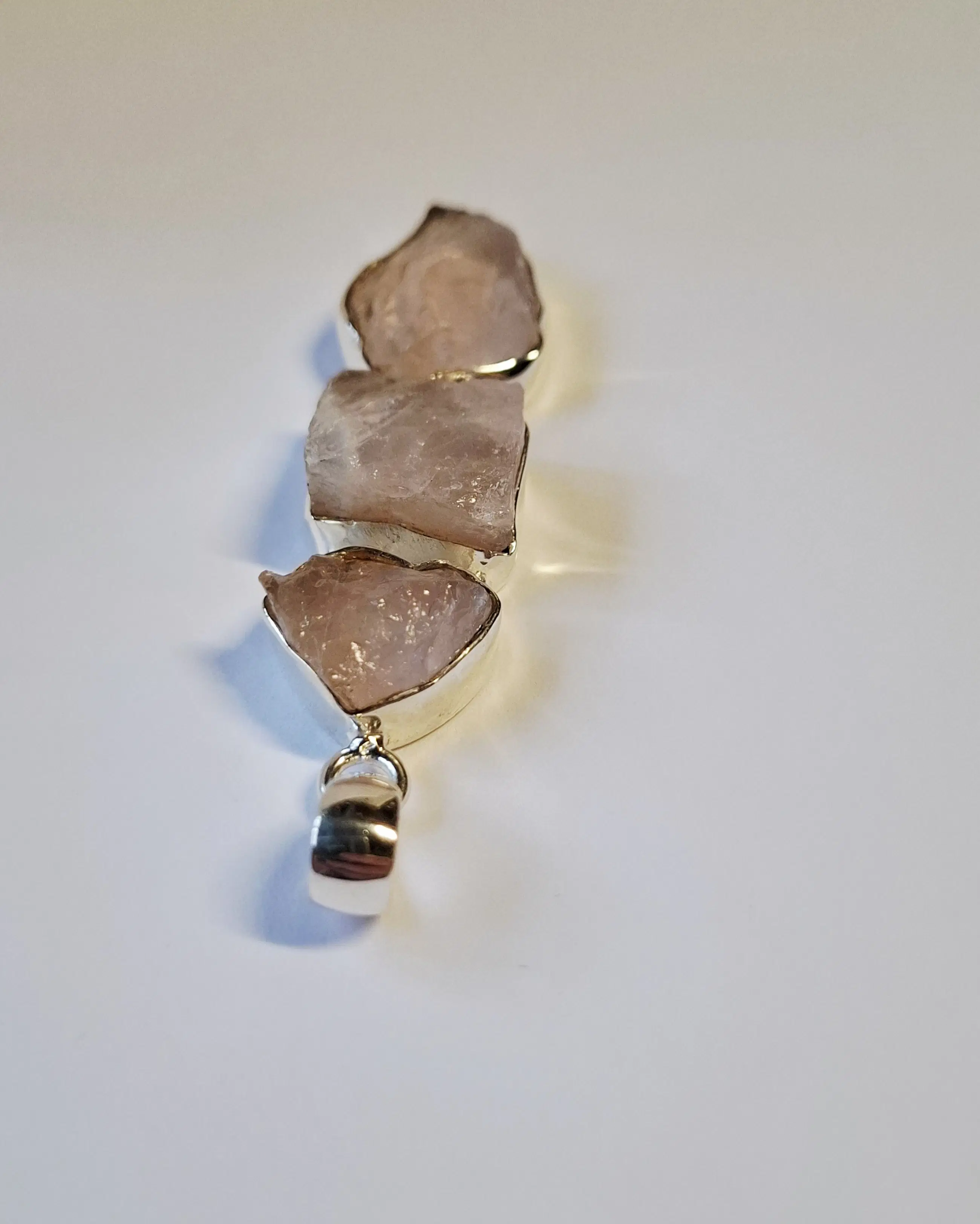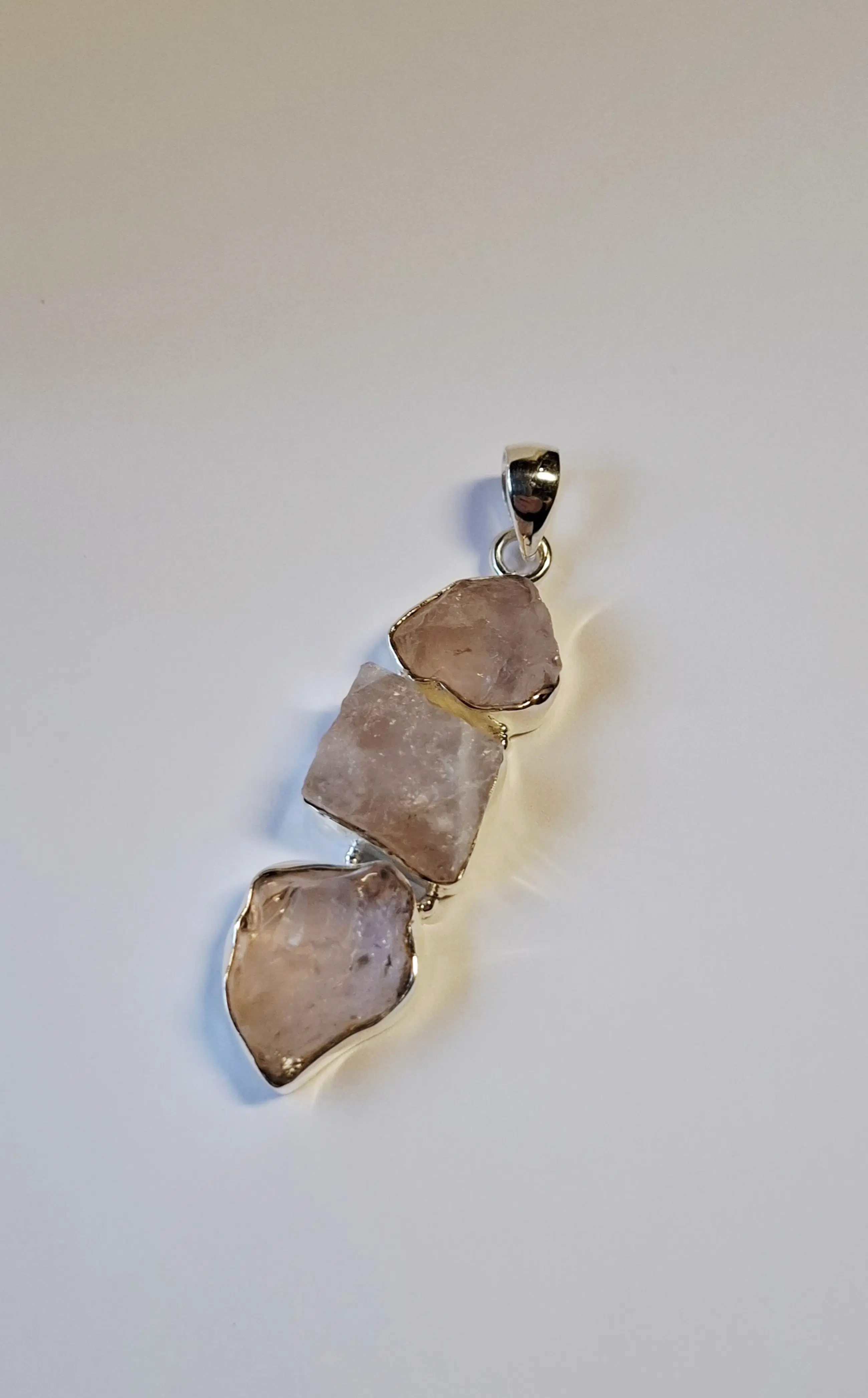 Ruwe rozenkwartshanger Sterlingzilveren hanger Rozenkwarts ruwe hanger Natuurlijke ongesneden edelsteenhanger Healing edelsteenhanger ketting