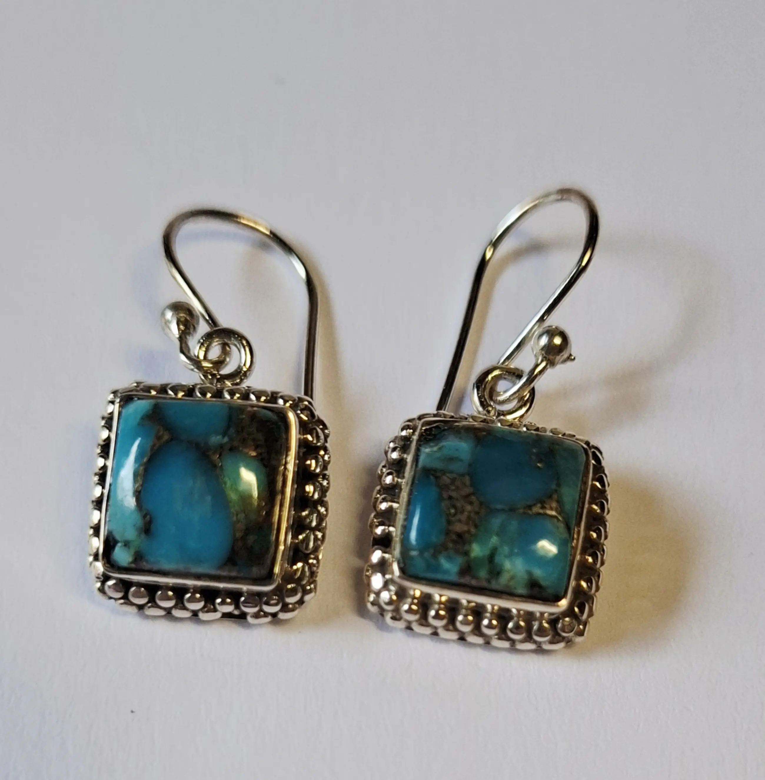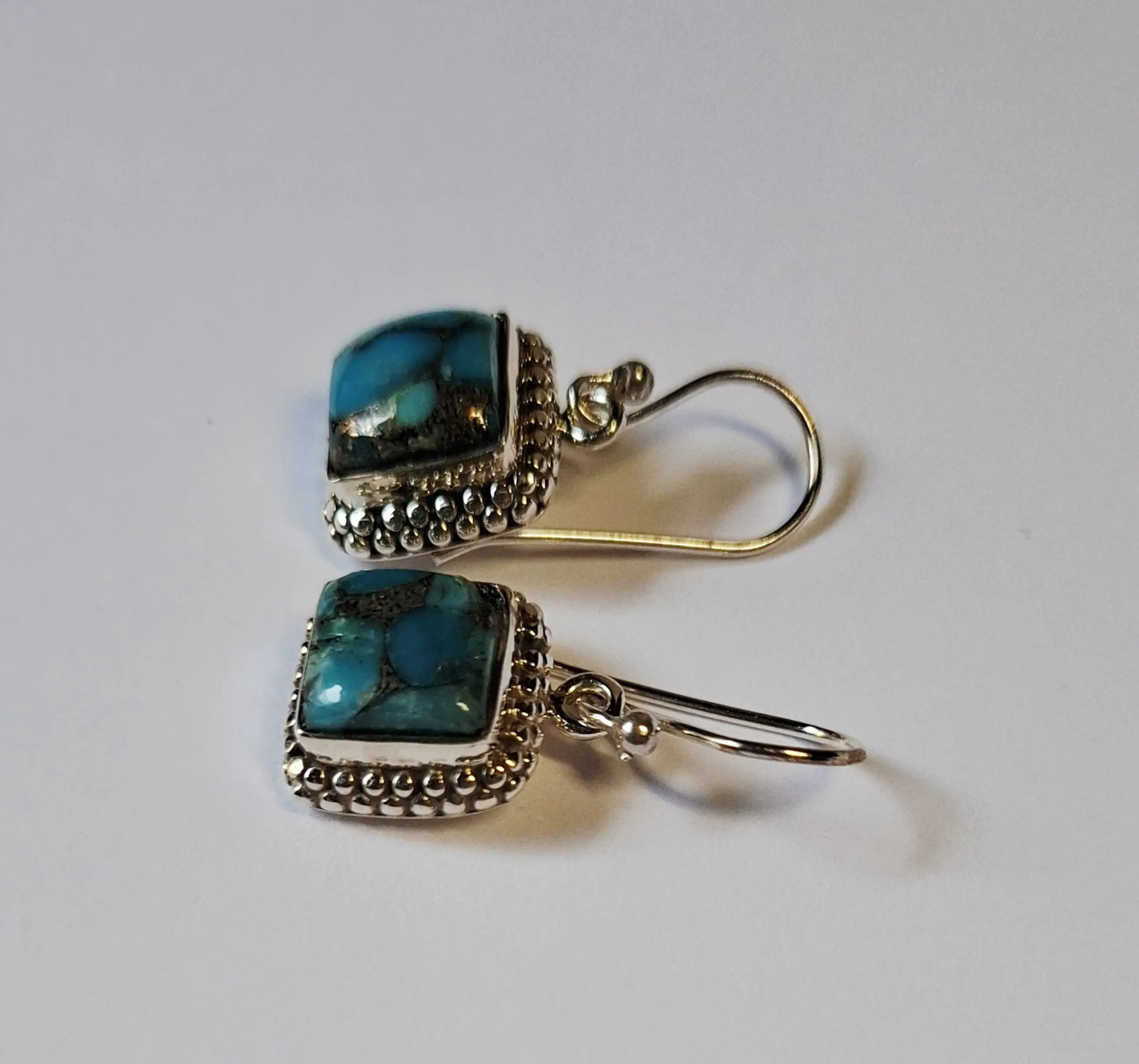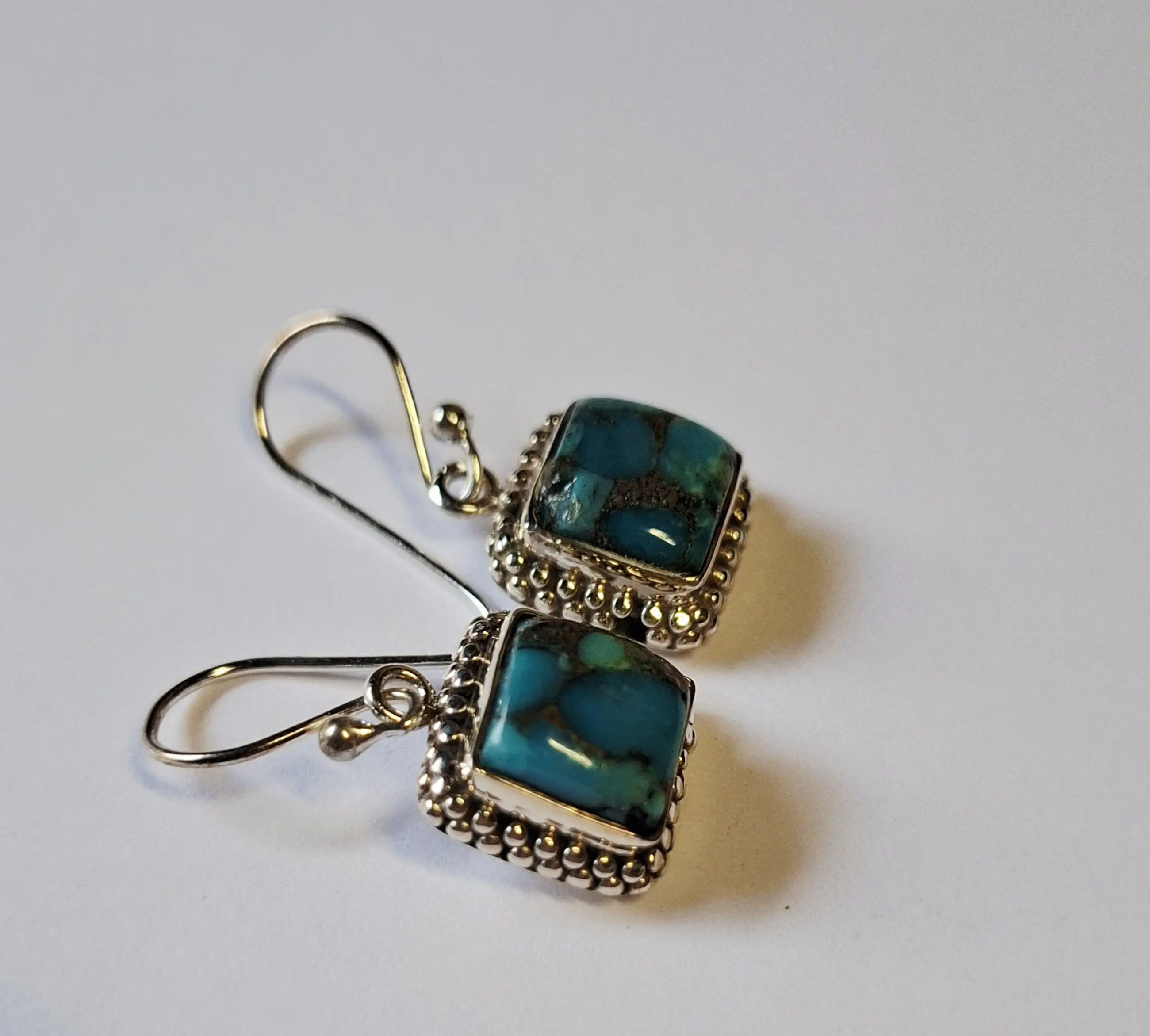 NieuweZilveren Tijdloze blauw koperen turkoois oorbellen van 925 zilver, perfect voor alle gelegenheden, oorbellen met beugel, dames oorbellen, cadeau voor haar,