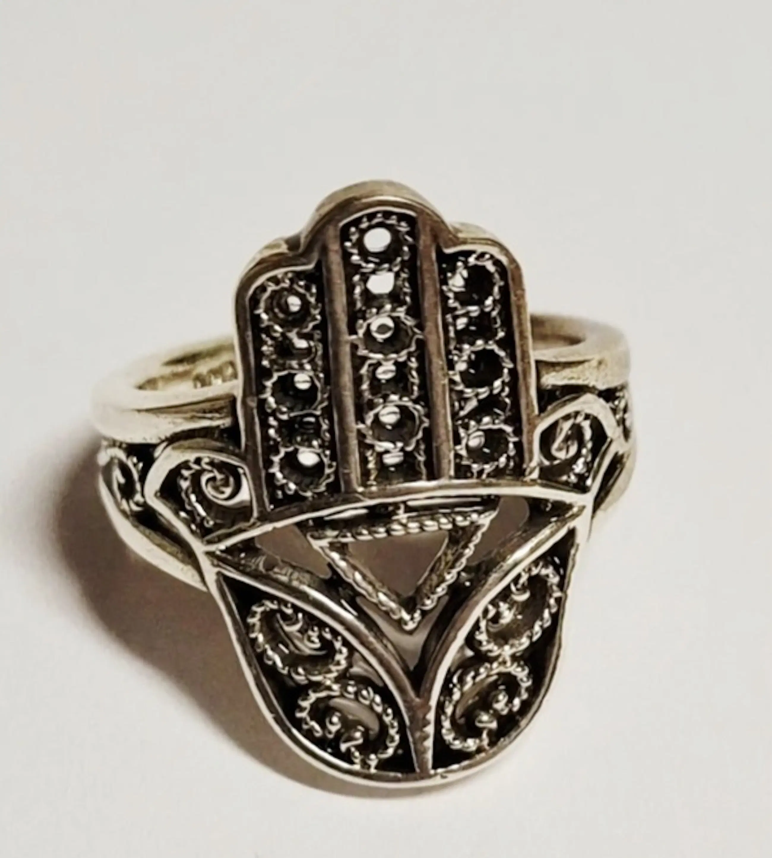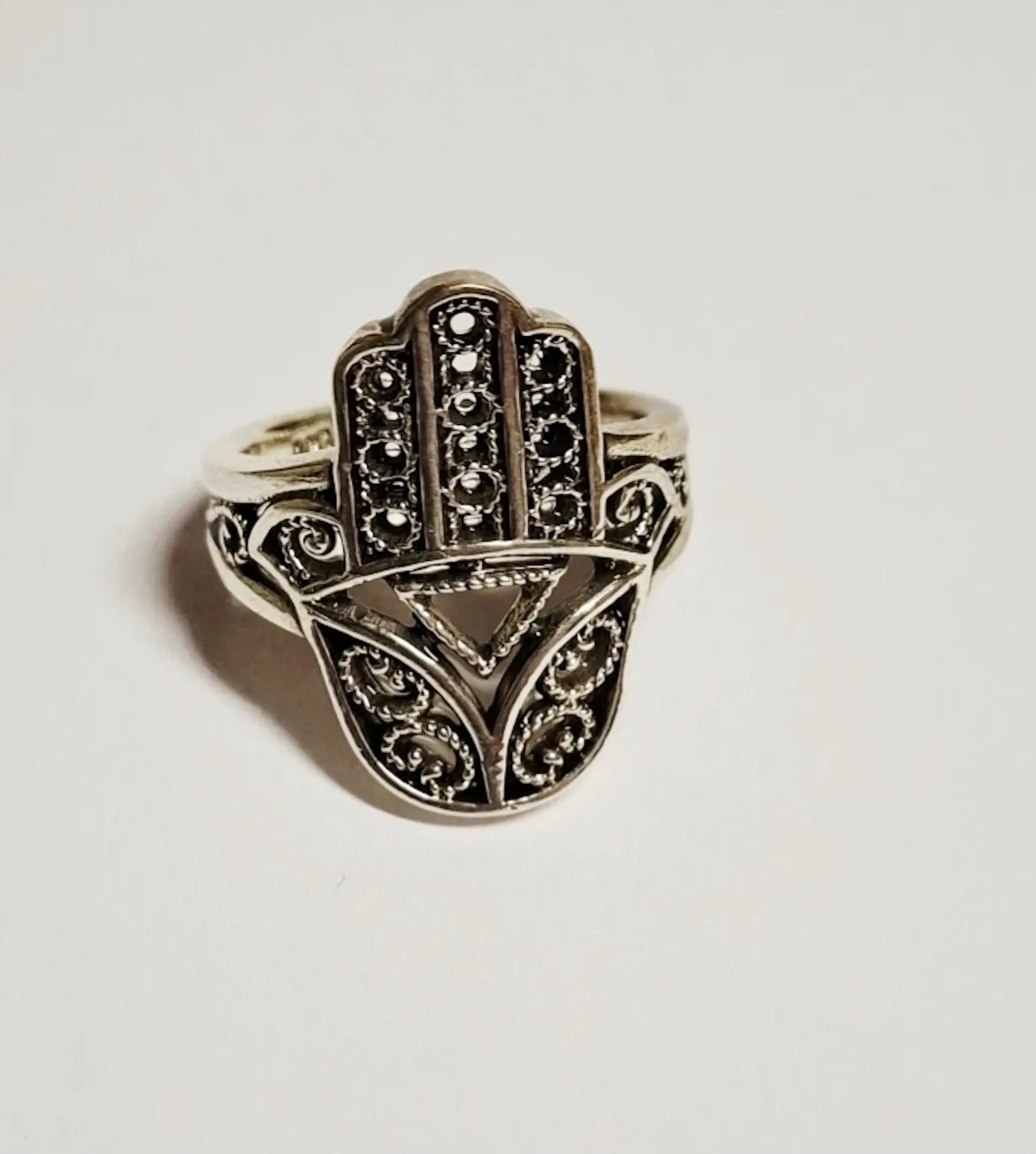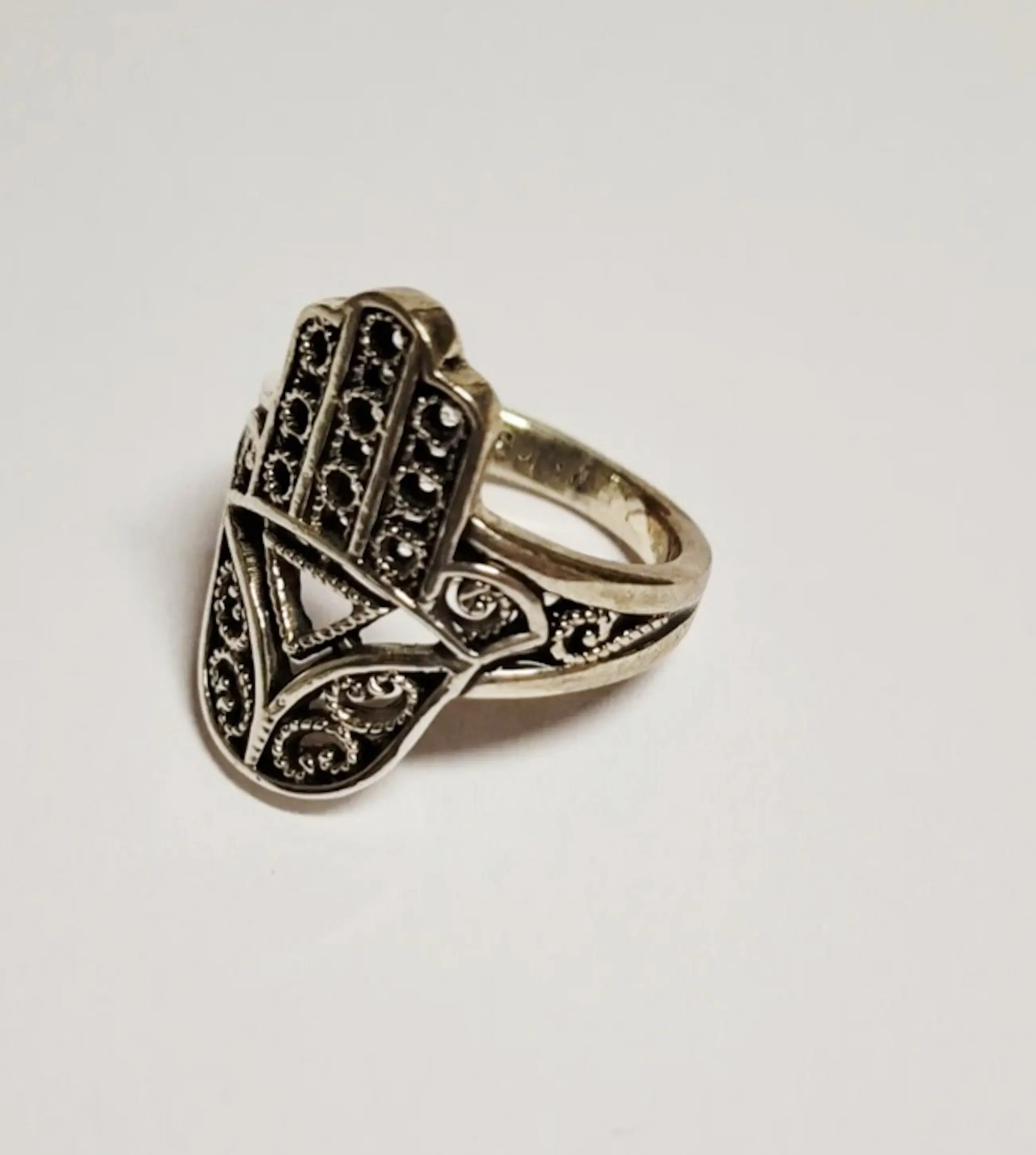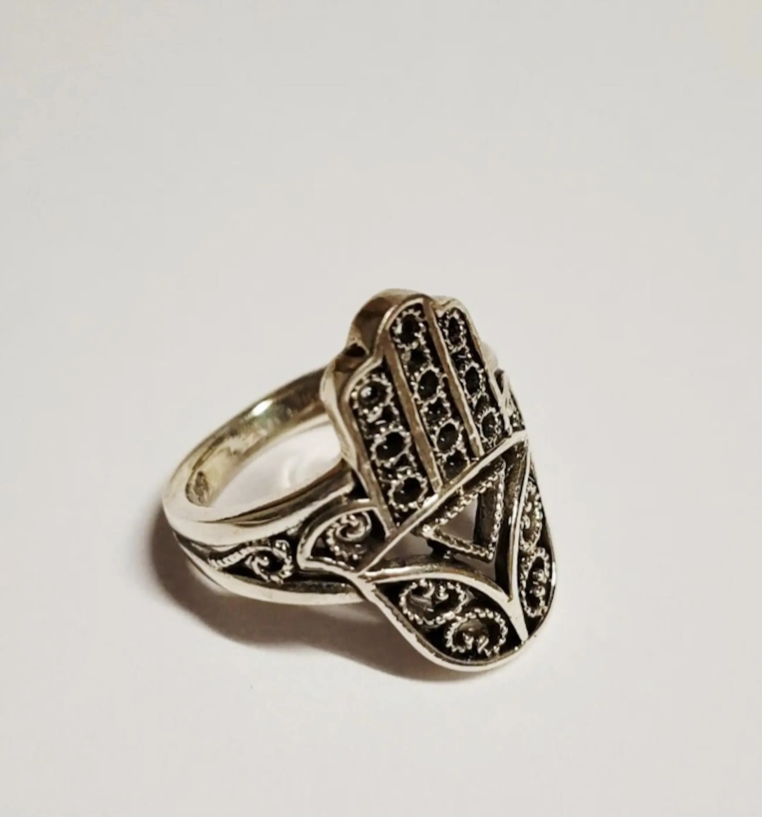 Nieuw , Hand van Fatima zilveren Dames -ring, 925 sterling zilver, hamsa ring, hand van Fatima handring,