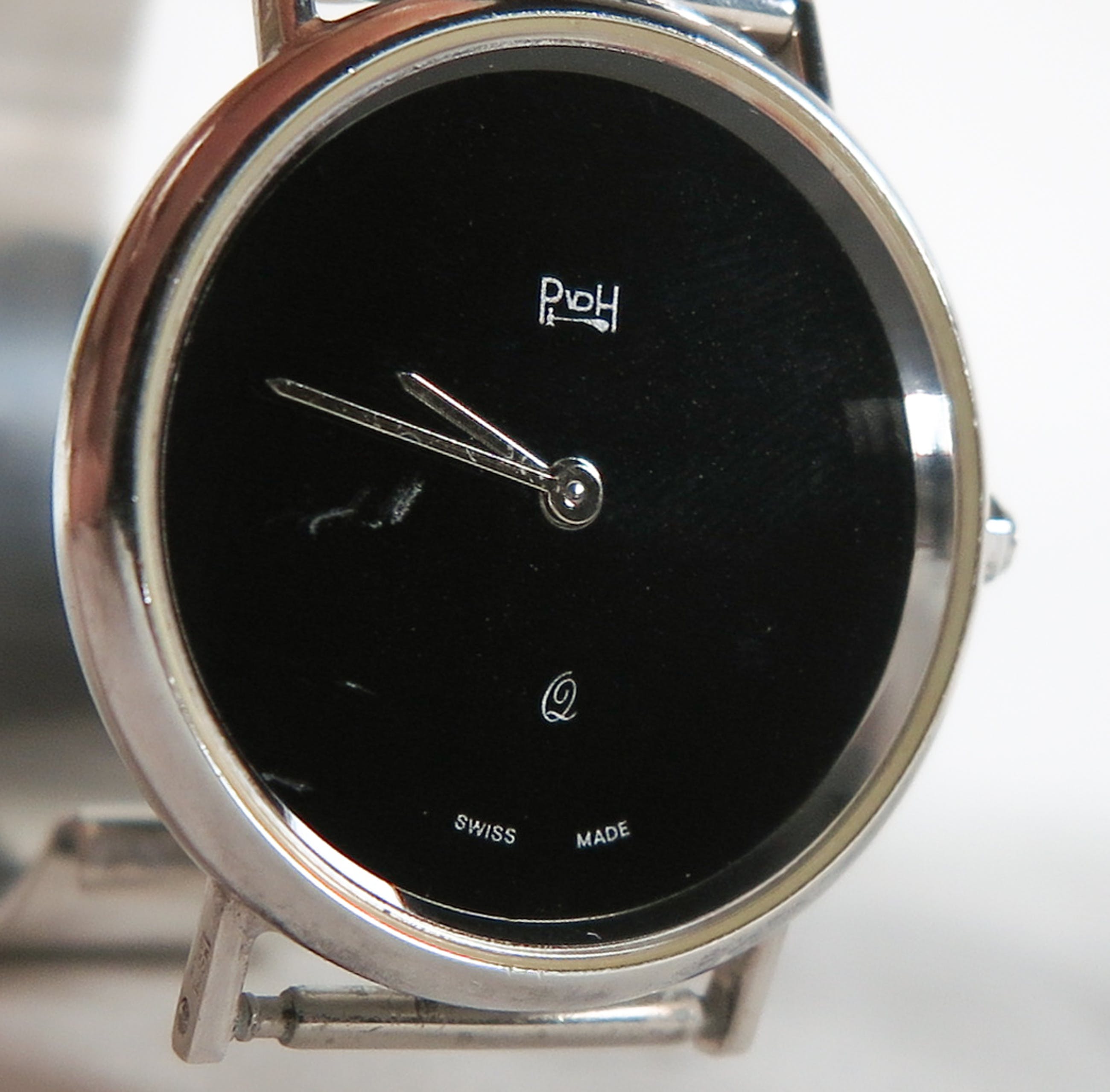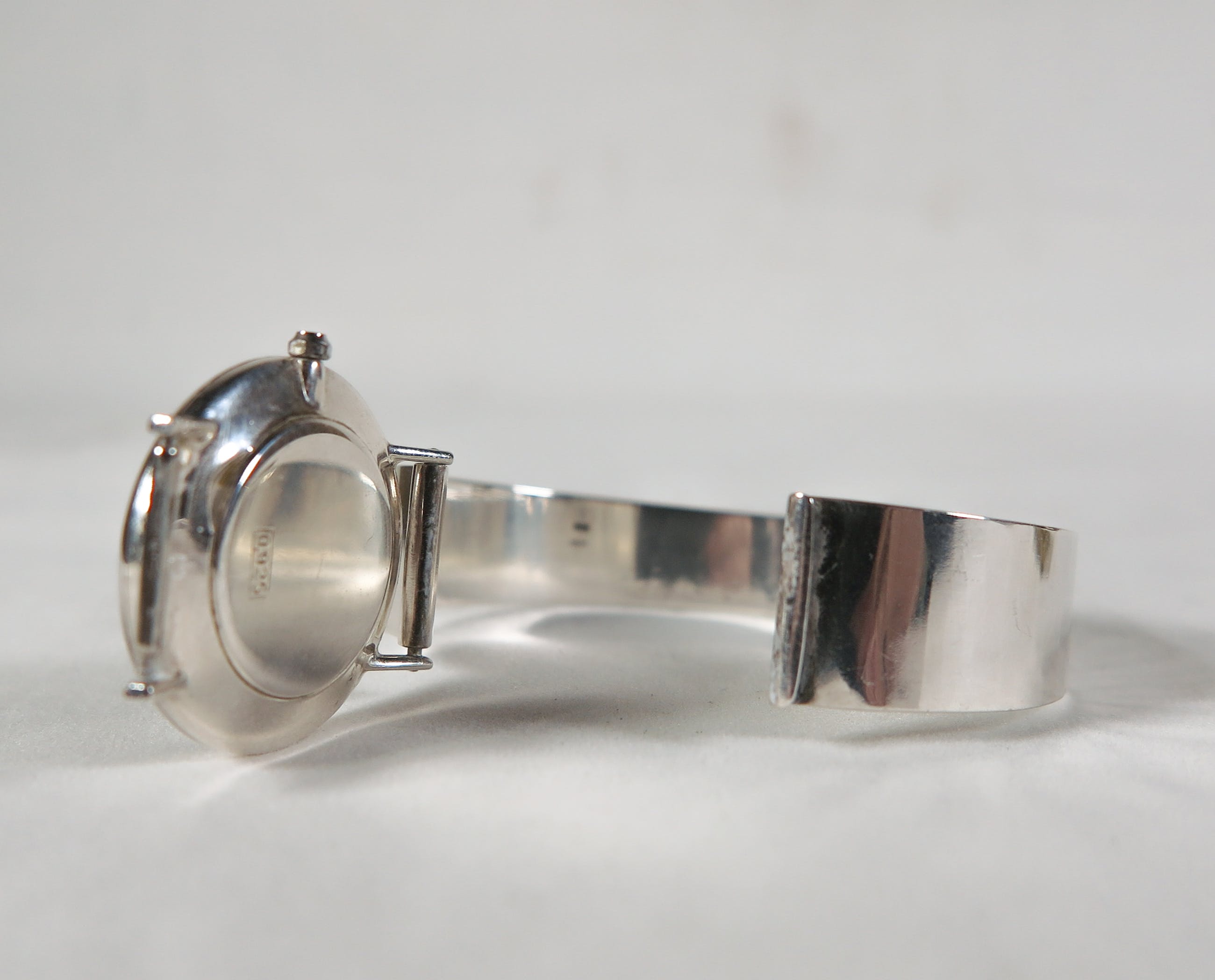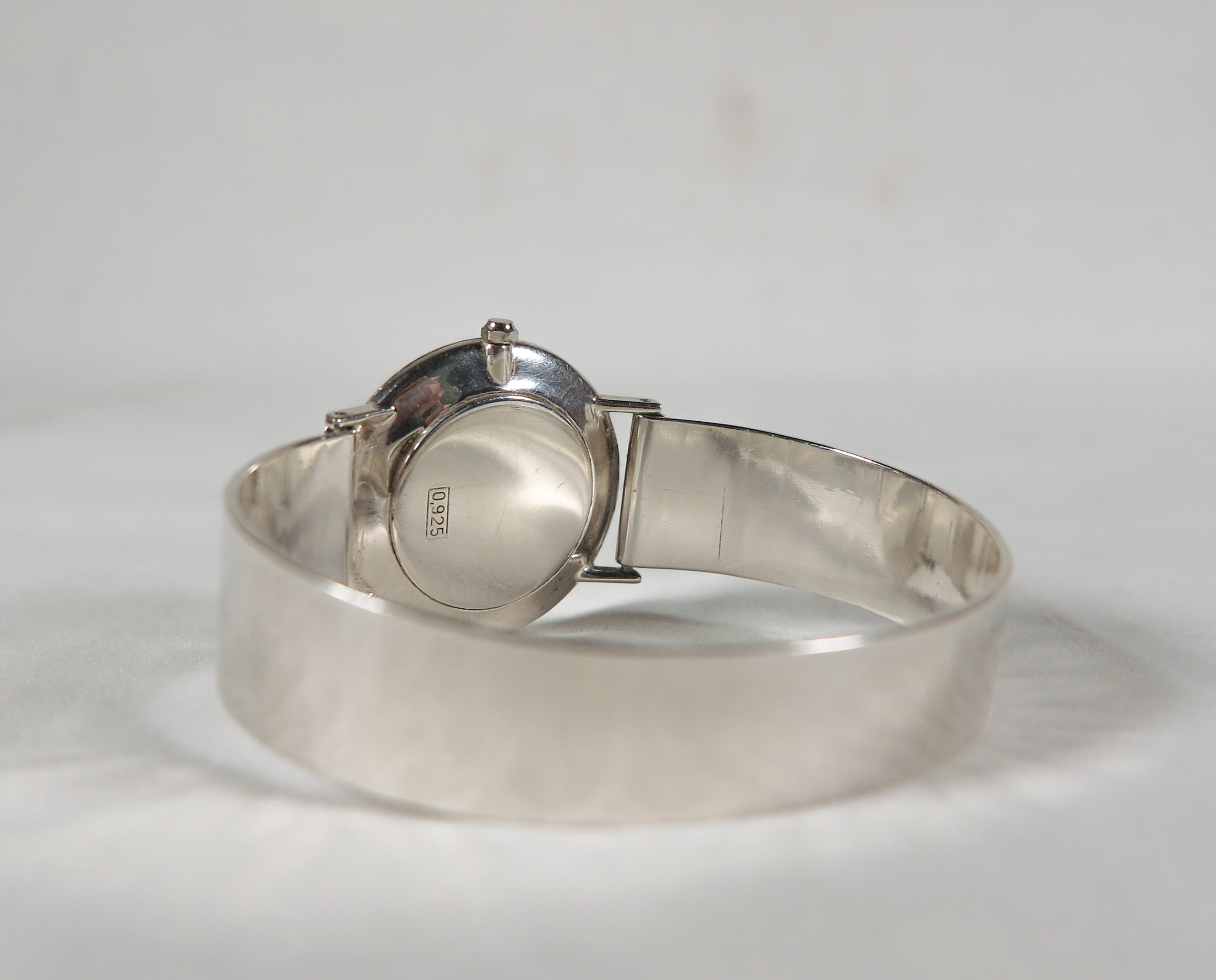 - Zilveren dameshorloge door Paul van den Hout. De kast is 1e gehalte, de band is 2e gehalte. Bovenstaande formaten en (bruto) gewicht zijn van dit horloge.