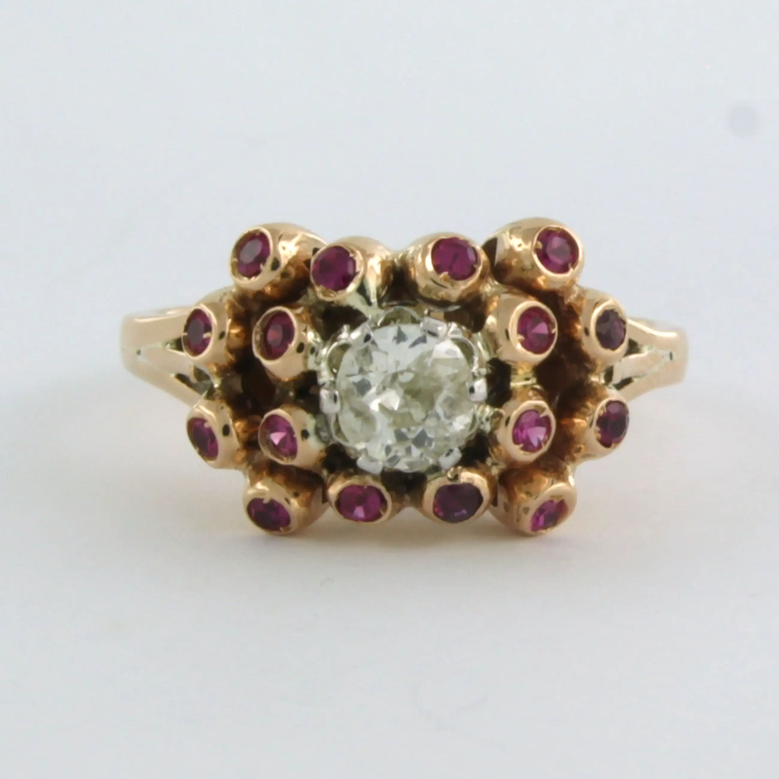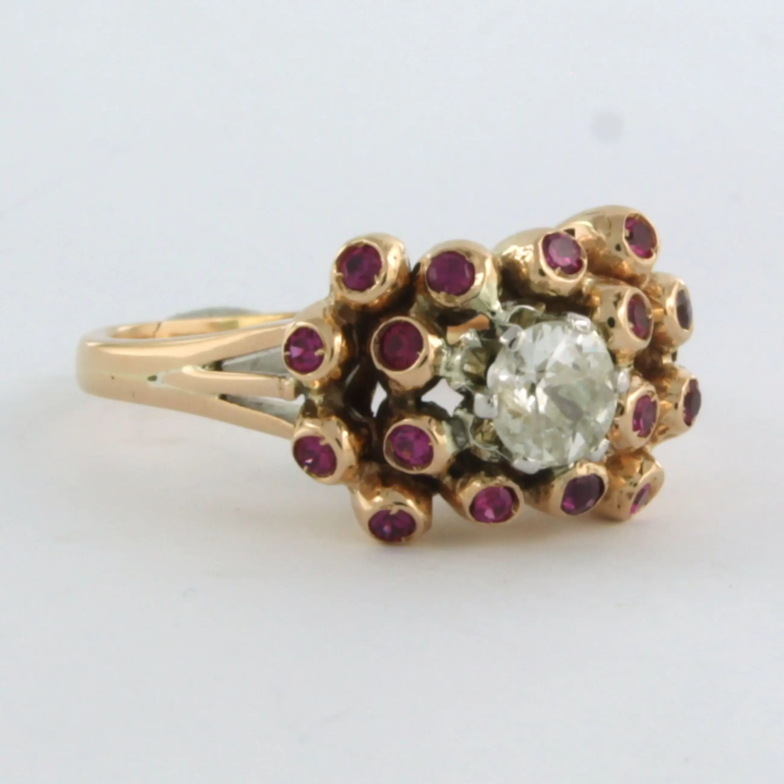 Retro -18k bicolor gouden ring met centraal Bolsjewiek tot. 0.40ct J/K - Piq - en aan entourage robijn verneuille - ringmaat 17.75(56)