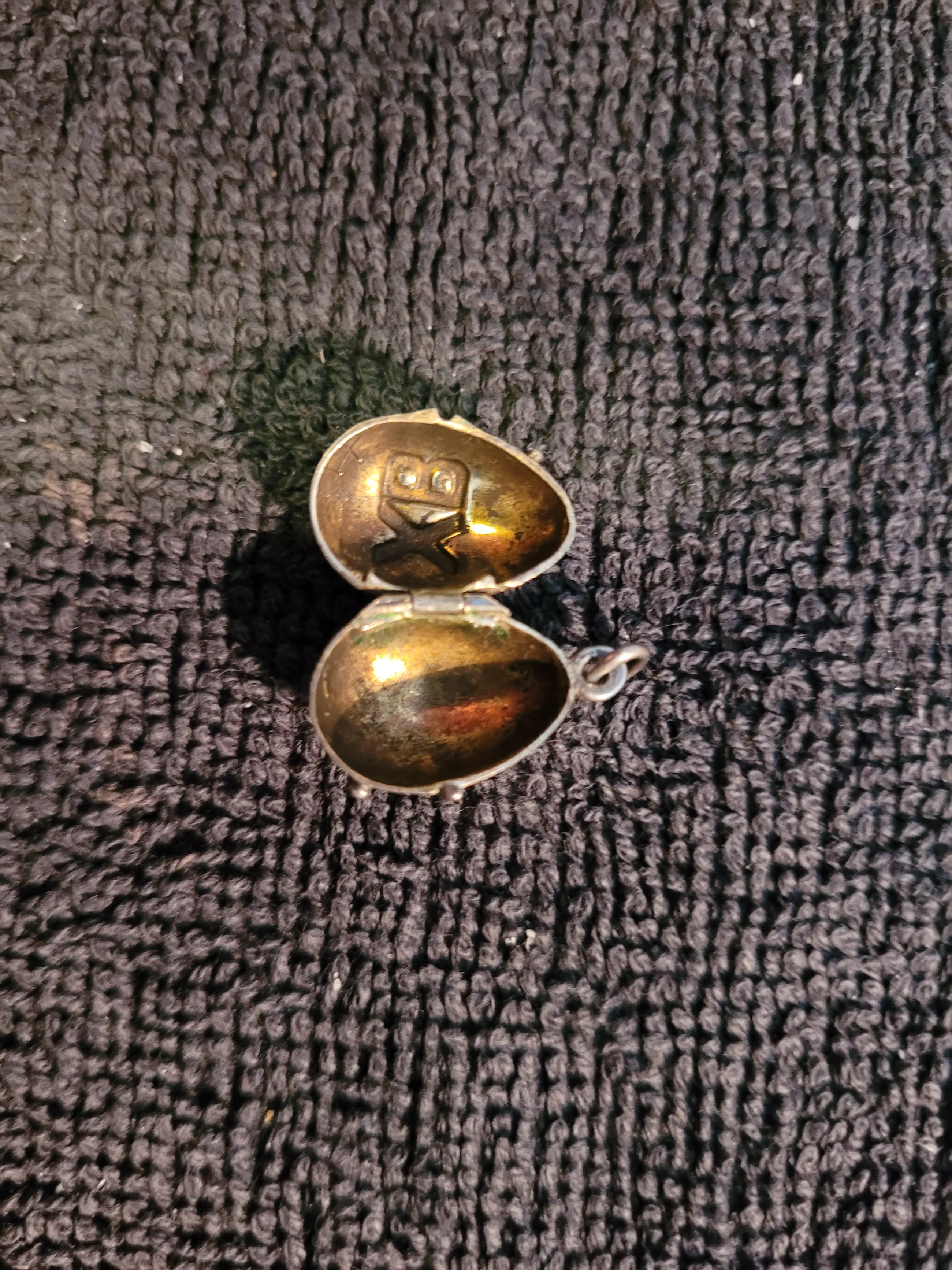 Russische zilveren bedelhanger in de vorm van een paaseitje met cyrillisch opschrift "XB". Versleten stempel, alleen "84" leesbaar. Vermoedelijk antiek. Hol, kan open. T.e.a.b. met een minimum van 13 euro om veiling- en verzendkosten te dekken.