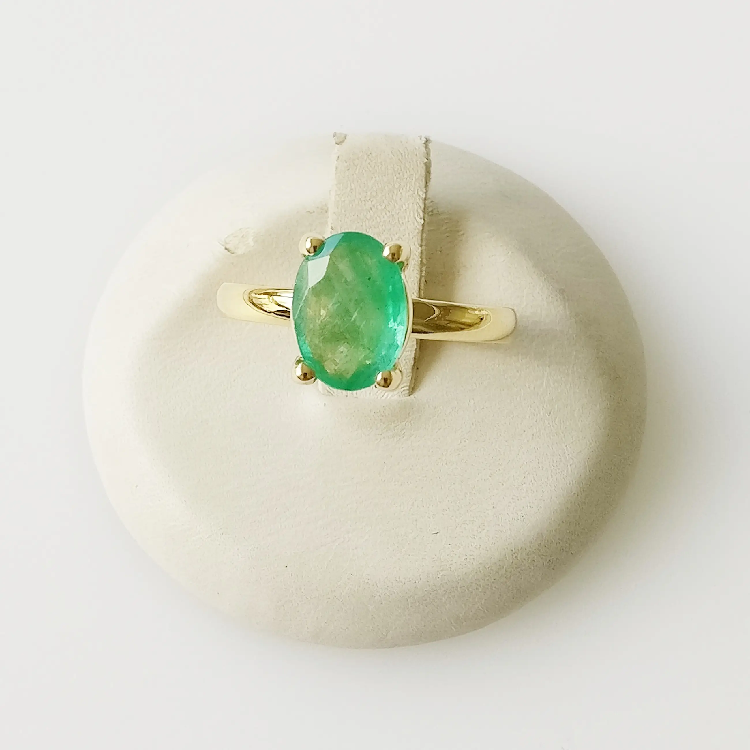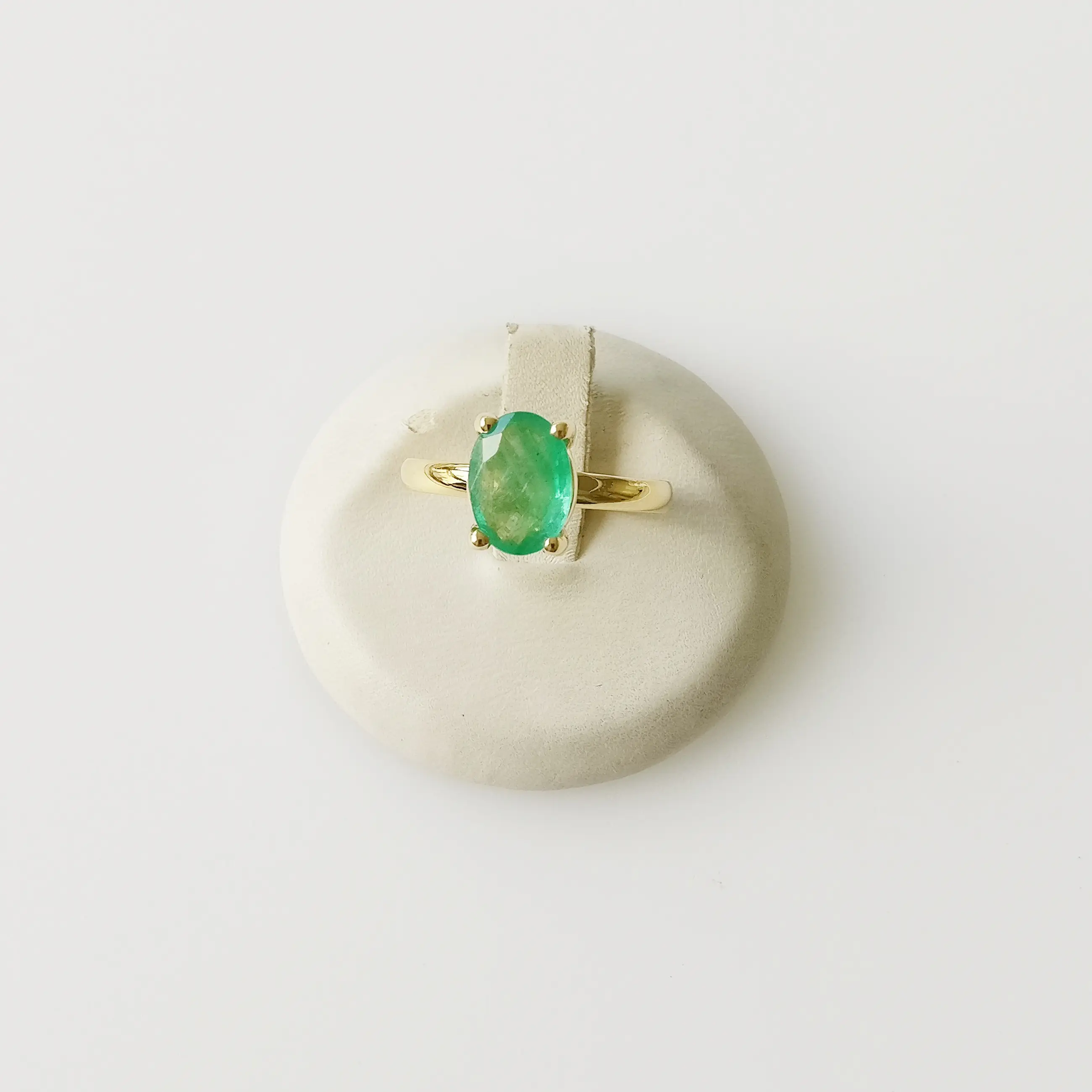 Ring van 18 karaats geelgoud met 1 ovale natuurlijke smaragd van 1,86 karaat. Brutogewicht: 4,25 gram Ringmaat: EU 54
