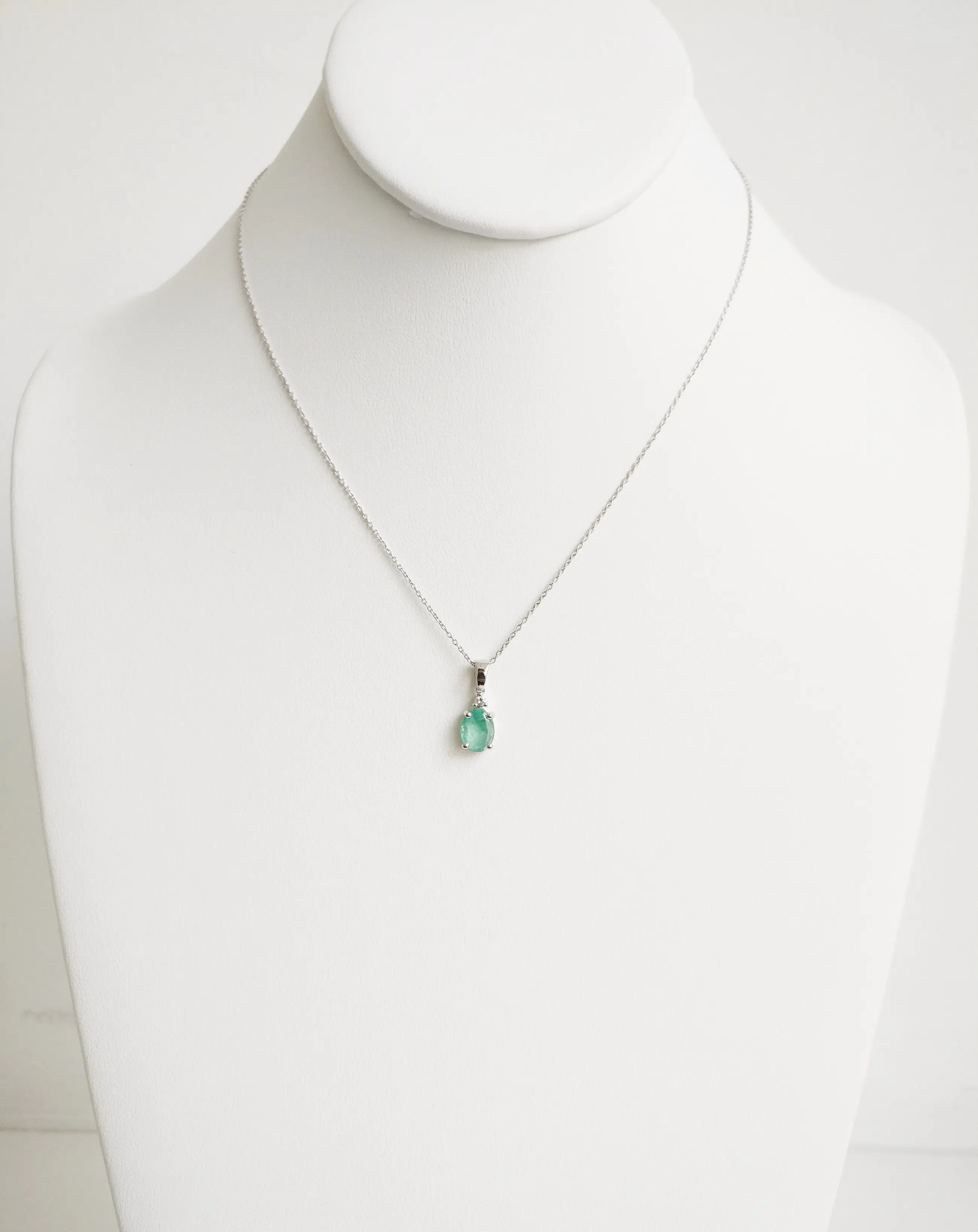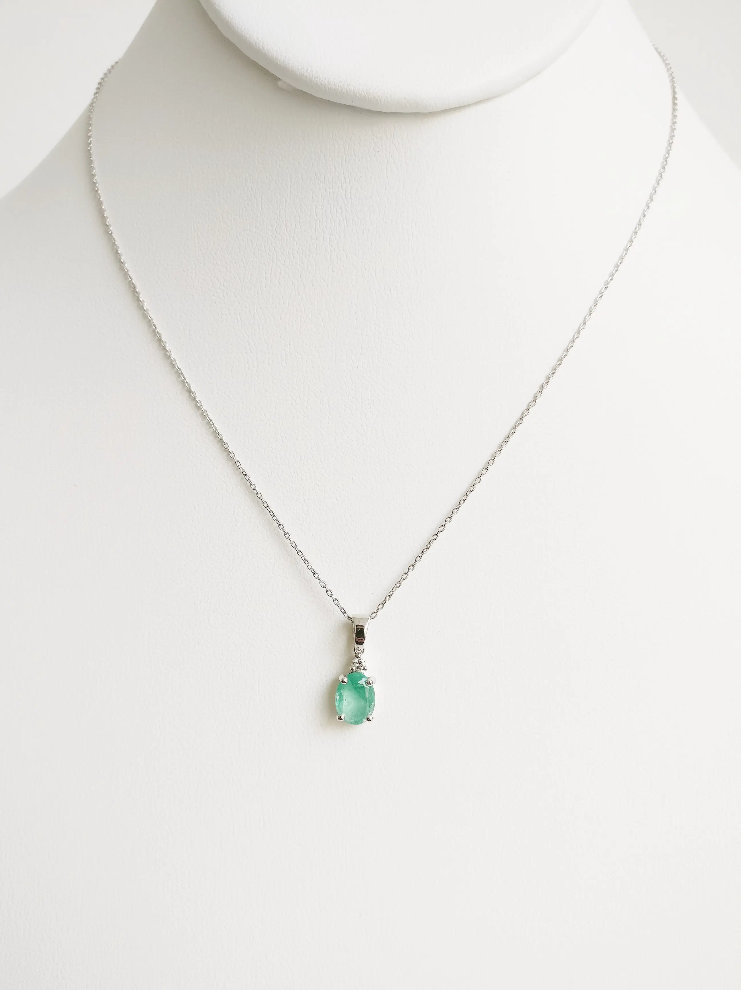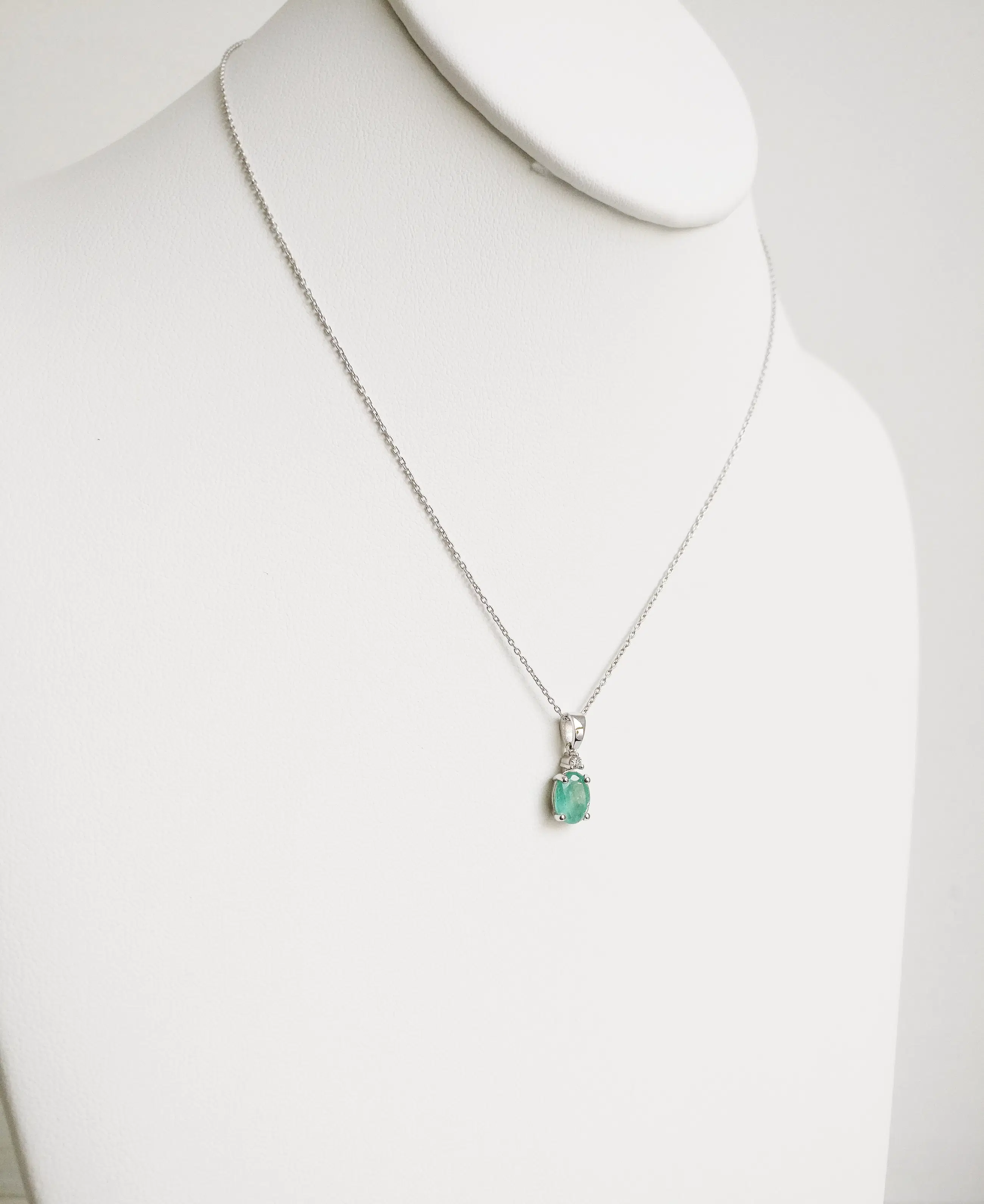 Hanger van 18-karaats witgoud, bezet met een natuurlijke smaragd en diamant, met een ketting van 18-karaats witgoud.
