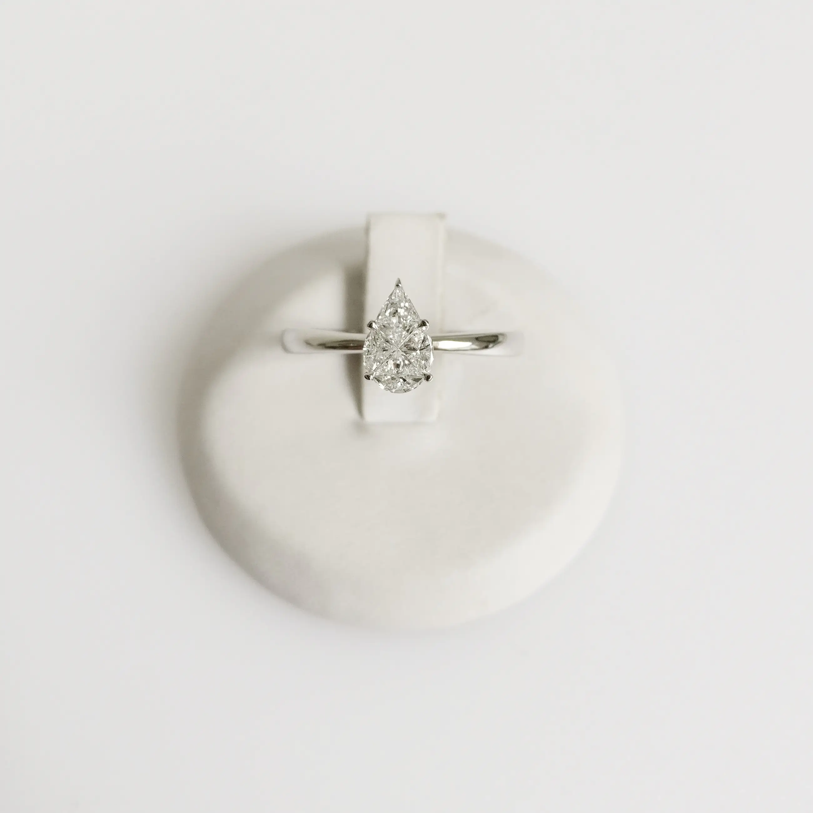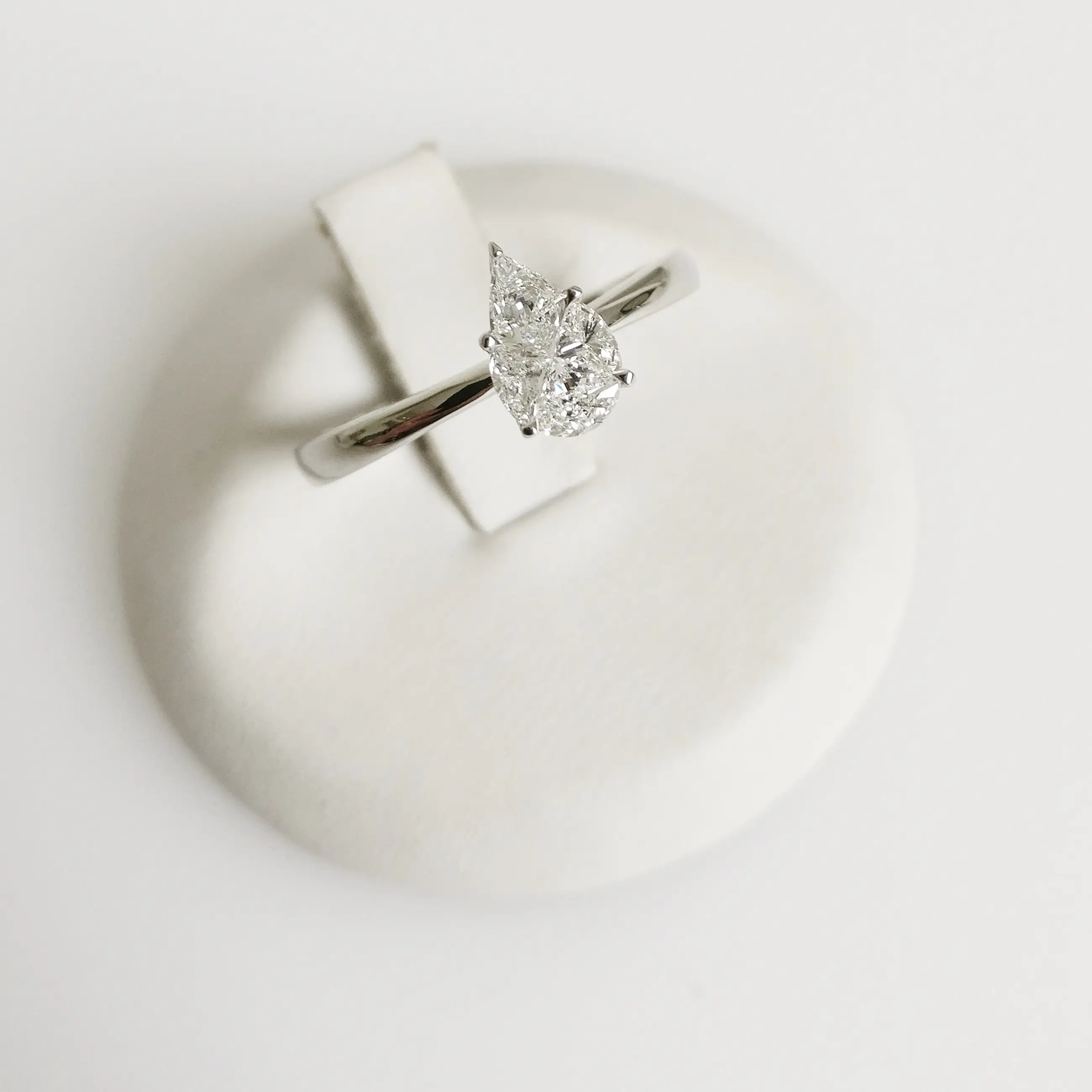 Peervormige illusiediamantring in 18kt witgoud