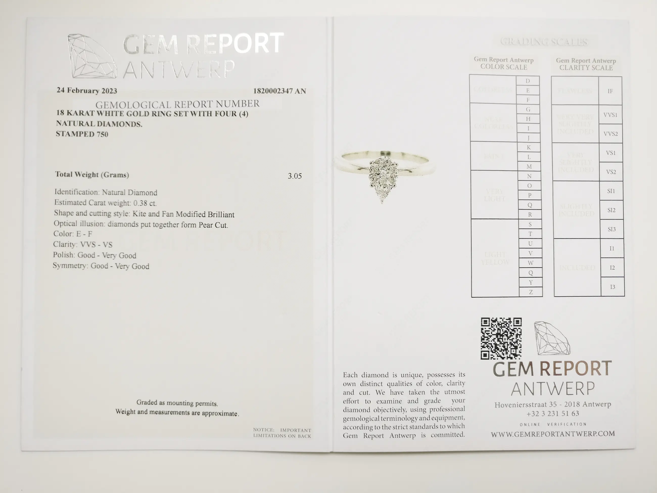 Steengewicht: 0,38 ct - 4 stenen gezet in een peervormige diamant, EF VVS-VS