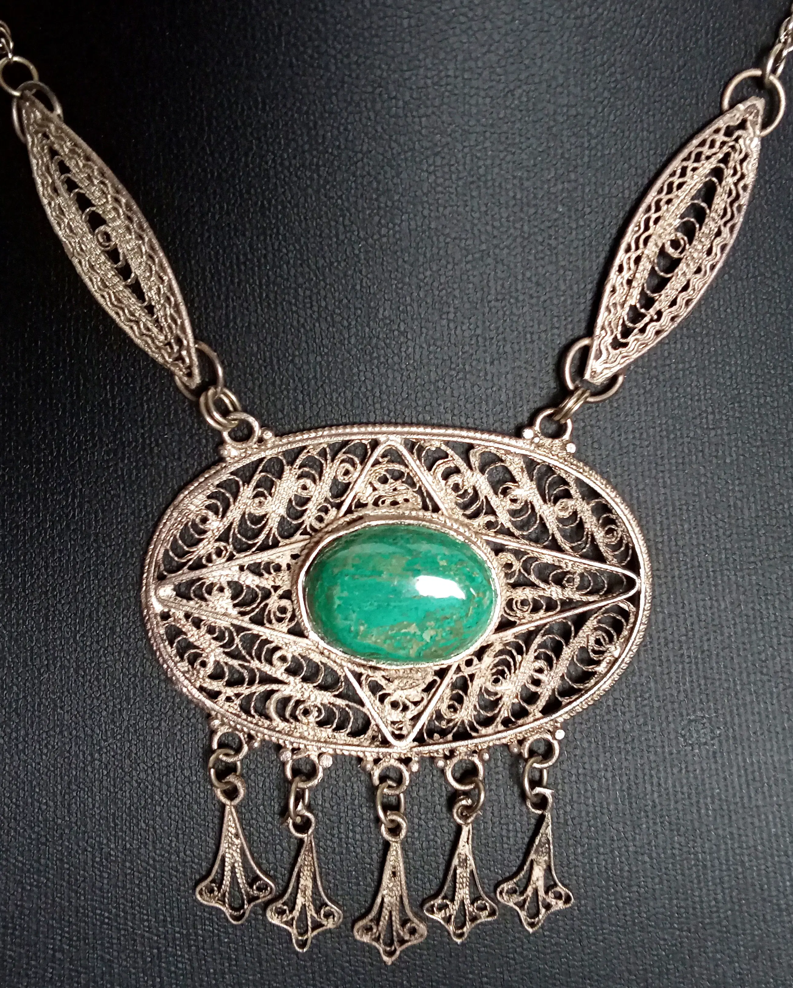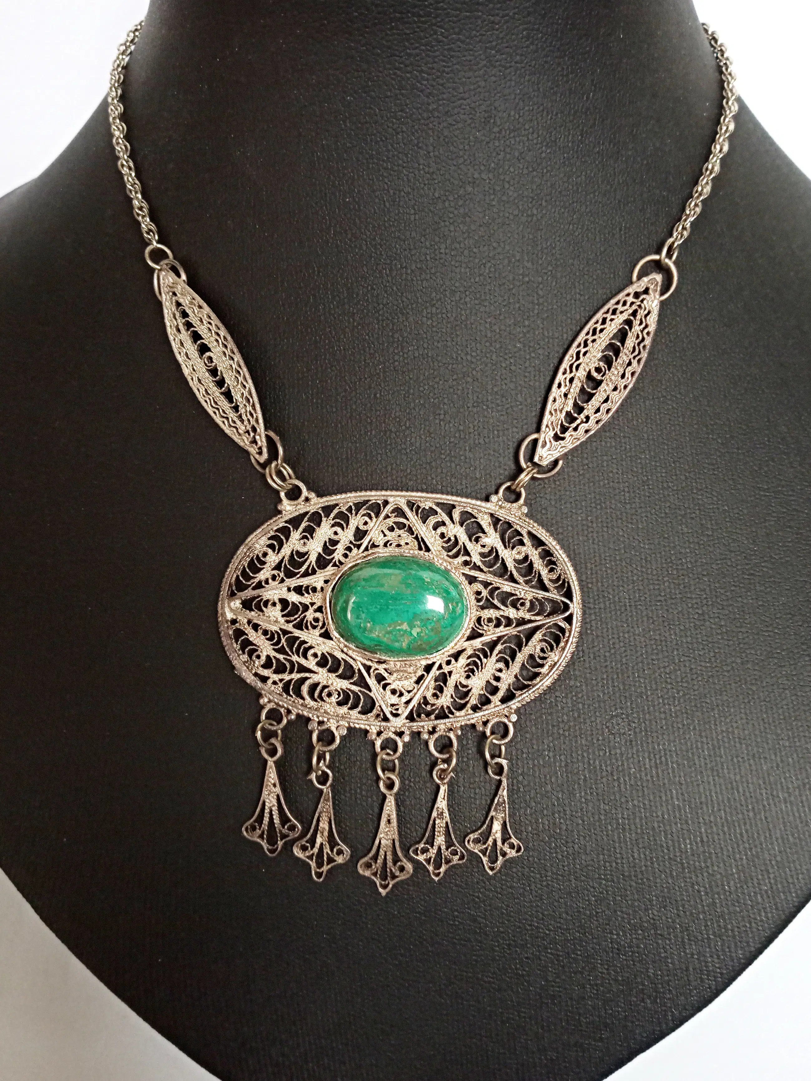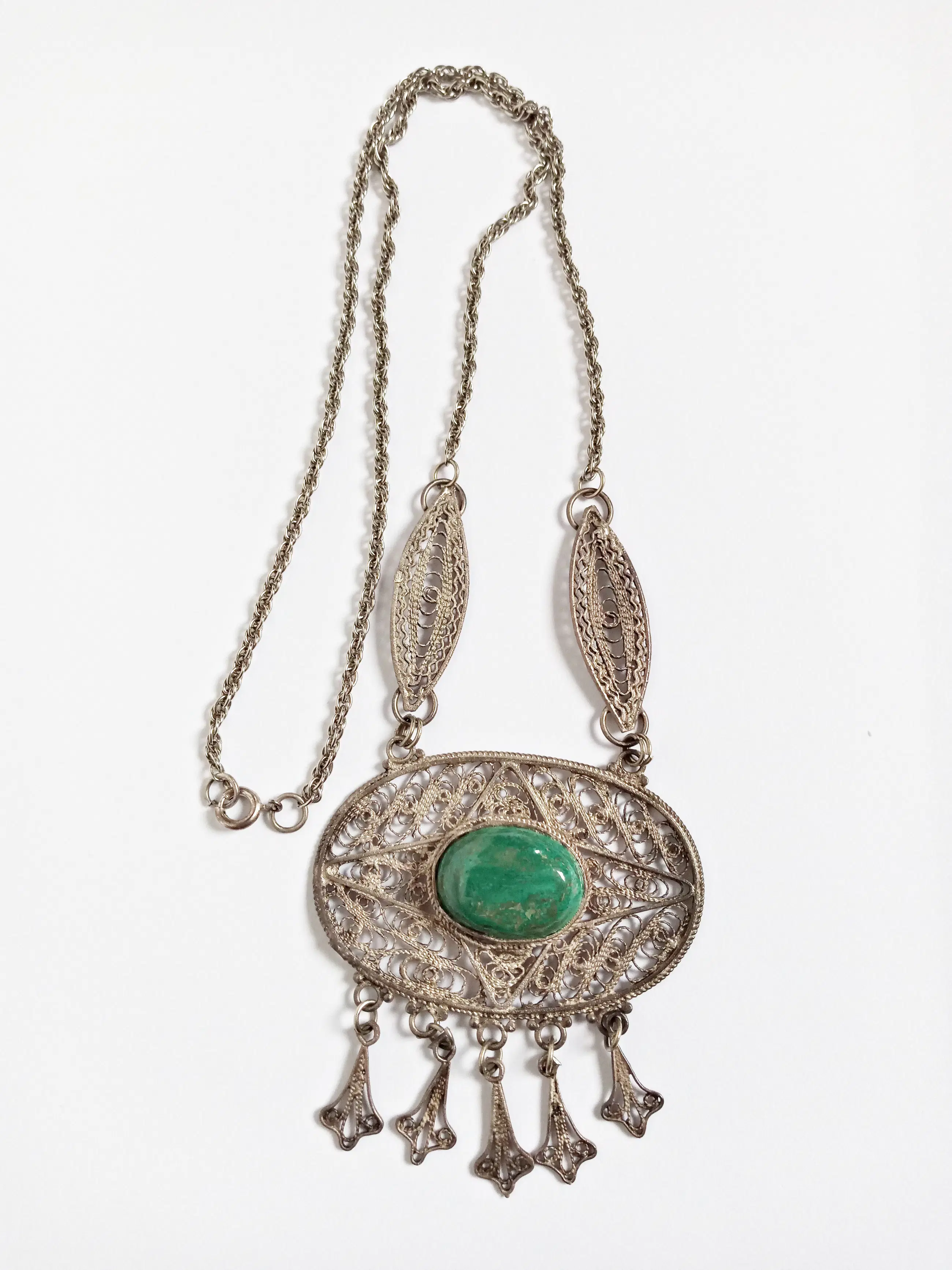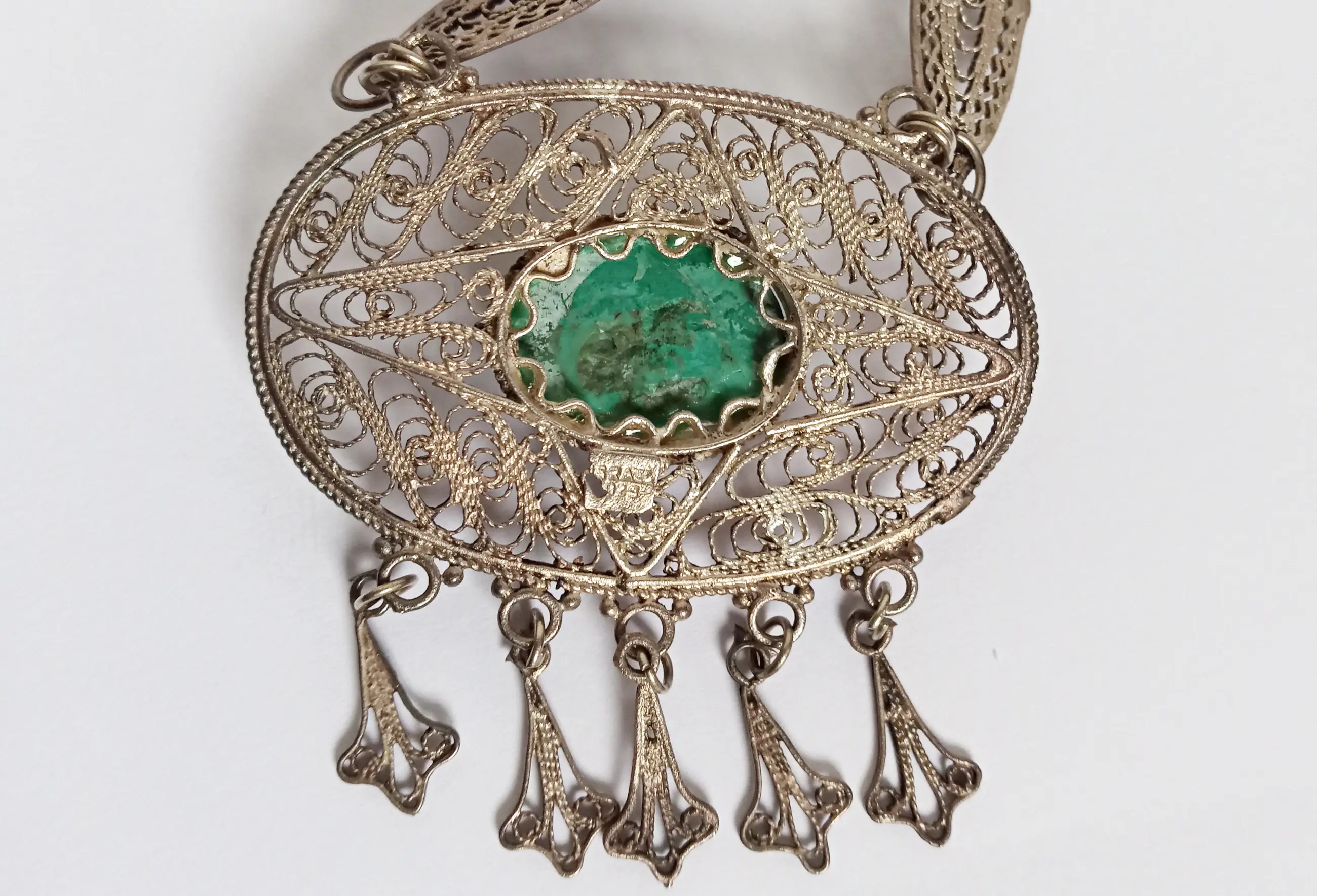 Sterling zilver filigrain collier met Eilat steen. 50er-60er jaren