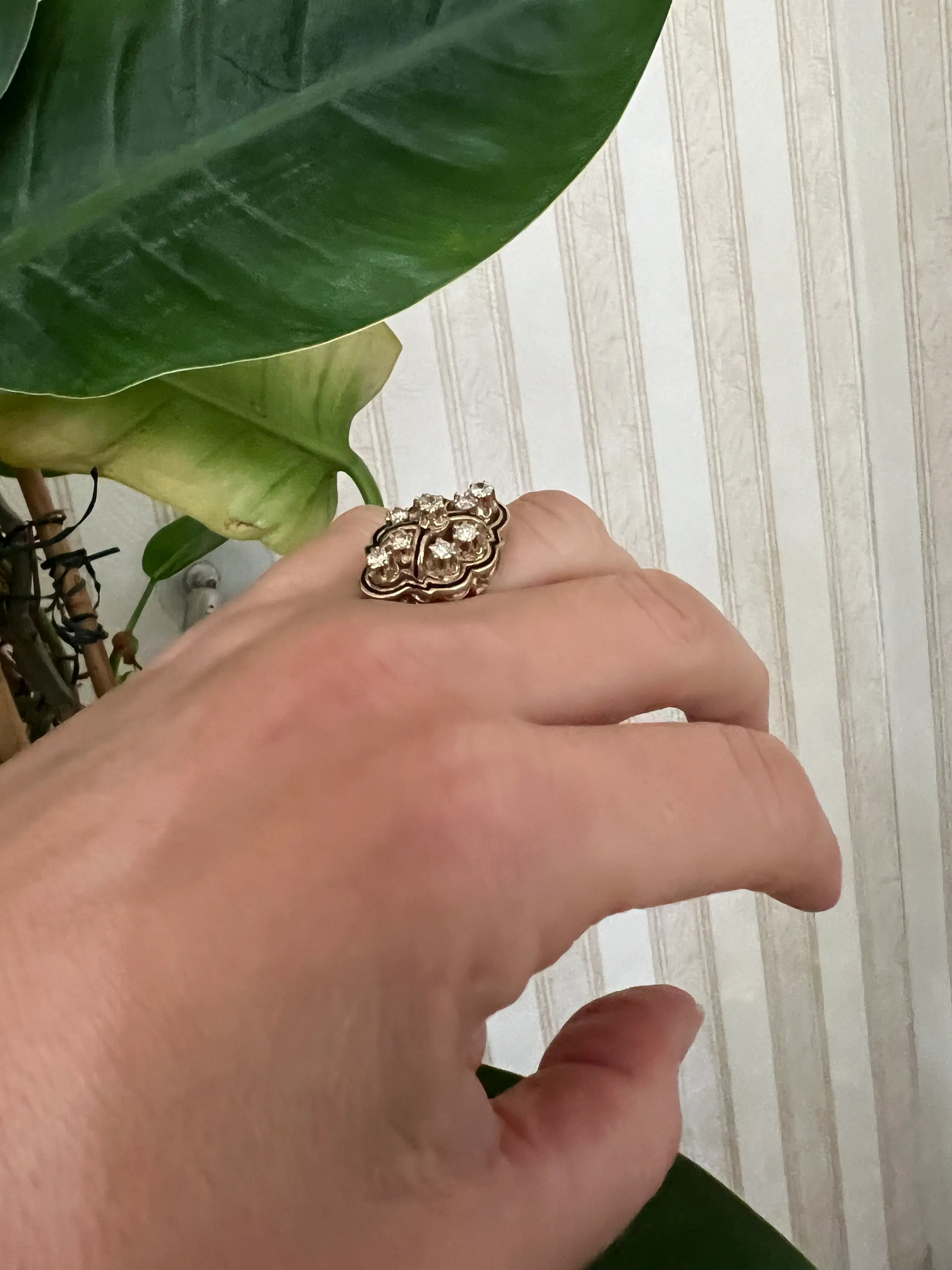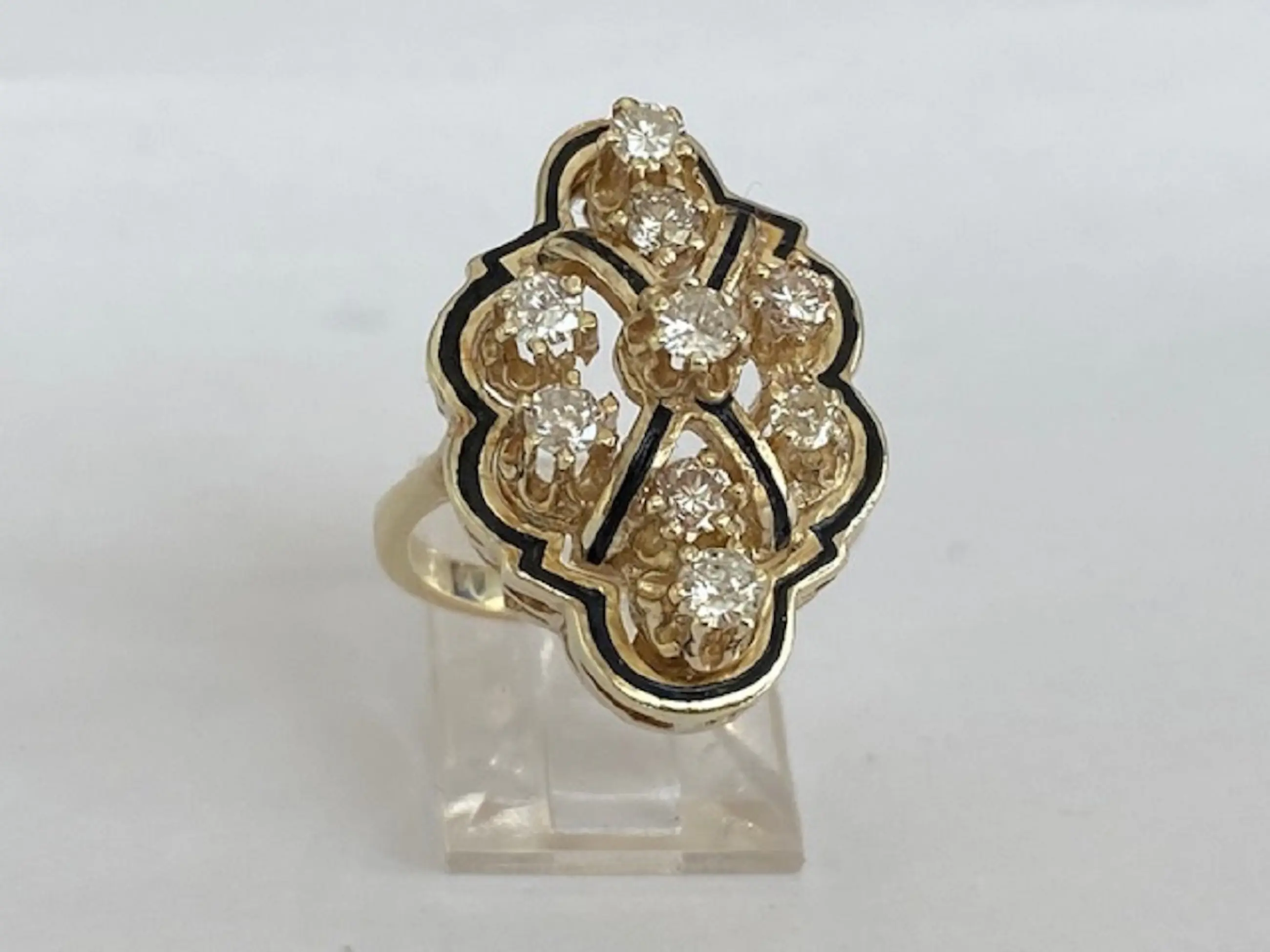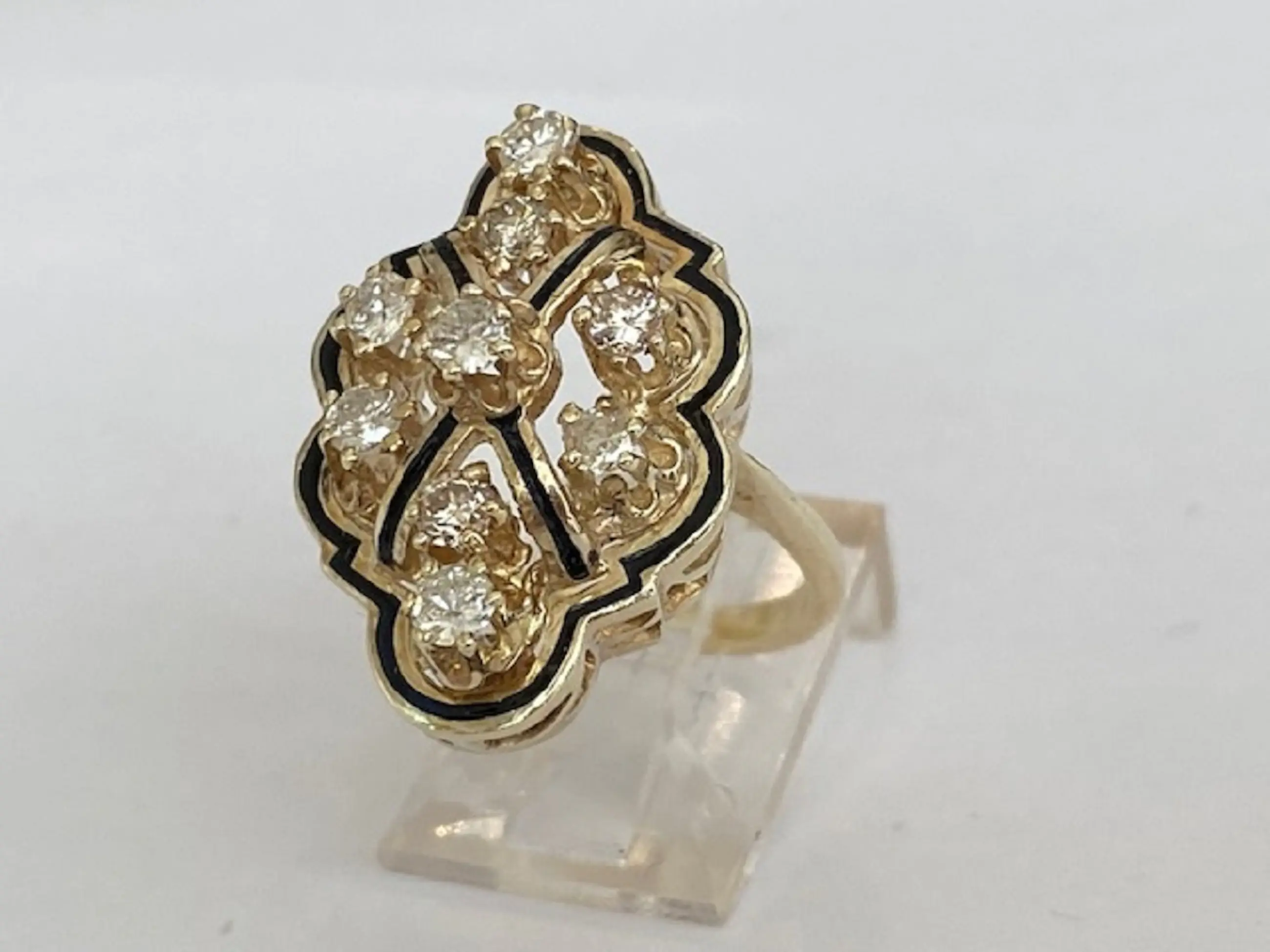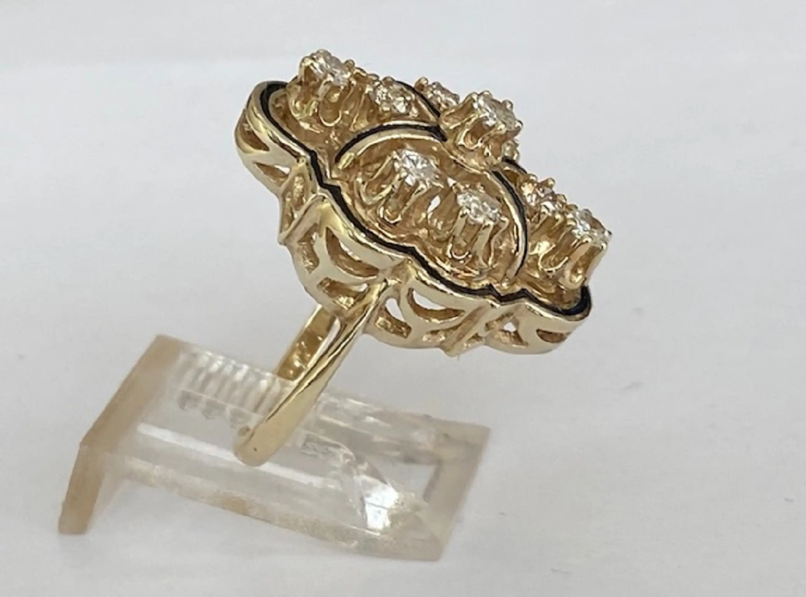 Vintage cocktailring van 14 karaat geelgoud met diamanten kopen? Bied vanaf 750!