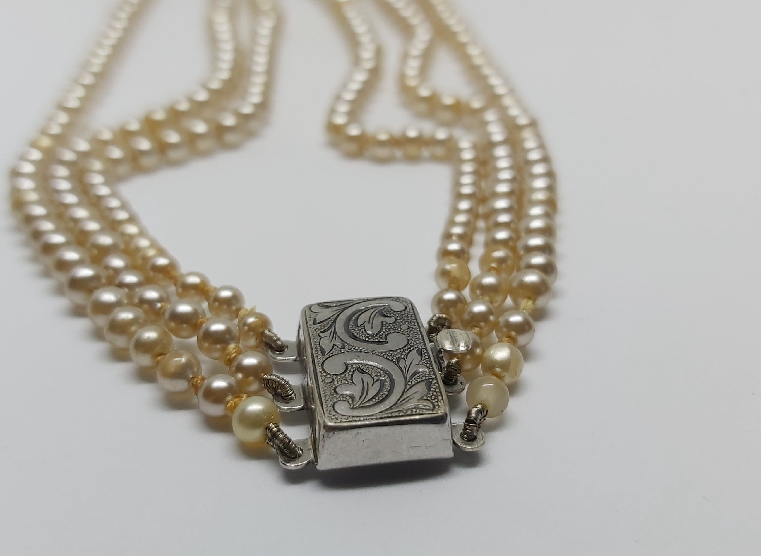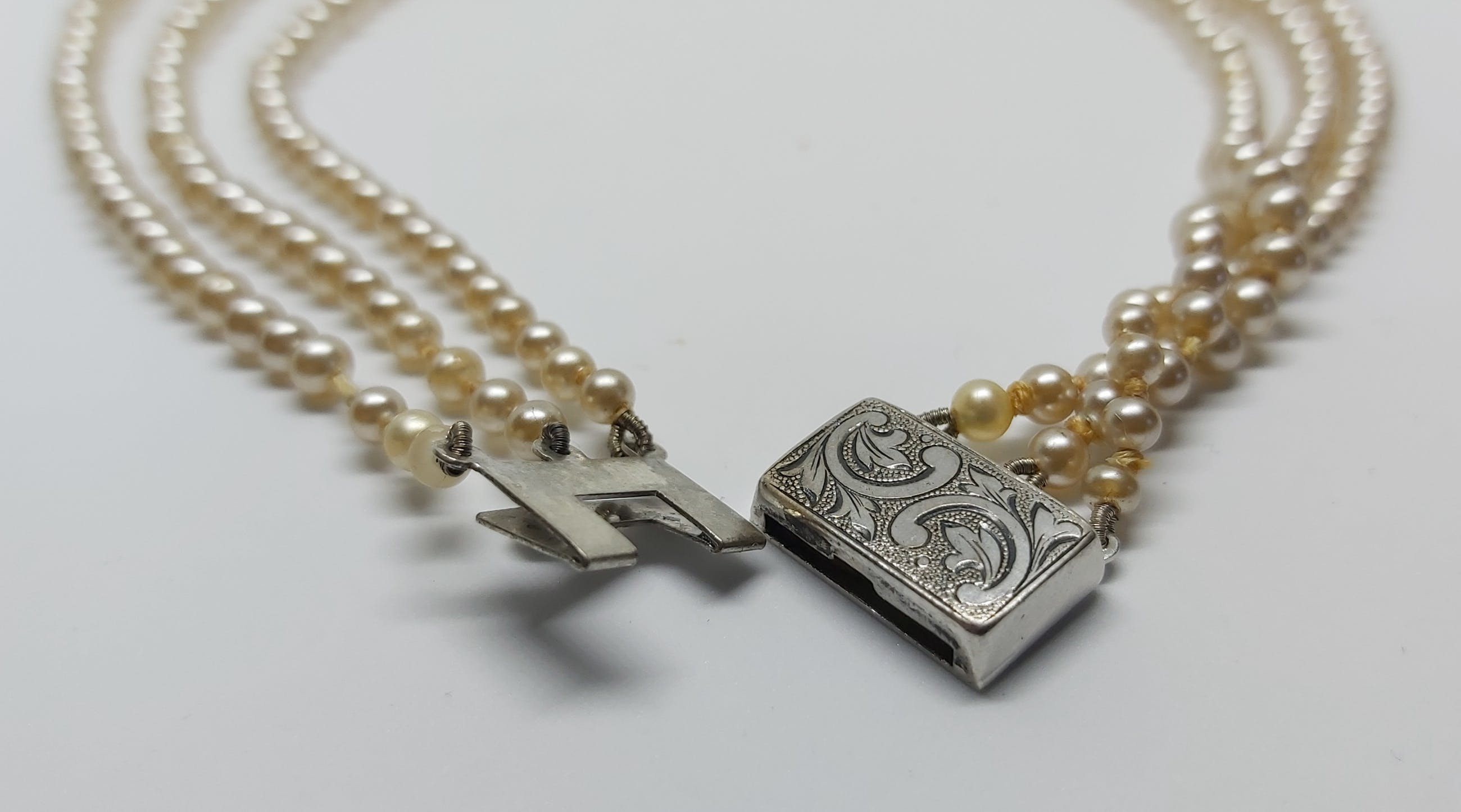Vintage collier met glasparels en een zilver slotje gemerkt met 835.