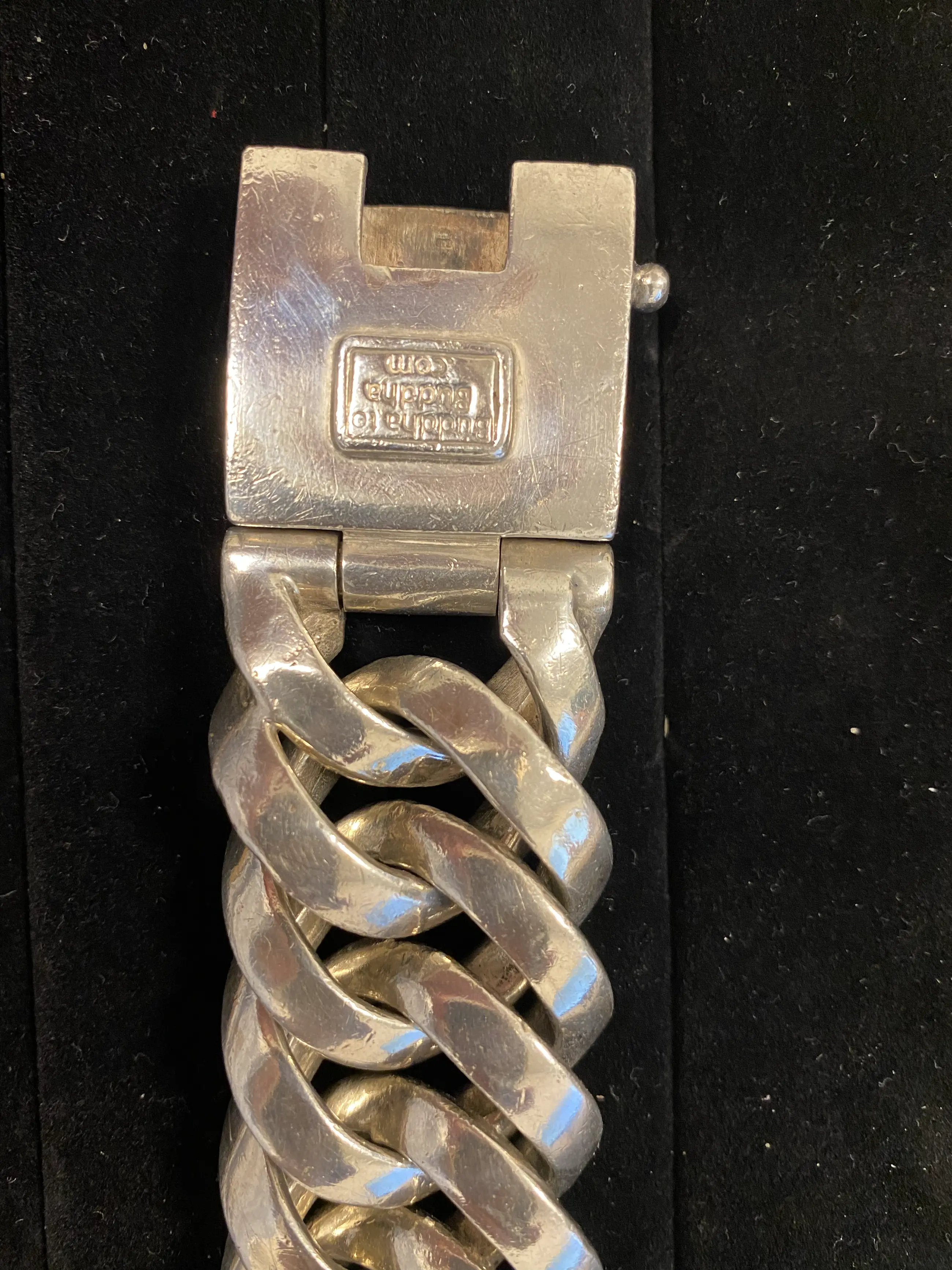 Zilveren Armband Buddha to Buddha Dikte 60 mm Gewicht 193.7 gram Lengte 21 cm Gehalte 925/1000 Eerste type buddha to buddha armband met .com logo. Lot Z-4