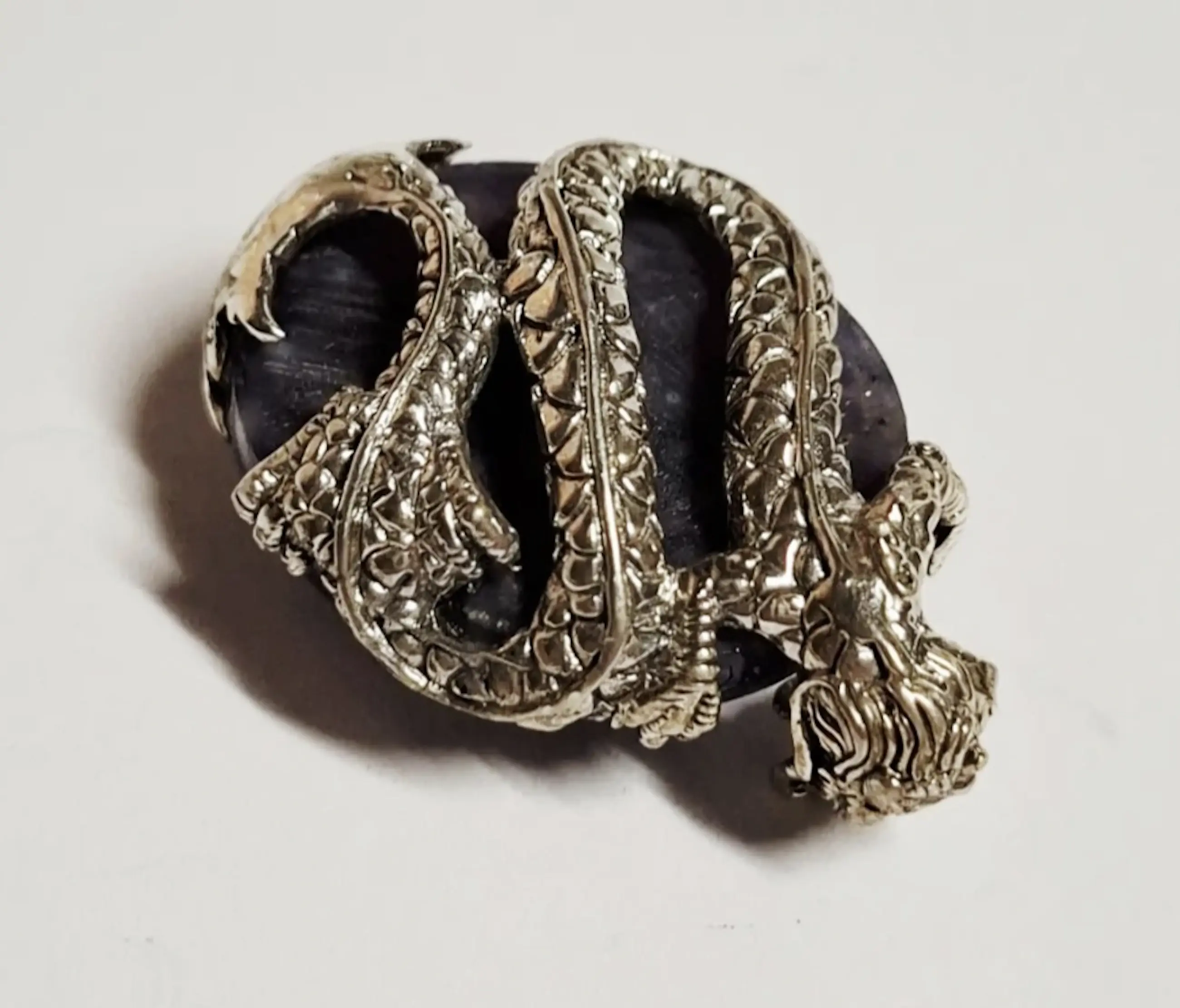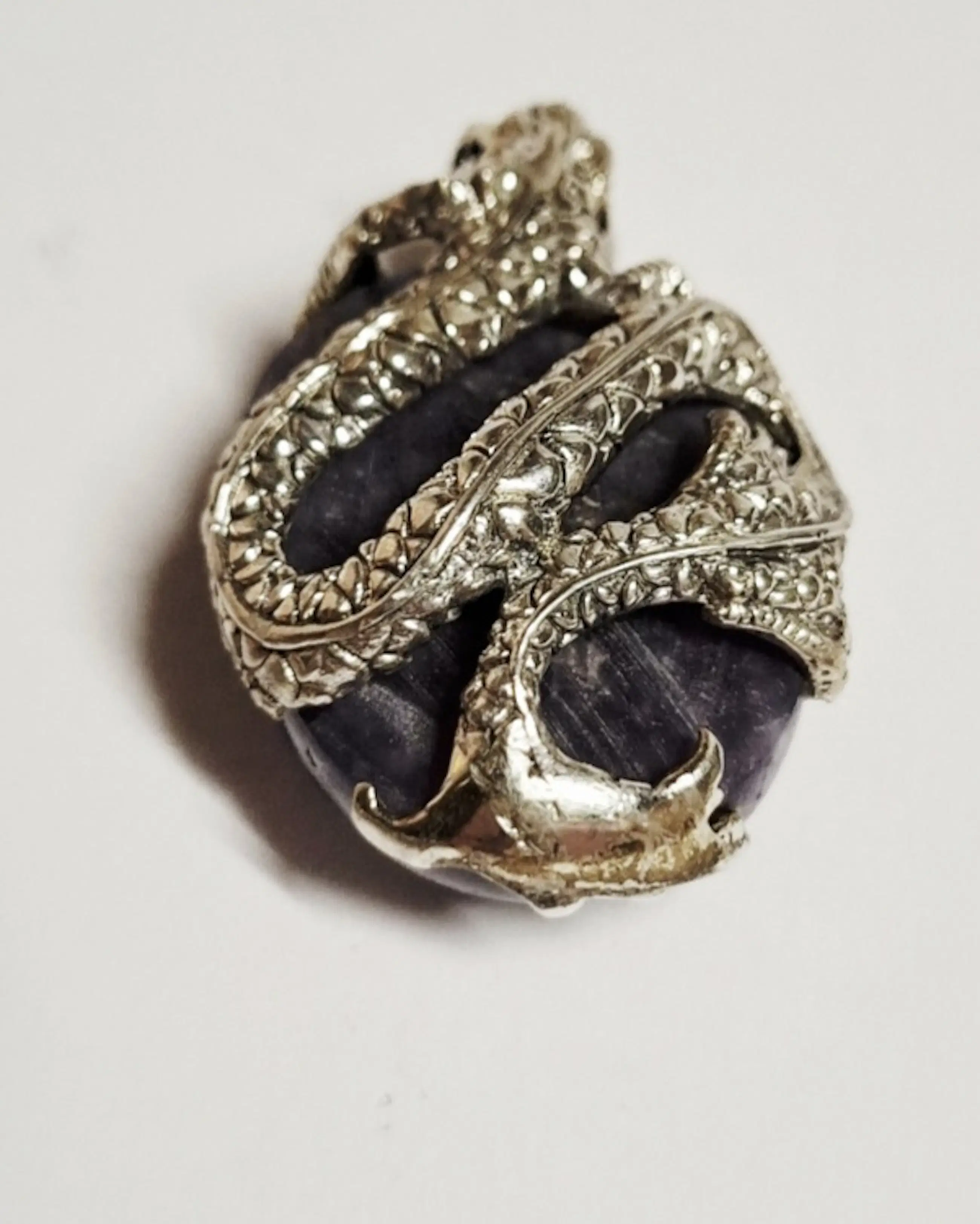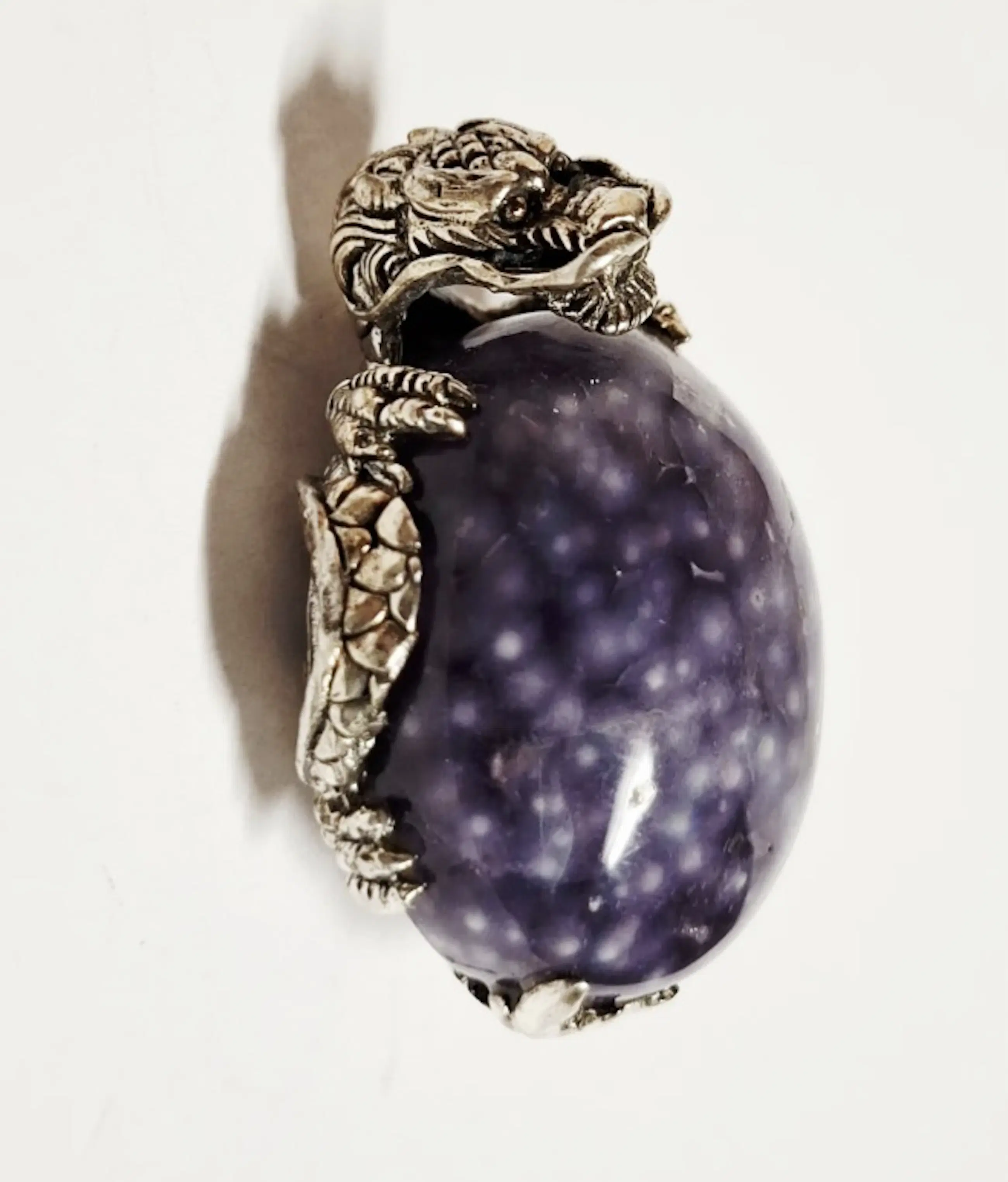 Zilveren Handgemaakte 925 zilveren Chinese draak hanger Wu Long Chinese zwarte draak Oolong hangerzeer zeldzaam zilveren Natuurlijke lavendel druivenagaat 925 zilver gevangen door de Chinese zilveren draak