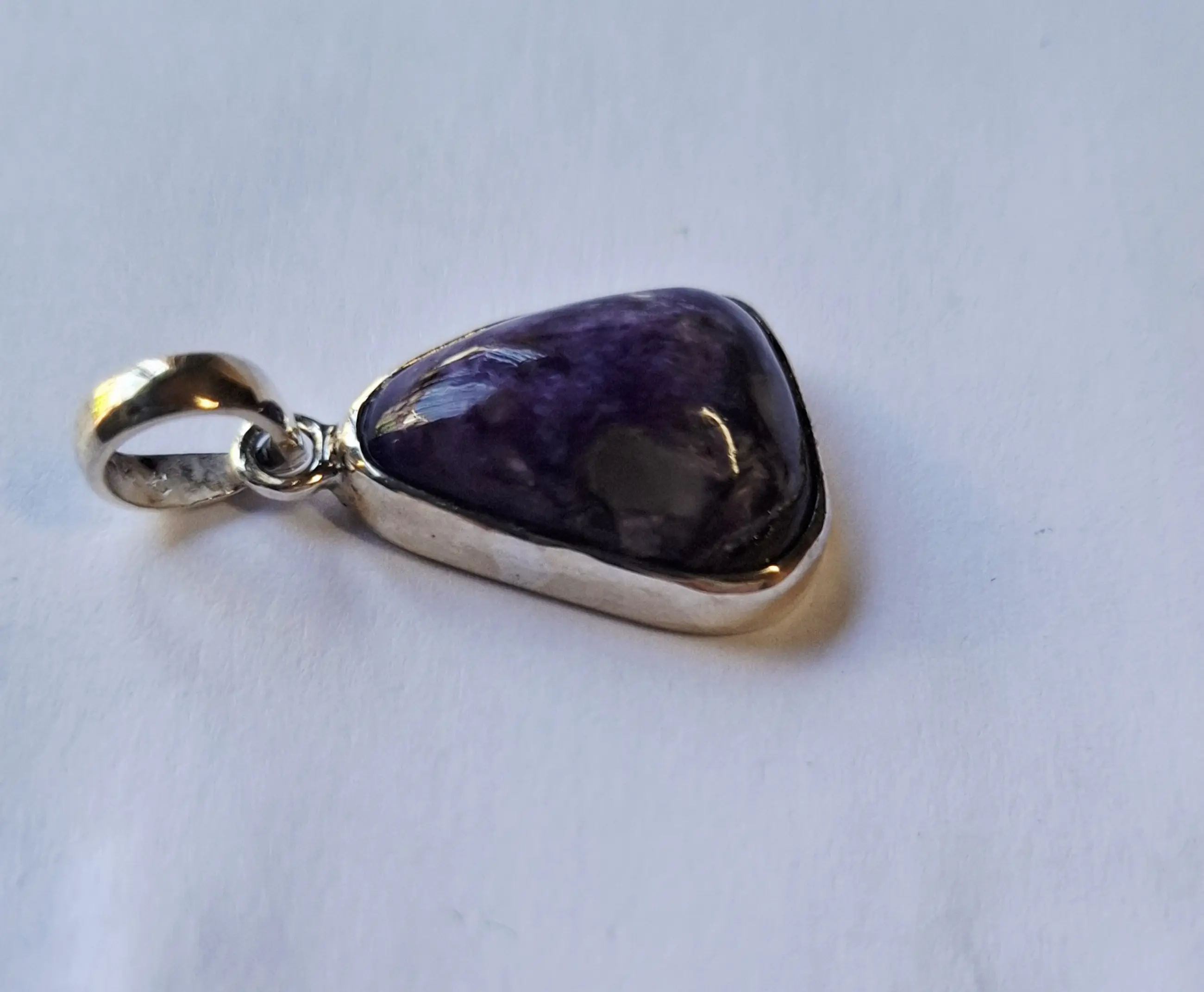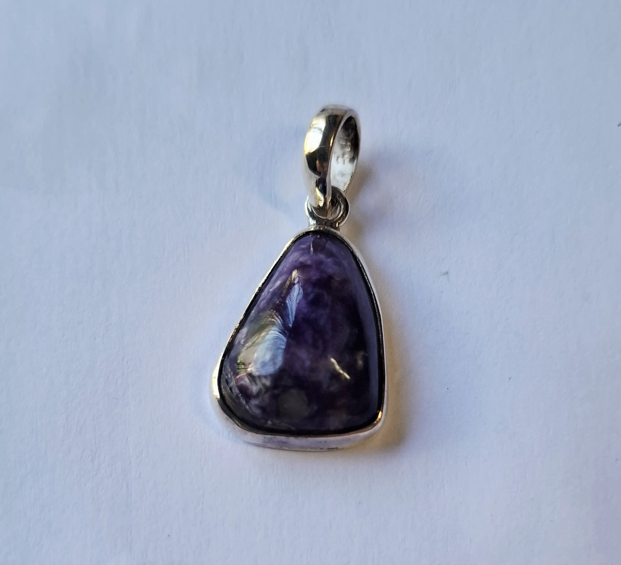Zeldzaam zilveren hanger met zeldzame Sugiliet is een relatief nieuw mineraal dat zijn naam ontleent aan de Japanse ontdekker: Ken-ichi Sugi. De Sugiliet die in Japan werd ontdekt wat bruin/geel van kleur. Pas in 1979 werd de prachtige paarse variant gevonden in Zuid Afrika waarna het de edelsteen status kreeg. Sugiliet werd in 1980 officieel een zeldzame edelsteen. Naderhand zijn er nog andere deposito’s van dit mineraal gevonden. Echter zijn deze op 1 hand te tellen en blijft Sugiliet te boek staan als een weinig voorkomend mineraal.De kleur van Sugiliet wordt bepaald door de aanwezigheid van mangaan. De kleur kan variëren van diep roze, paars tot blauw en alles daar tussenin. Het mineraal wordt vaak in combinatie met chalcedoon of kwarts gevonden waardoor mooie kleuren combinaties ontstaan. Zo ook in deze gepolijste knuffelstenen. Sugiliet helpt in het hier en nu te leven. Het vergoot inzichten en helpt om negatieve invloeden buiten te sluiten. Het vergroot de creatieve mogelijkheden bij het oplossen van problemen en conflicten. Sugiliet is de steen van het dromenrijk. Gebruik van deze steen tijdens meditatie kan de ervaring intenser maken. De steen zorgt ervoor dat je gemakkelijker tot lucide dromen komt en deze kan onthouden. Chakra : Kruin en Derde Oog sterrenbeeld Boogschutter, Maagd.