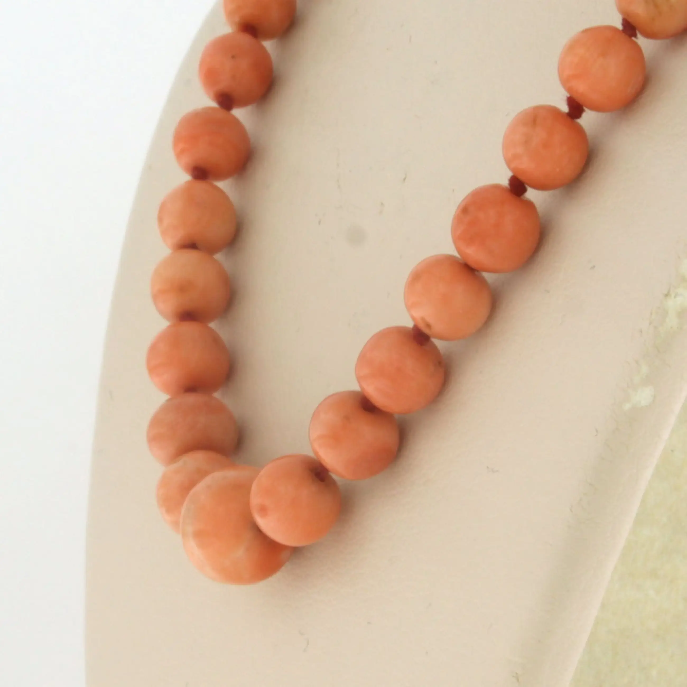 de lengte van de collier is 50 cm lang, kralen koraal lopen van 3.6 mm naar 8.4 mm breed