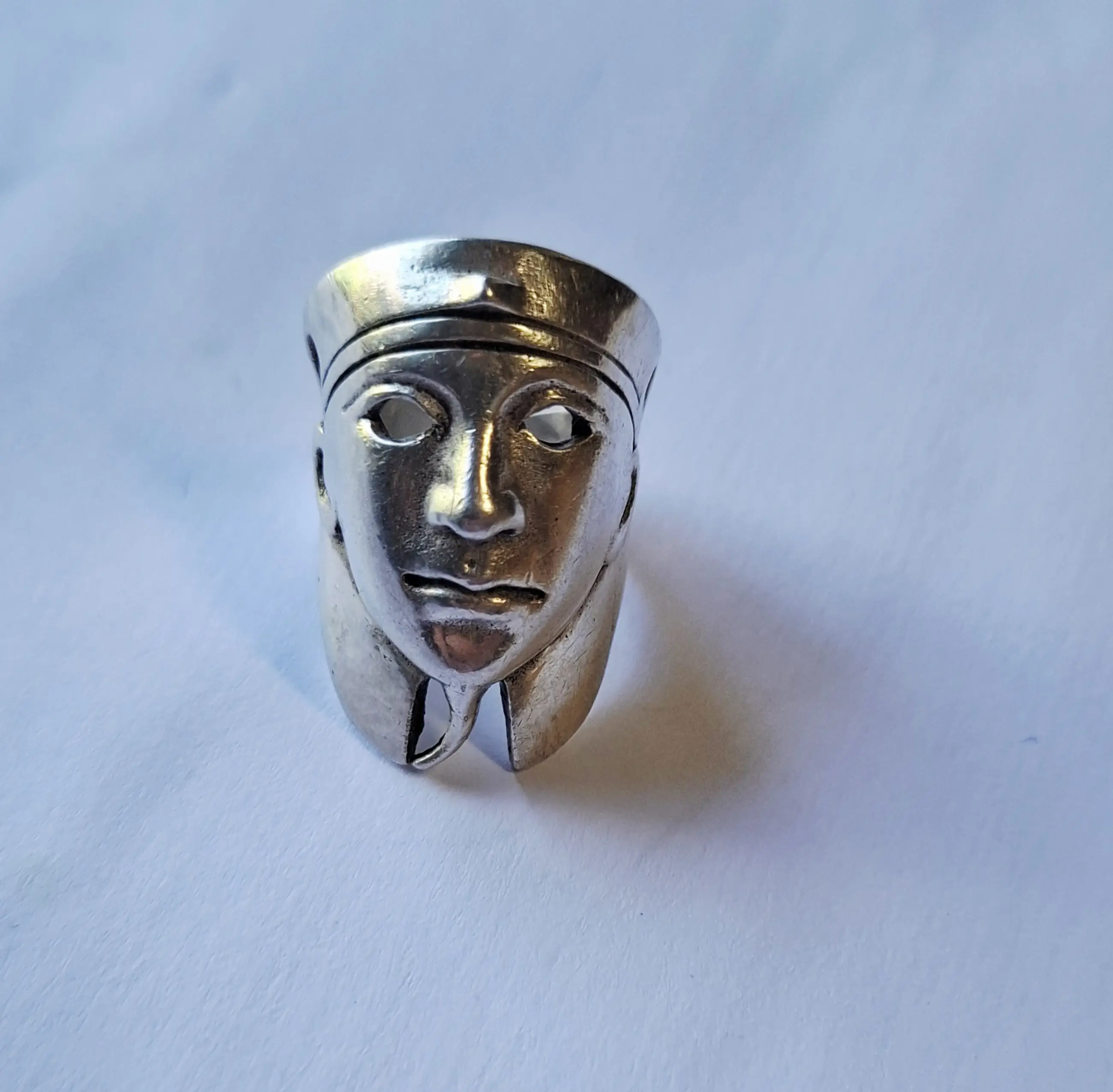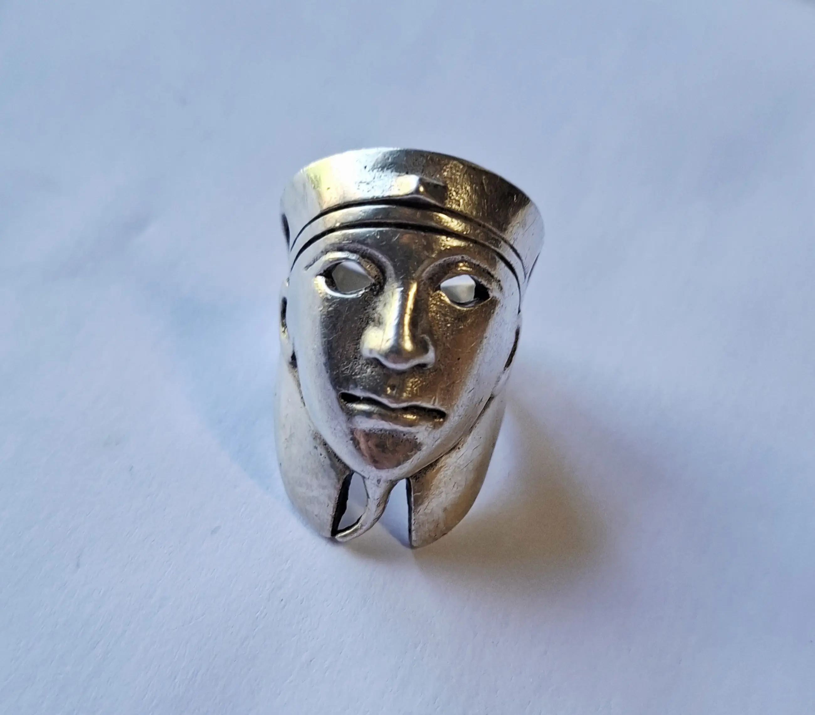 zilveren vintage egyptische farao statement ring Toutankhamon