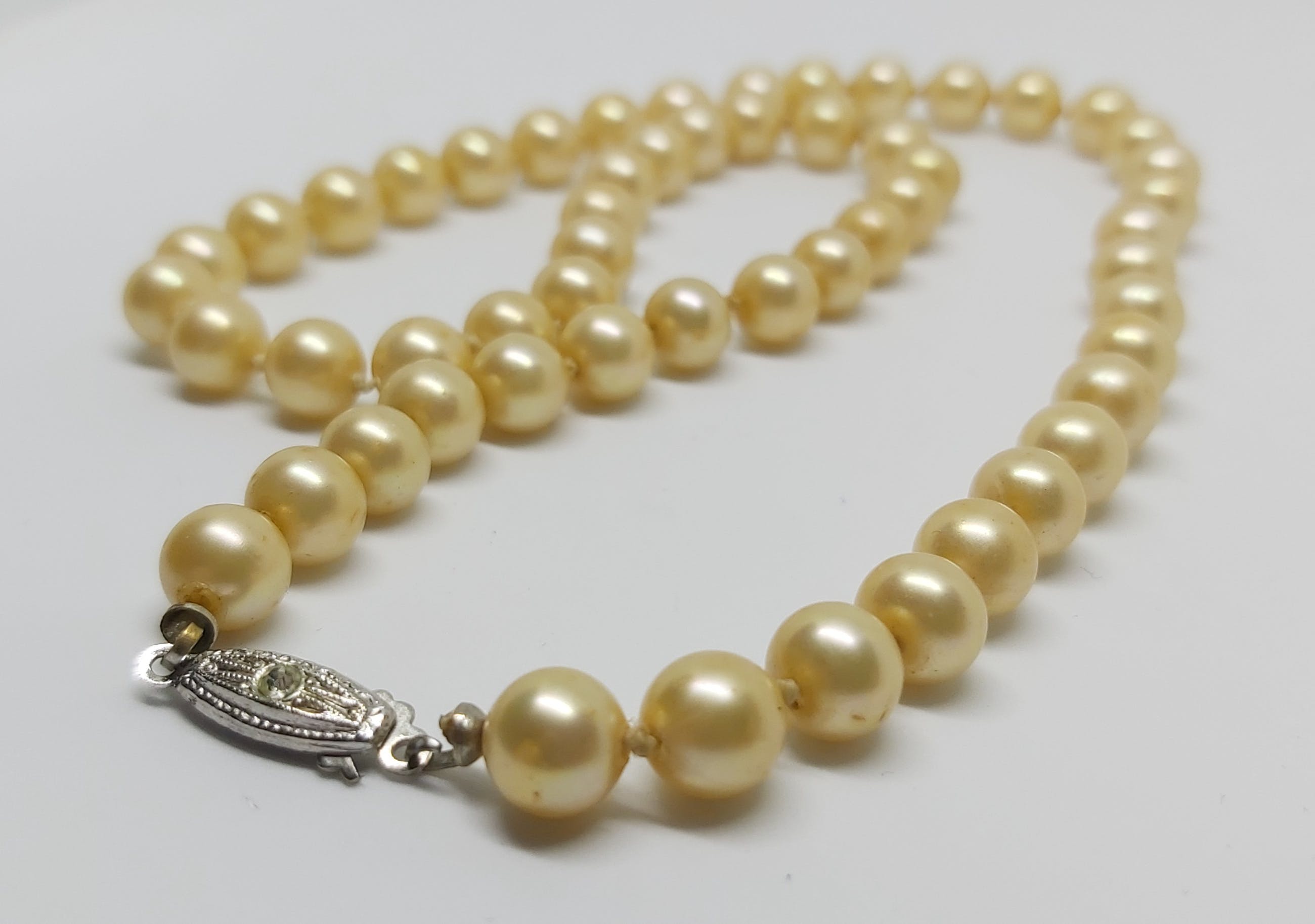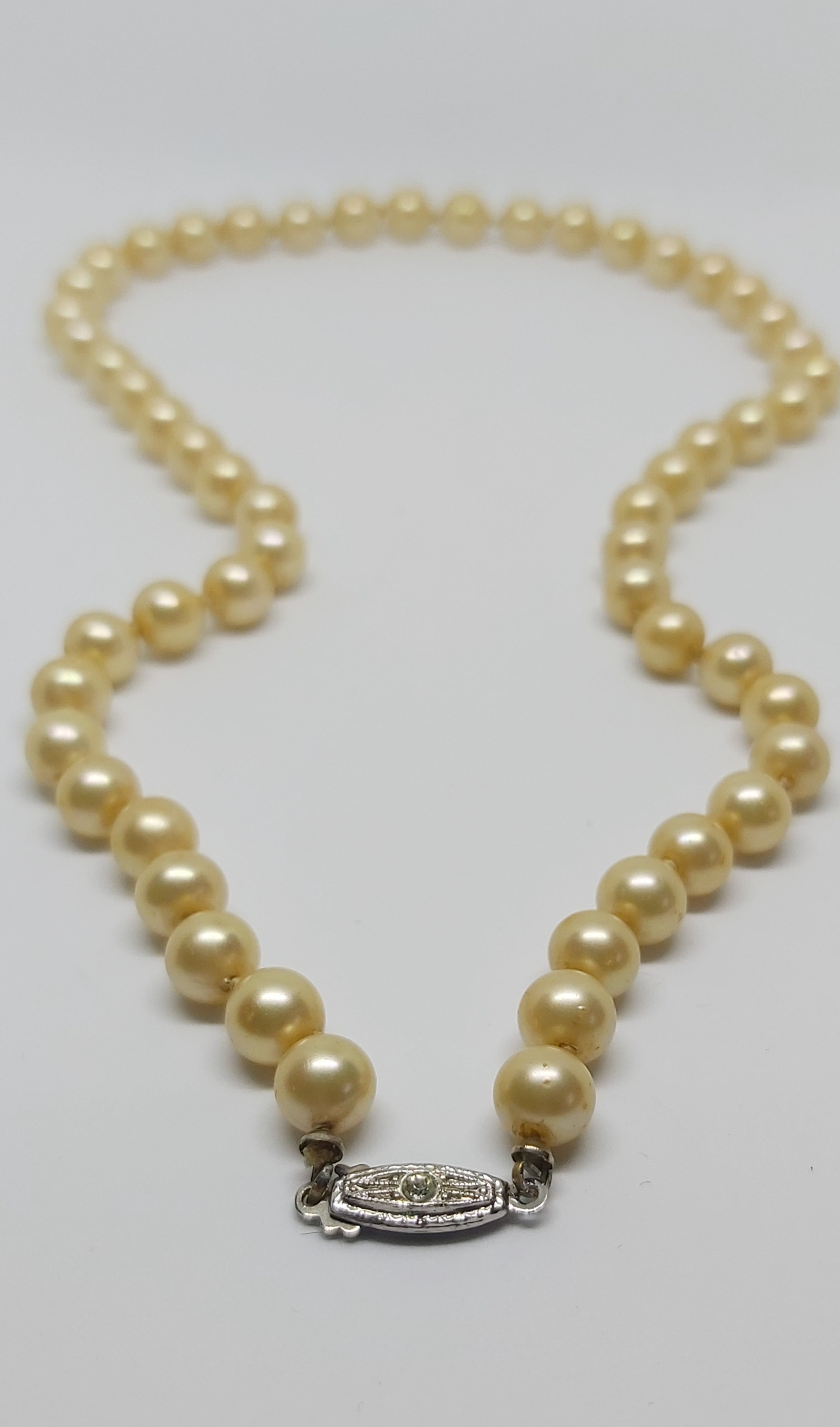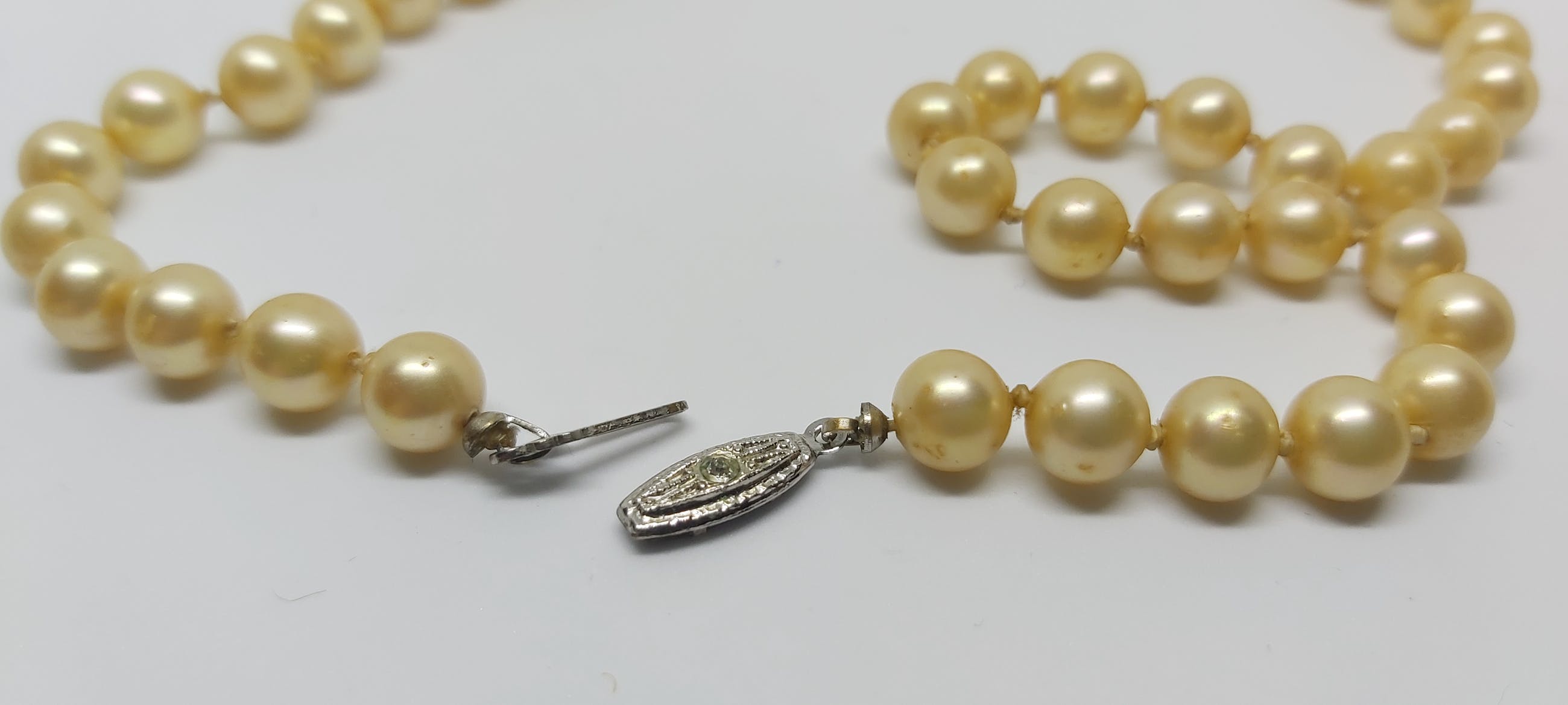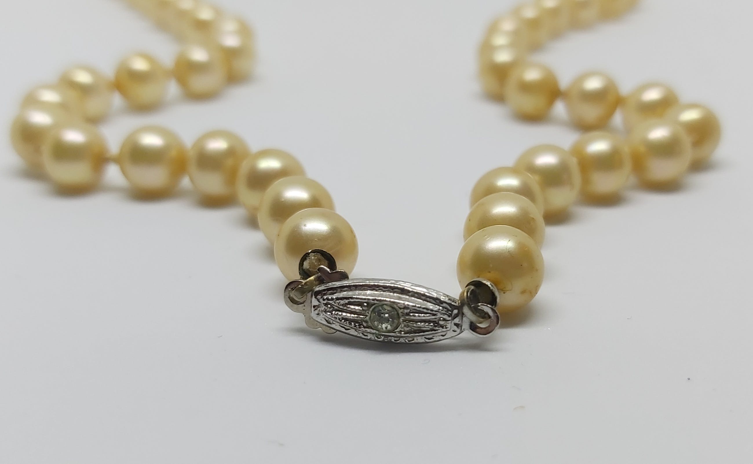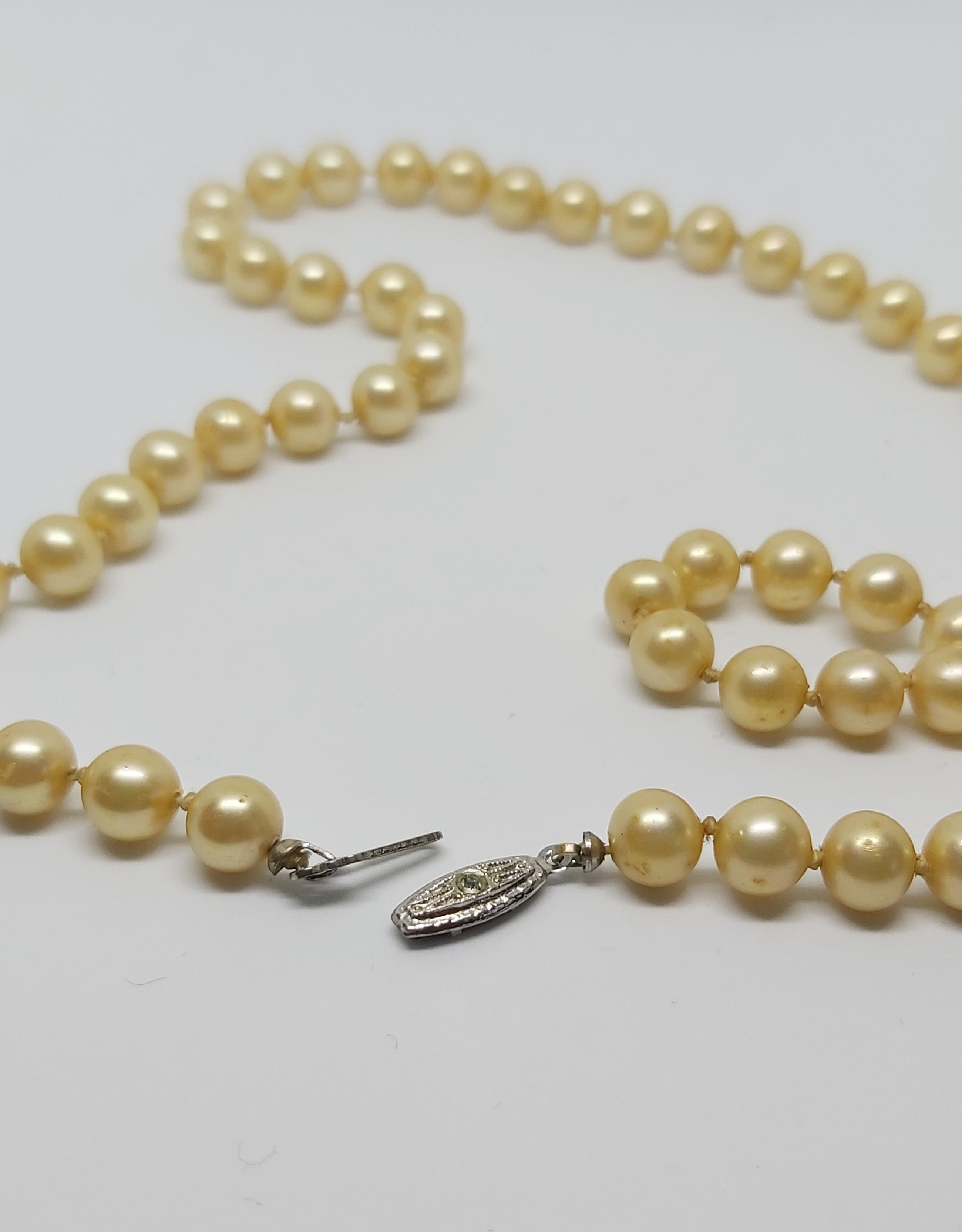 Prachtig geknoopt Zoetwaterparel Collier van 48 cm lang met een zilver slotje.