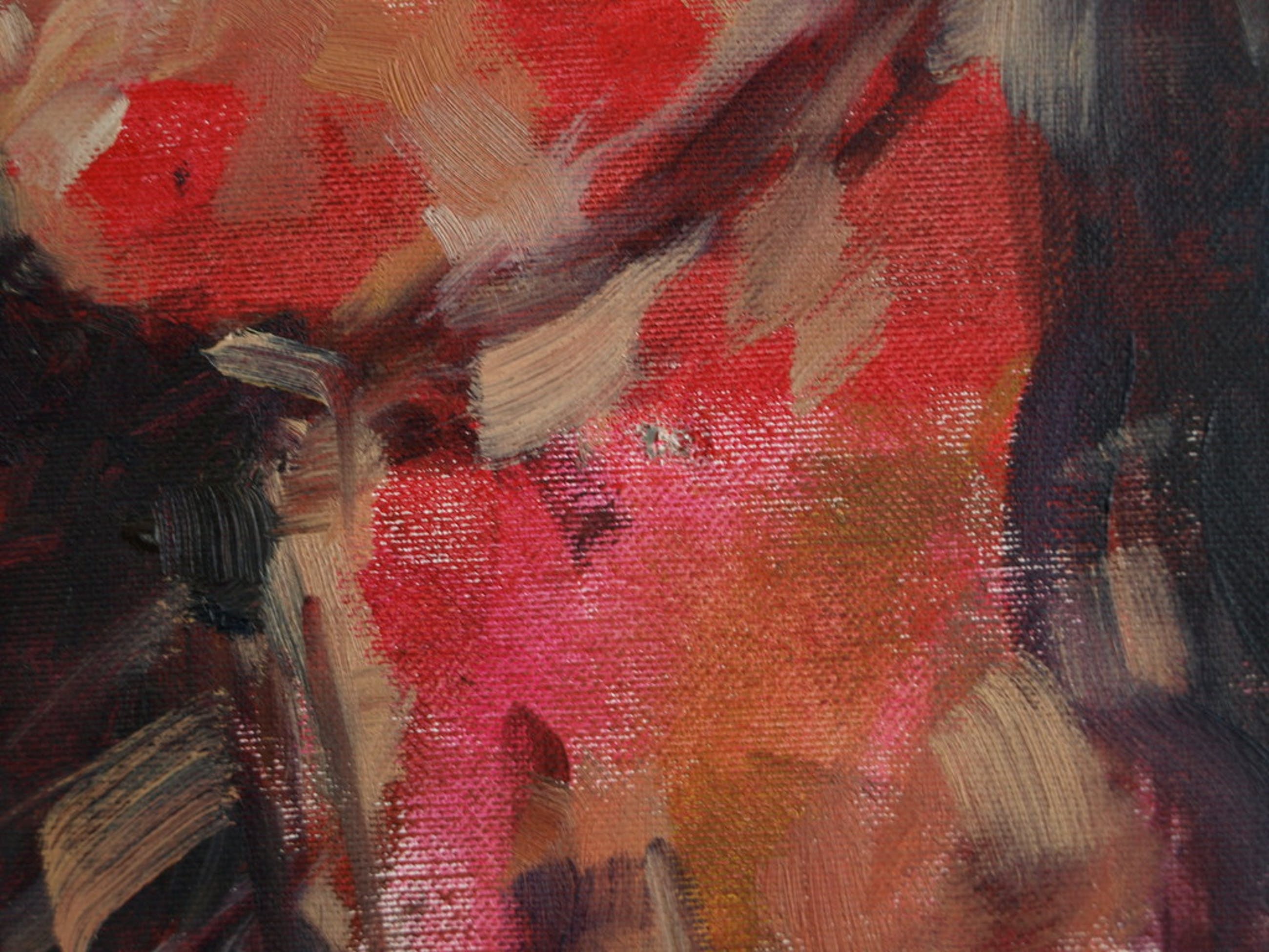 Stijl: fel realistisch met een veelal uitbundig kleurgebruik. Techniek: olieverf op doek.