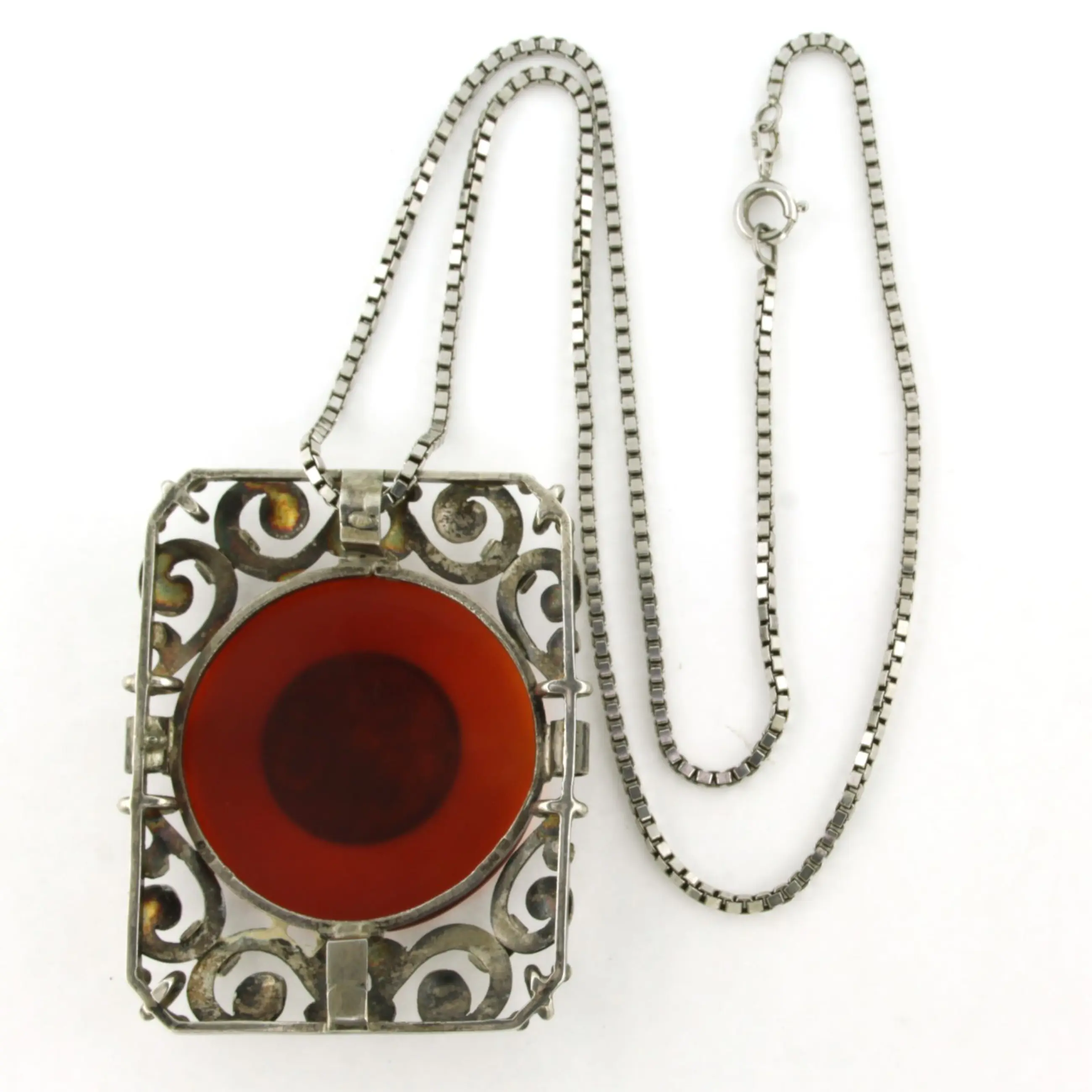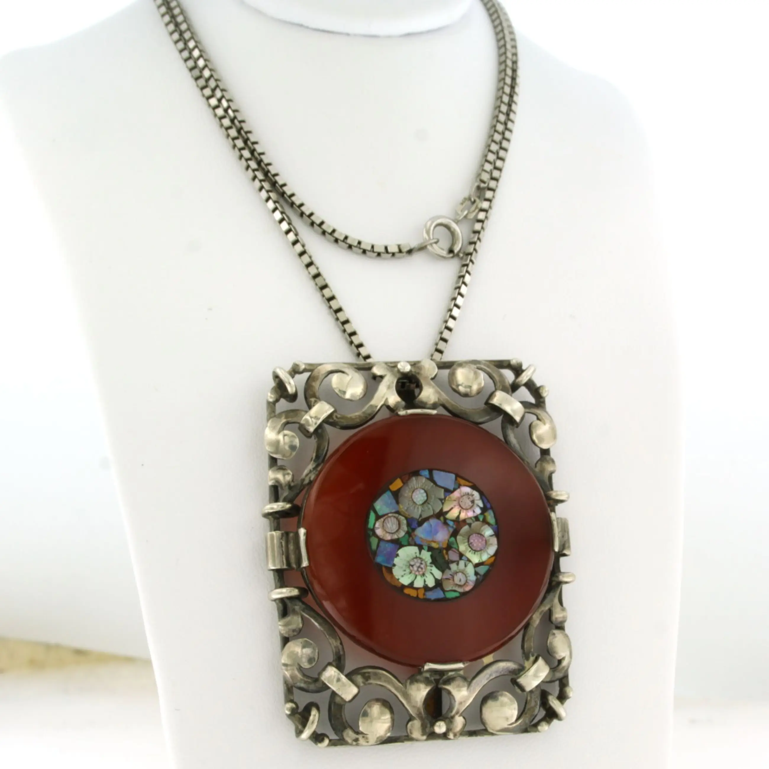 Zilveren collier met hanger met carneool en mozaïek – 32.2 gram – 50 cm lang