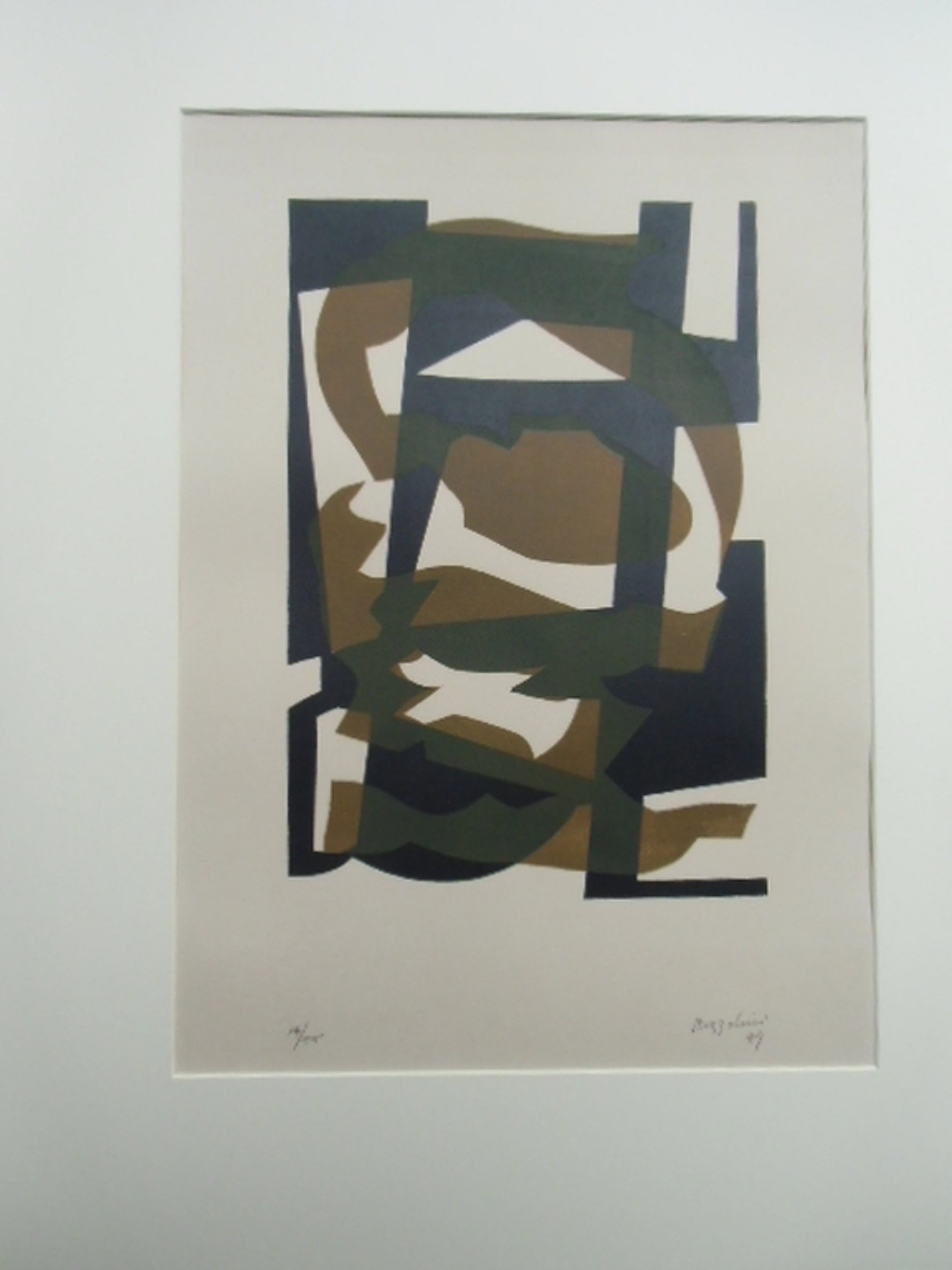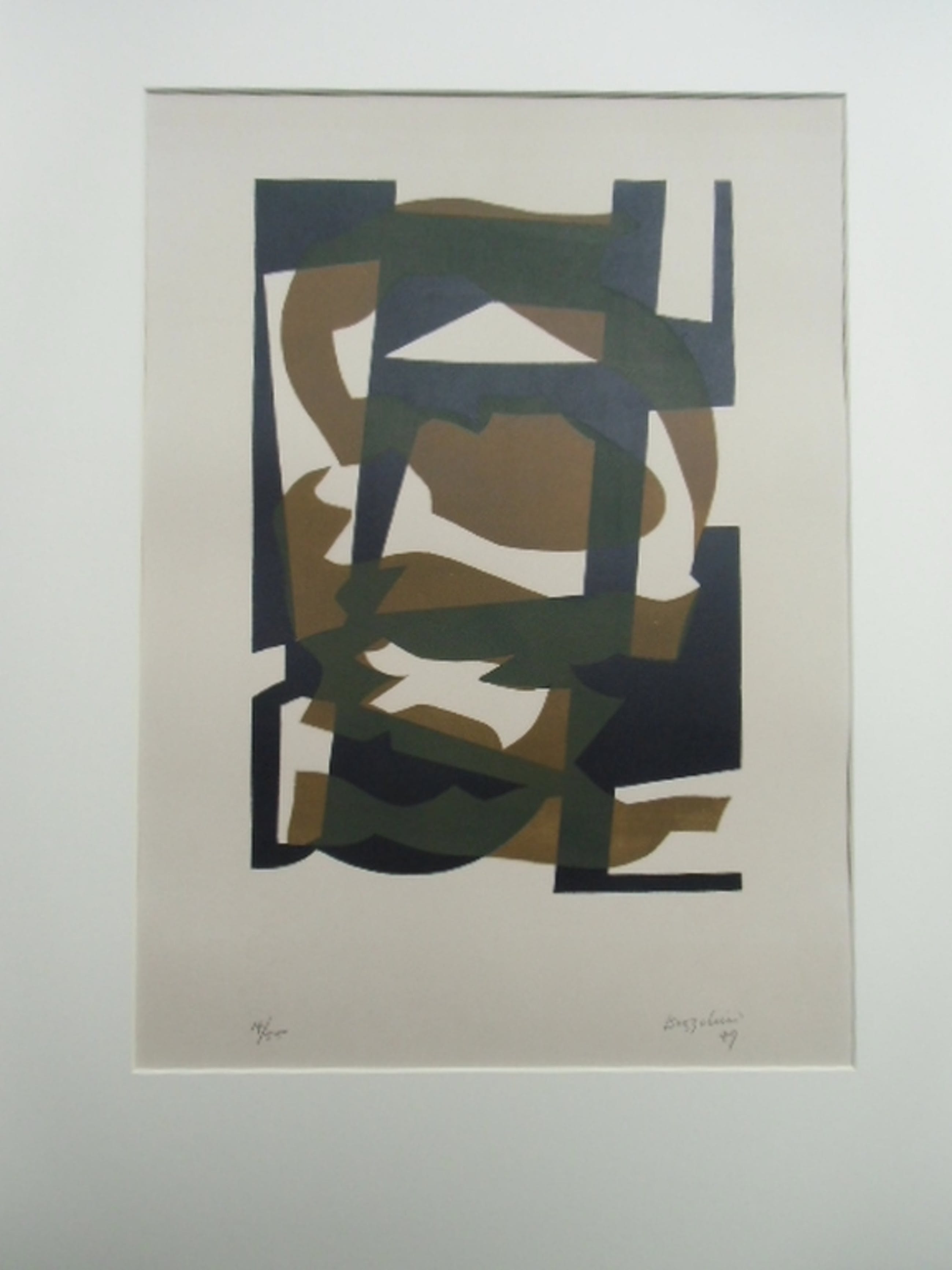 Deze linosnede in kleur op crêmekleurig papier is gedateerd 1949. Gesigneerd en gedateerd met potlood. Oplage 14/55. Uitstekende conditie.