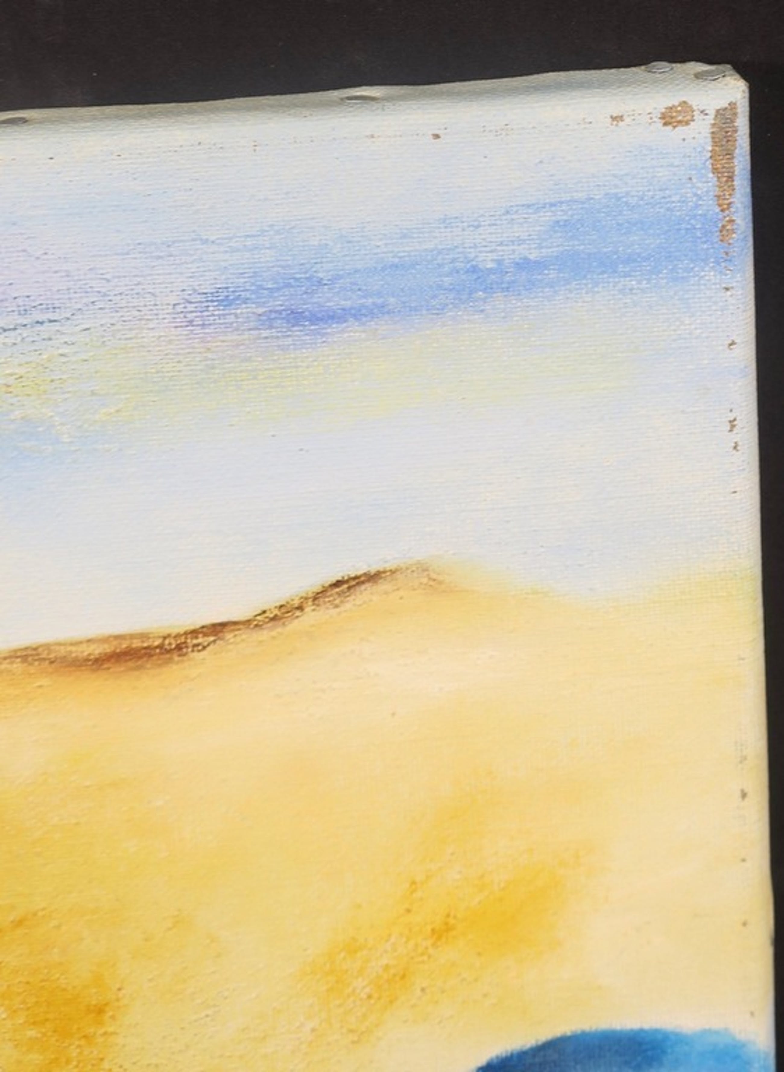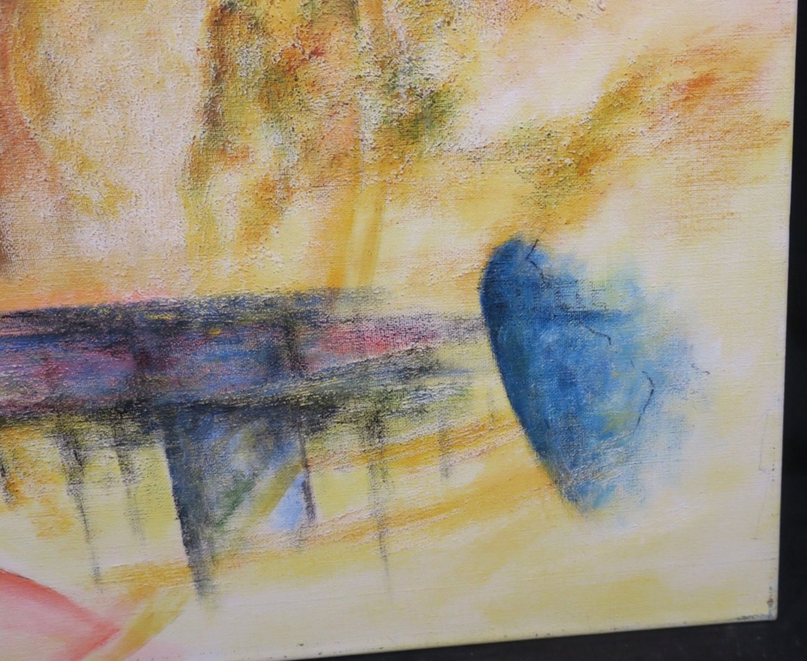 Conditie kunstwerk: In goede staat, maar met beschadigingen en verfverlies langs alle randen van het doek.