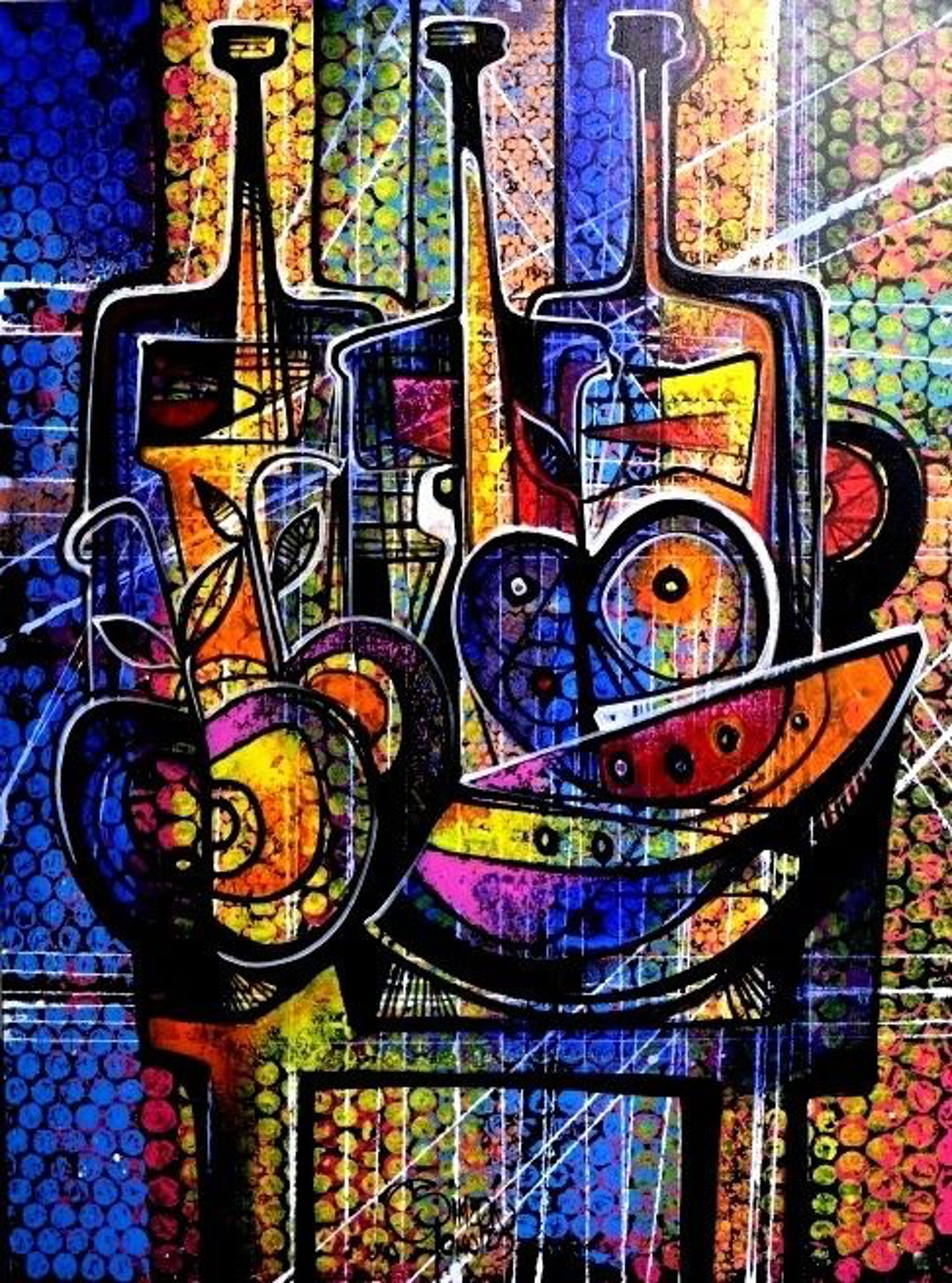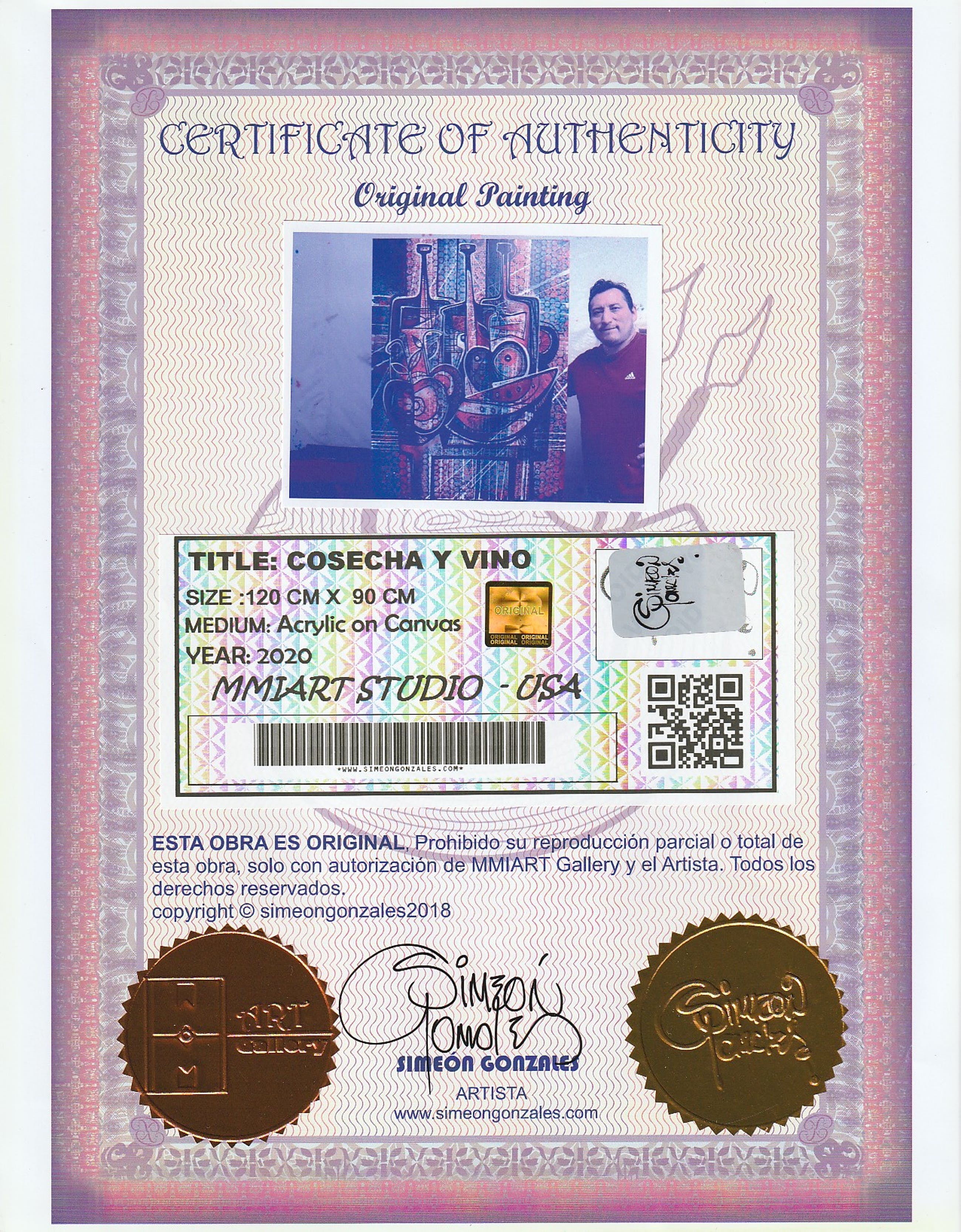 " Cosecha y Vino " Acrylschilderij van Simeon Gonzales 120 cm x 90 cm , gesigneerd aan de voorzijde + certificaat van echtheid 2020, met 2 stickers en code. Het schilderij zal opgerold worden verzonden. het kan ook op aanvraag opgespannen worden op een stevig houten spieraam , uiteraard kan het altijd eerst bezichtigd worden in Terneuzen, van harte welkom!