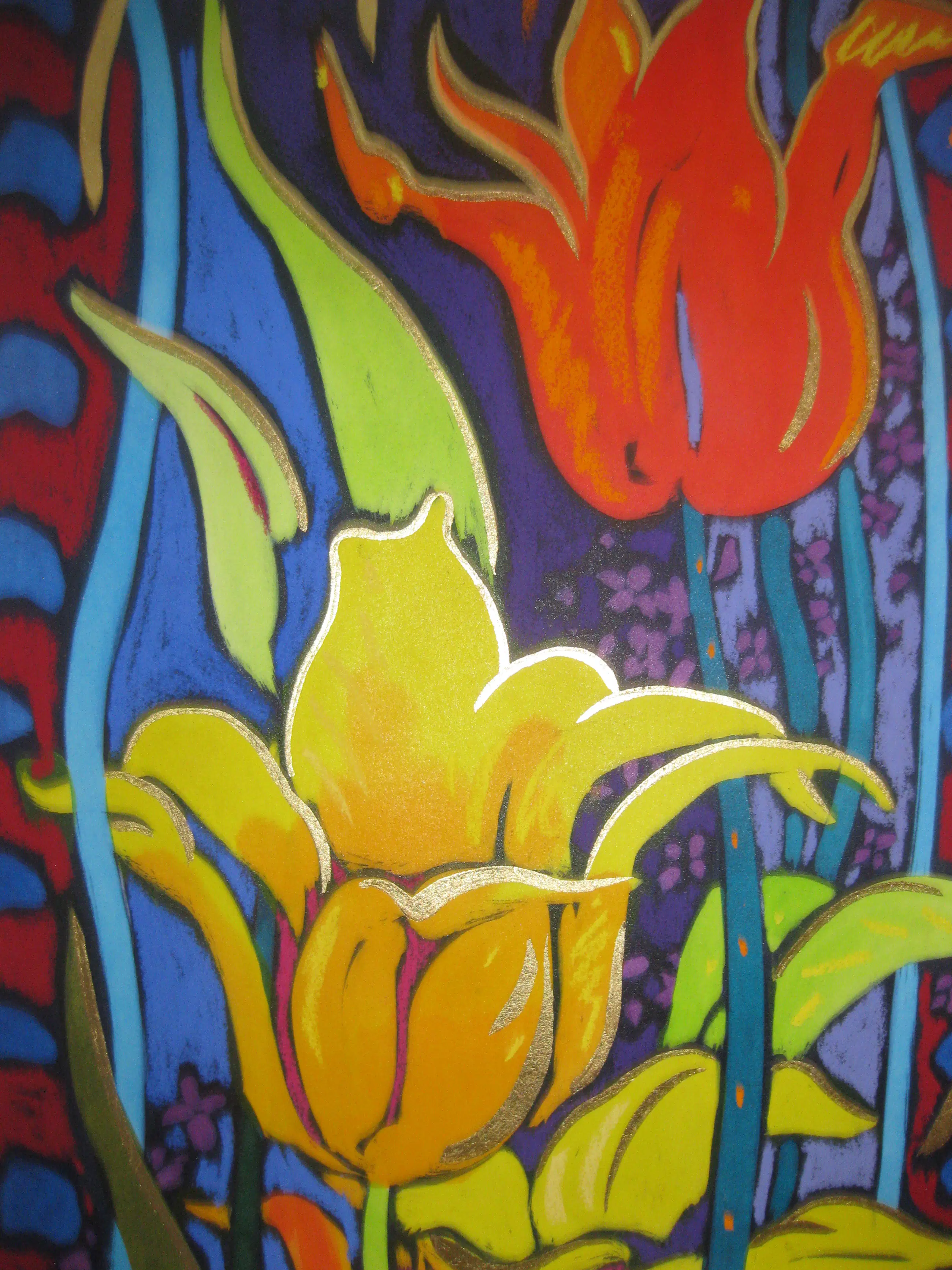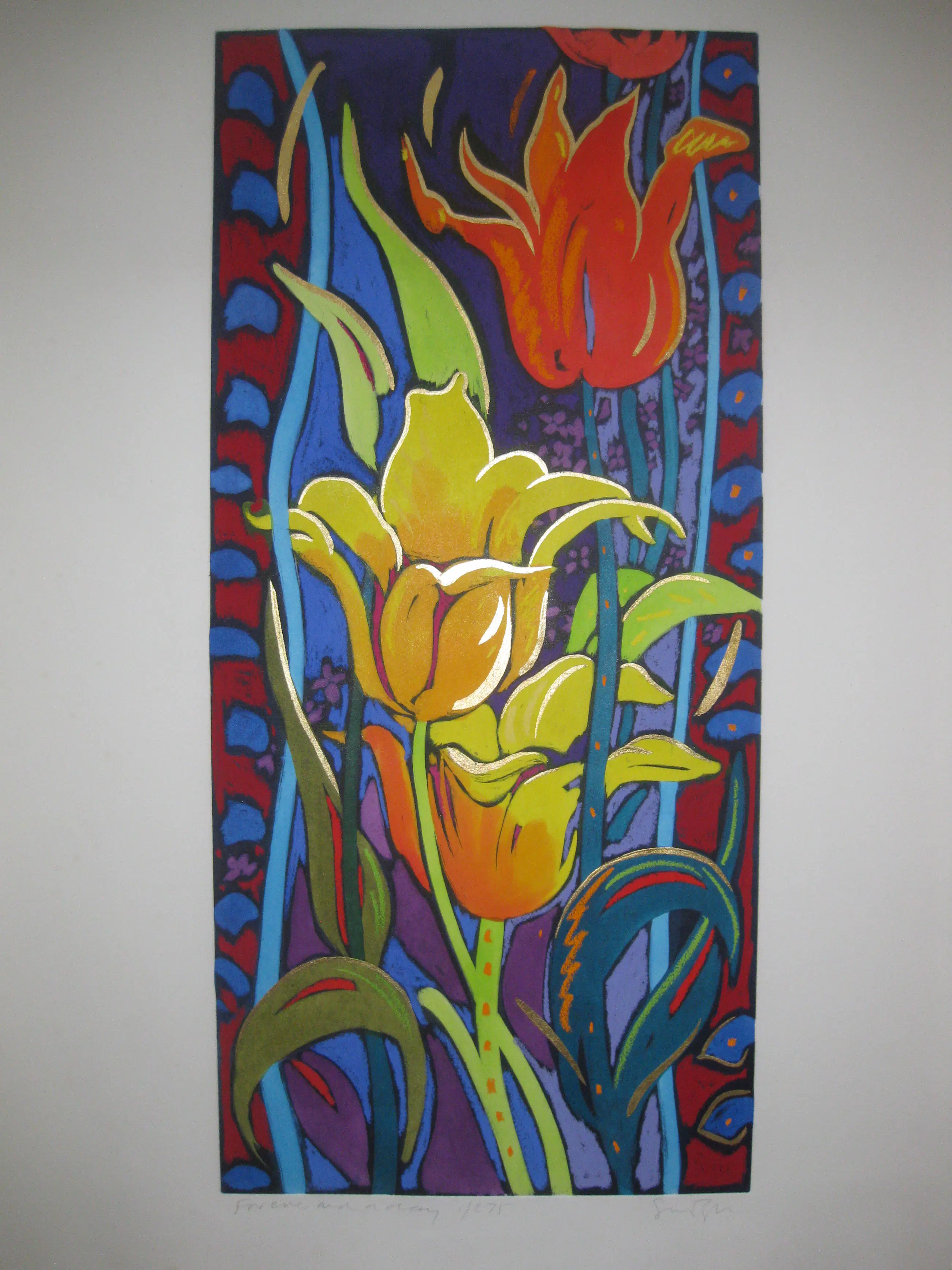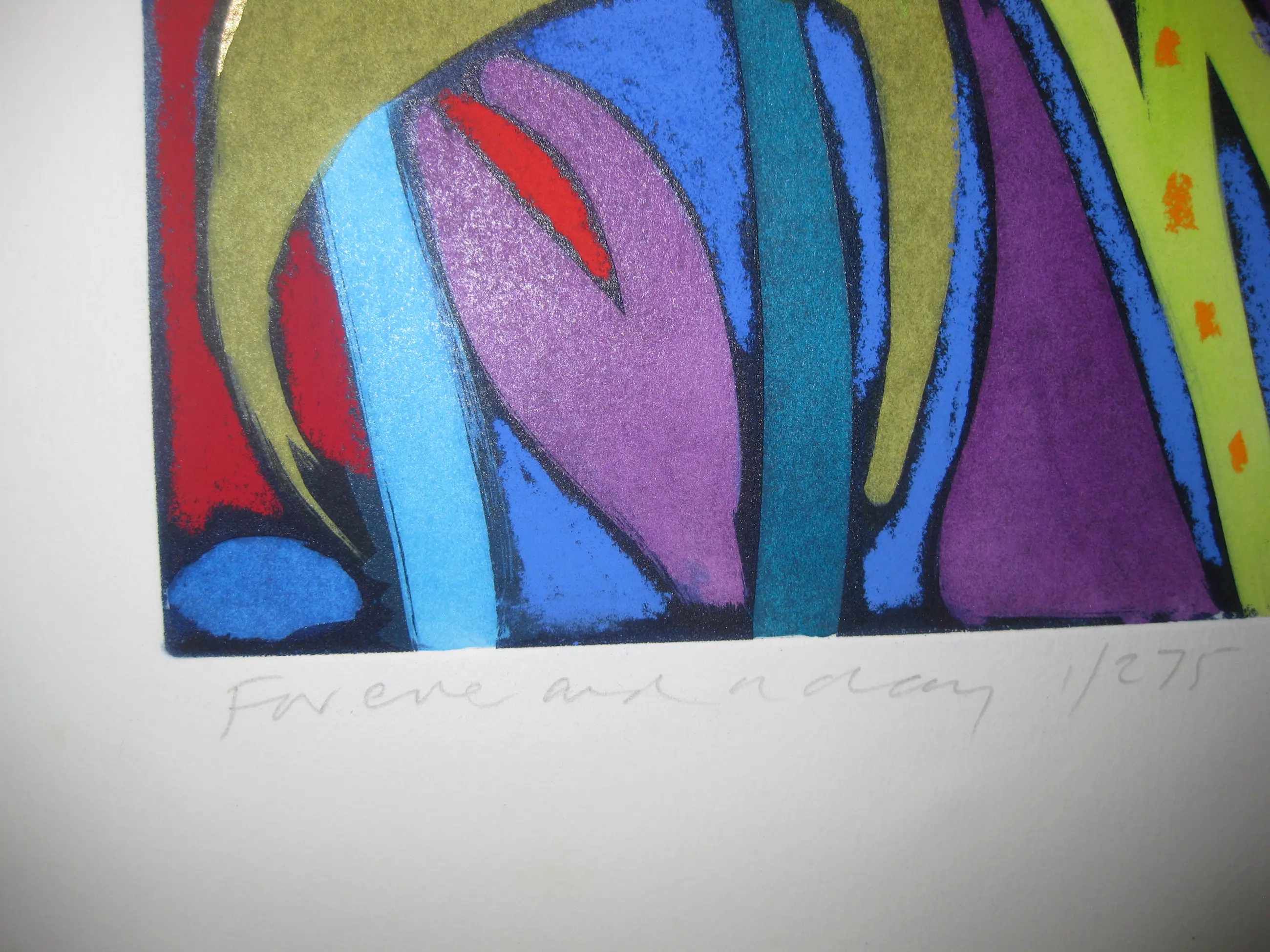 We hebben het hier over een bijzonder sprankelende ets/aquatint. De kleuren spatten van het papier af.