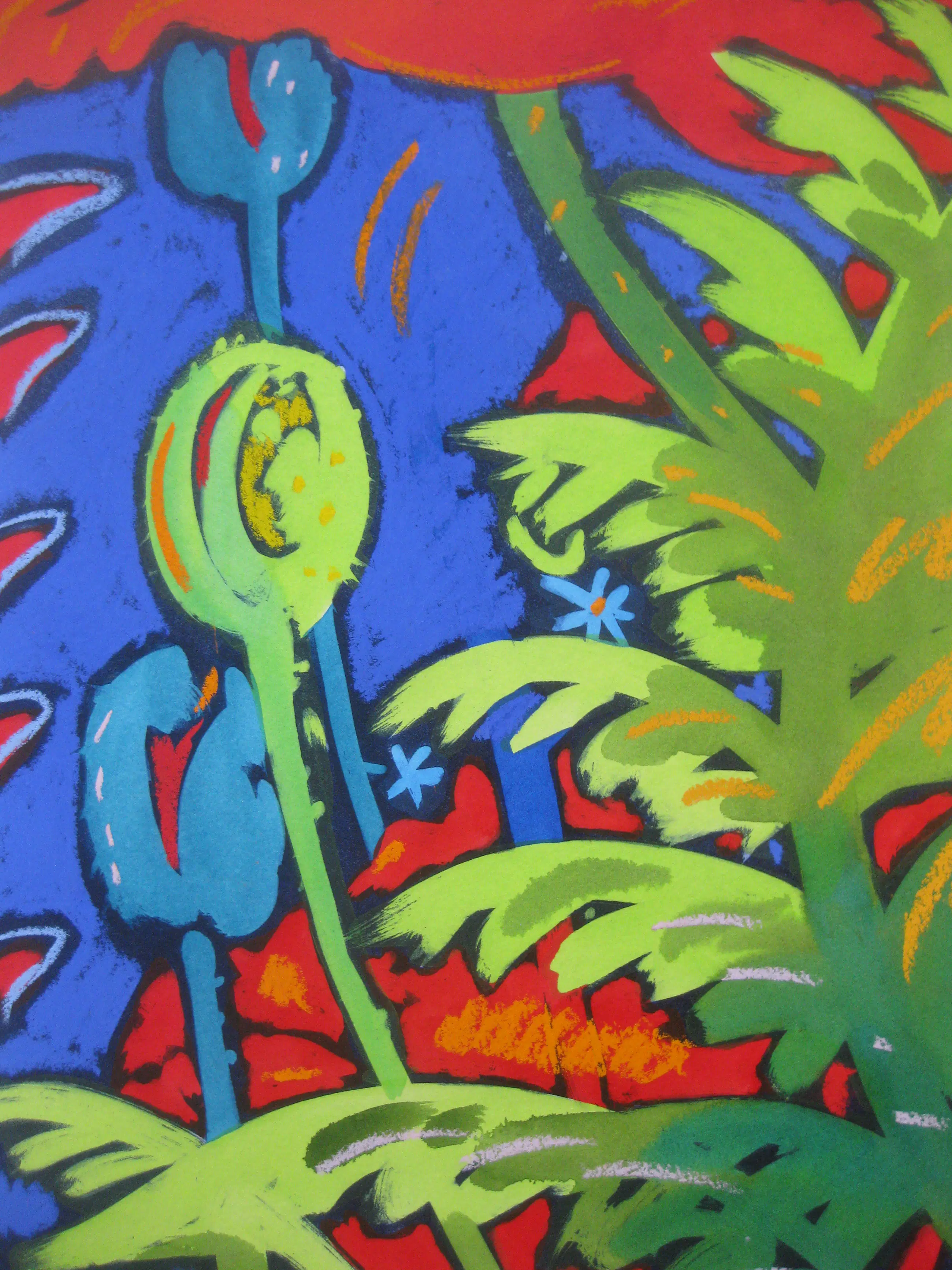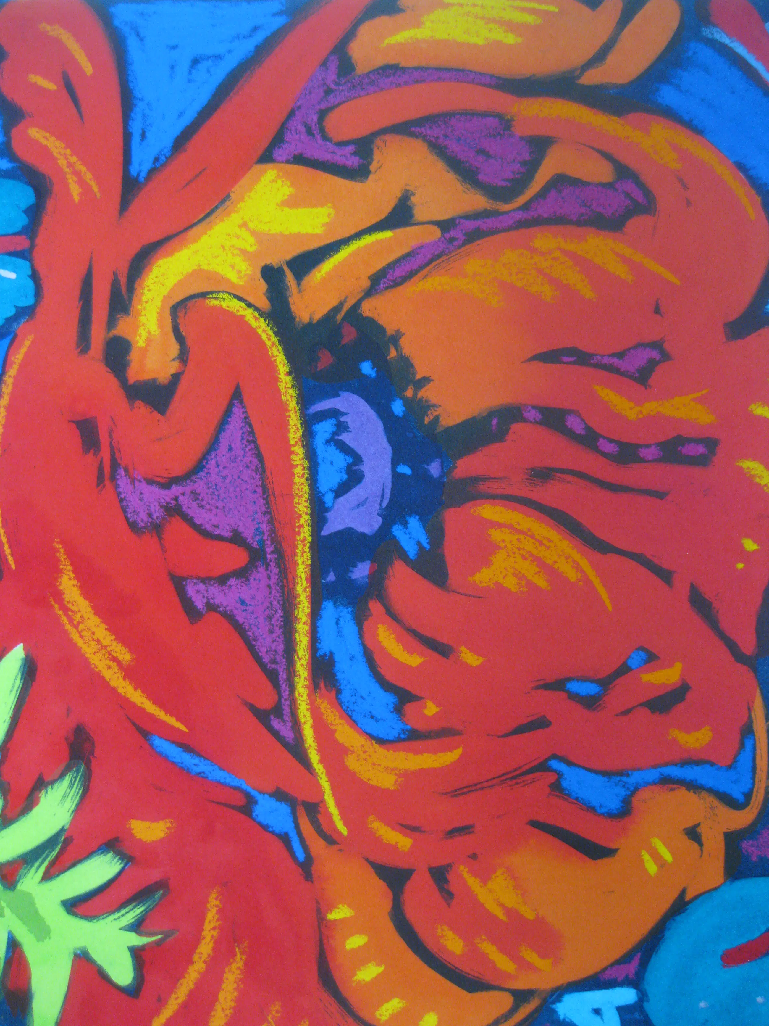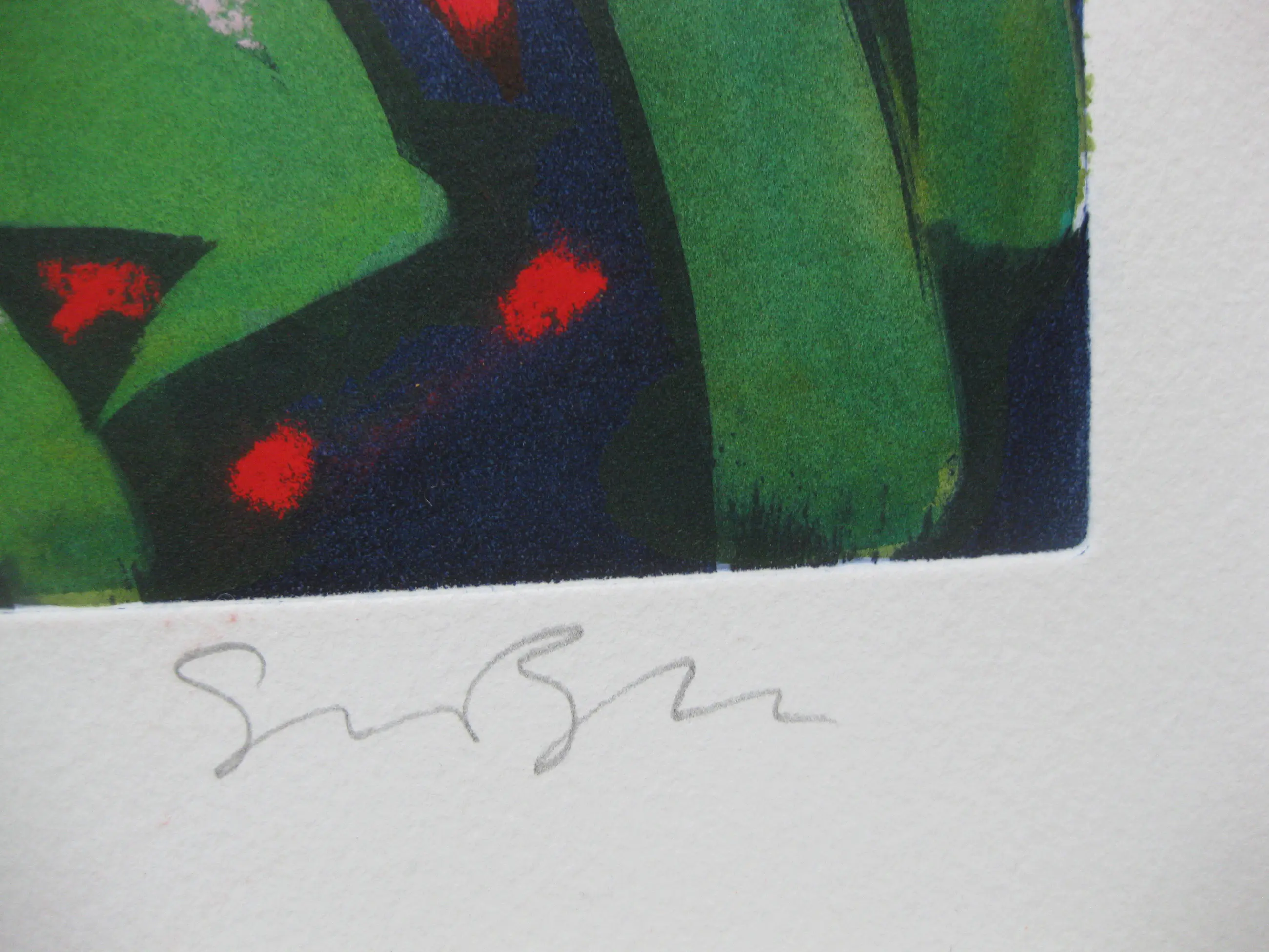 We hebben het hier over een bijzonder sprankelende ets/aquatint. De kleuren spatten van het papier af.