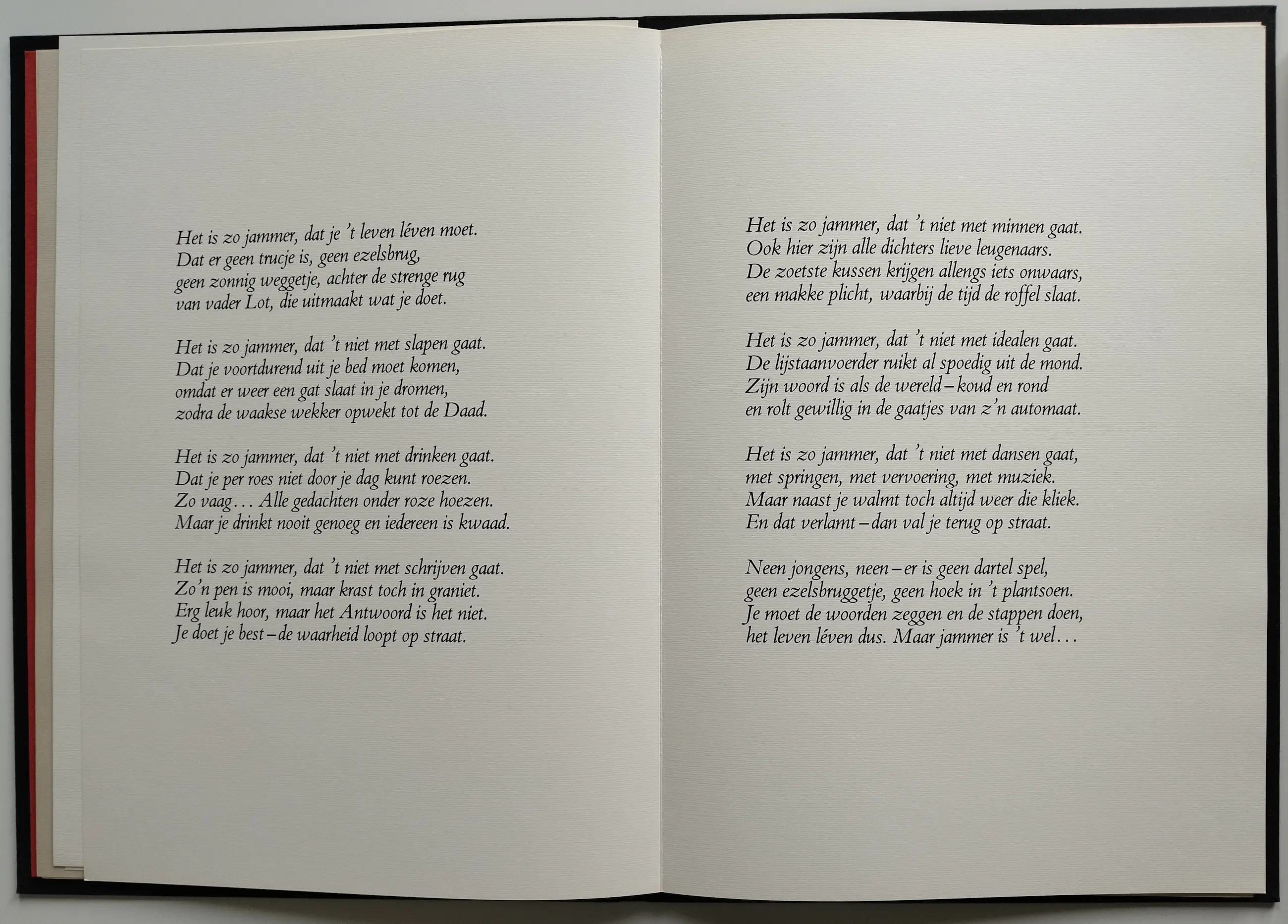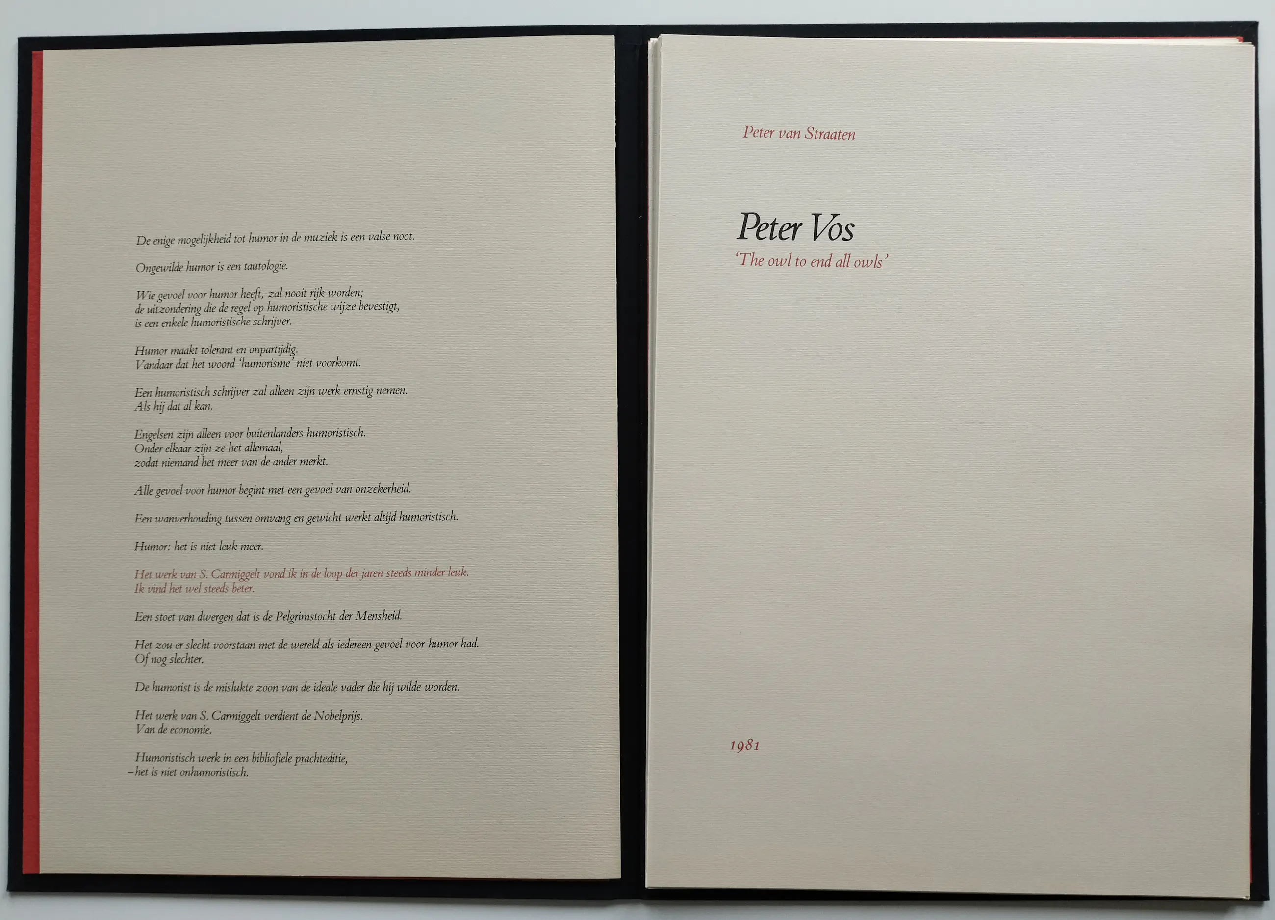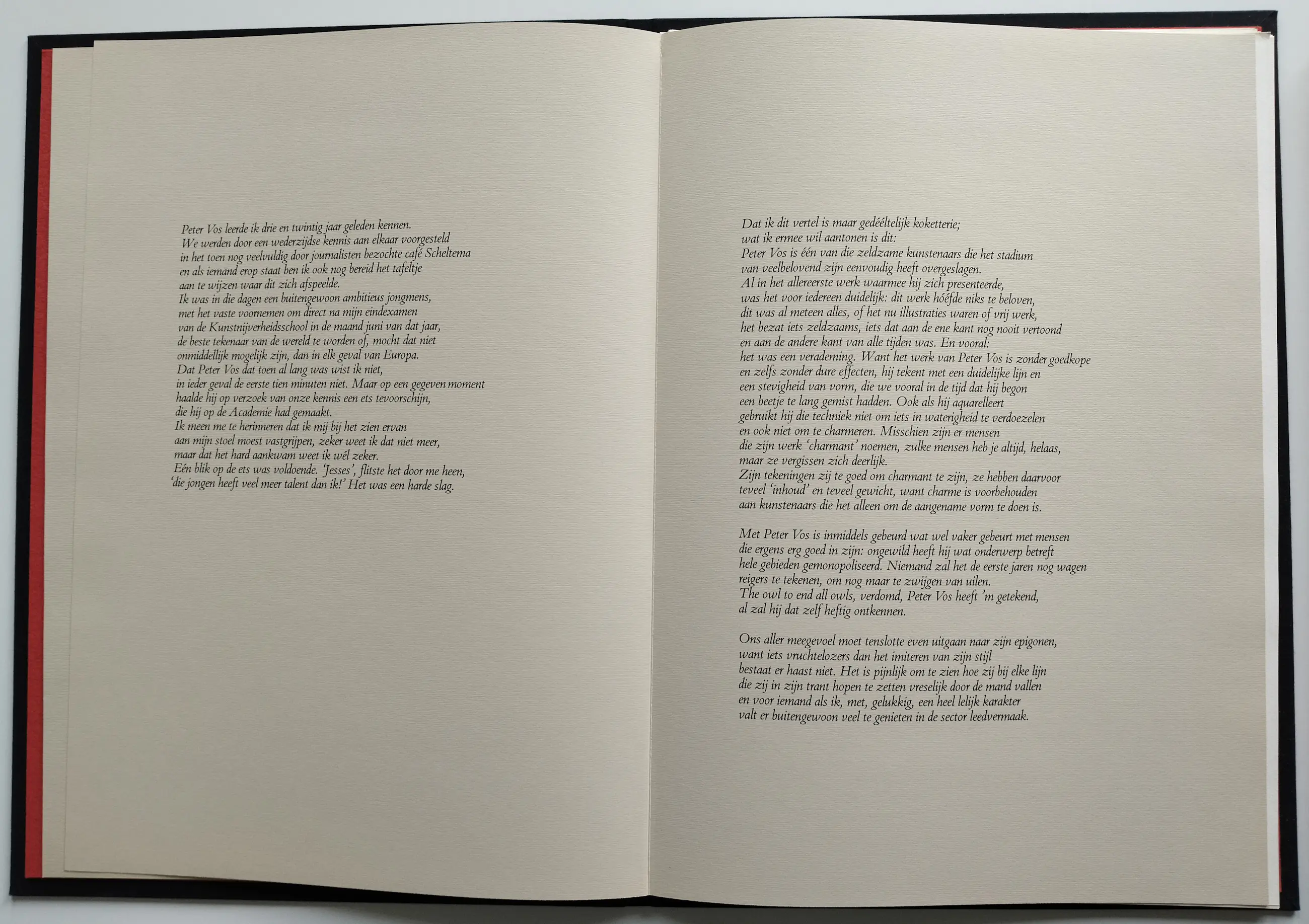 De 2 litho’s van Peter Vos ontbreken. Op een voorblad zijn 2 vlekjes zichtbaar. Overig in goede staat.