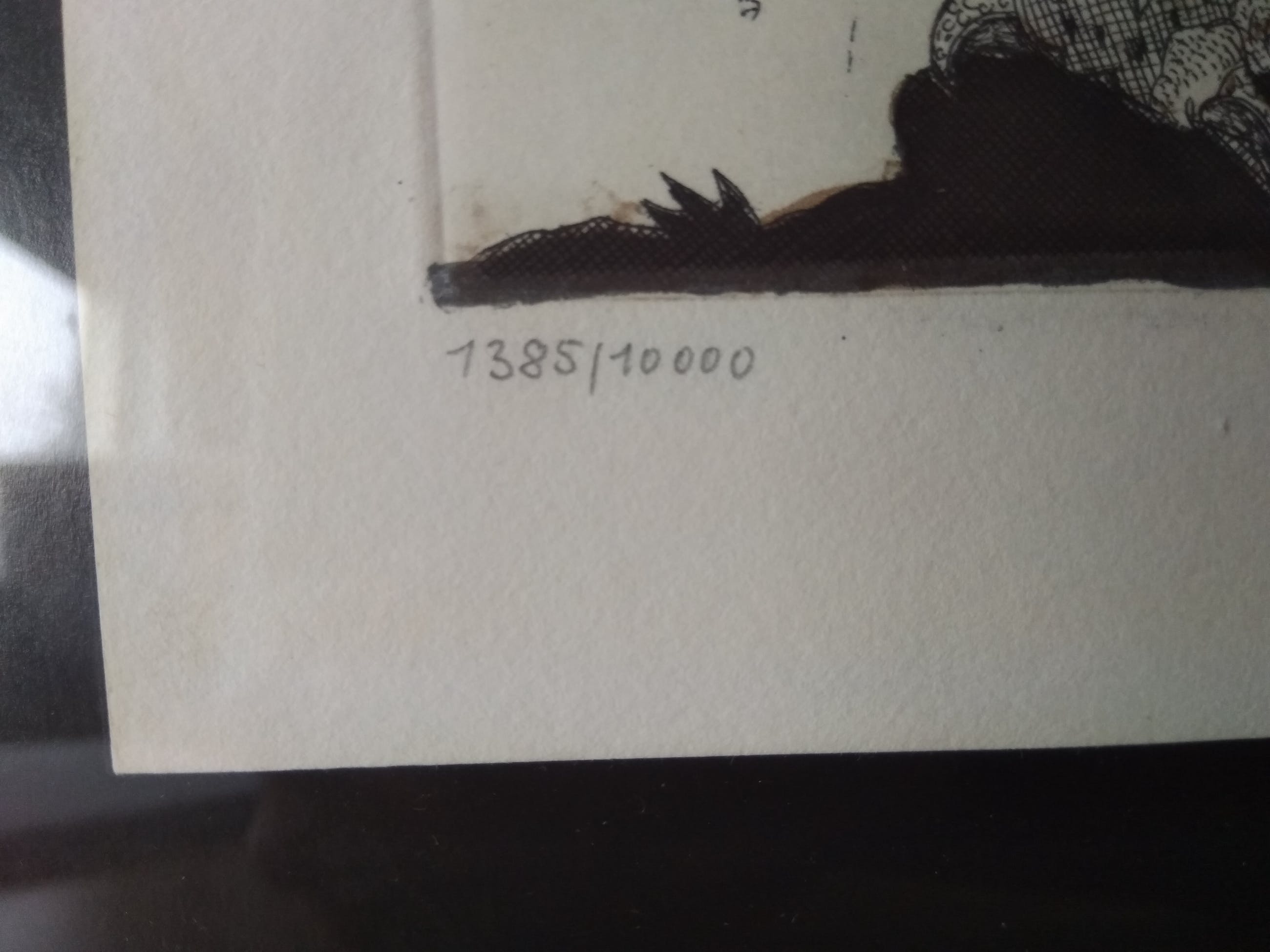 Ets en original-offset. Oplage 10.000 exemplaren, genummerd en hand gesigneerd. Nr. 1385 van 10.000.
