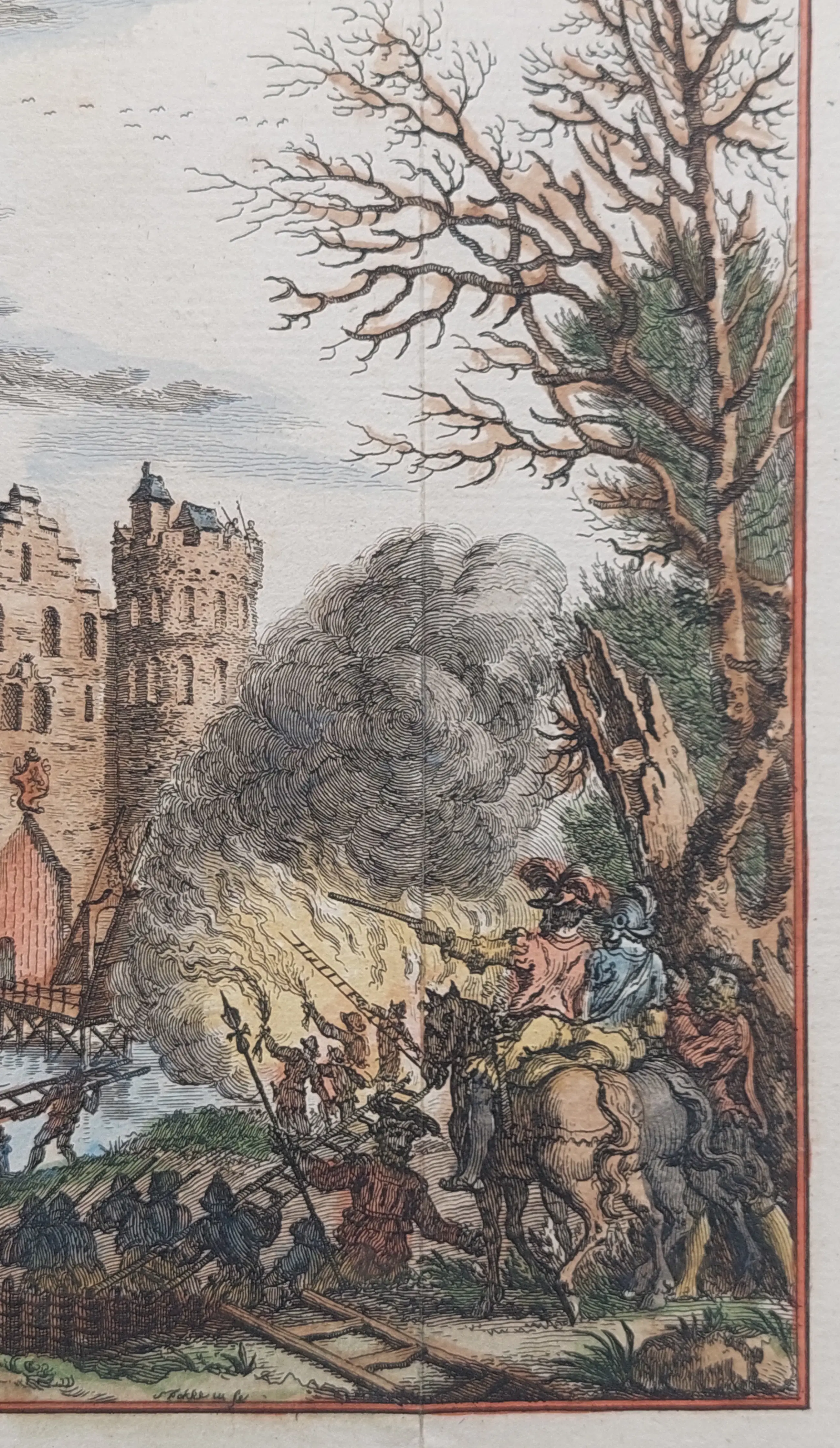Conditie: uitstekend. Voldoende marges. Met vouwen als uitgegeven. Verso: blank. Mooi handgekleurd.