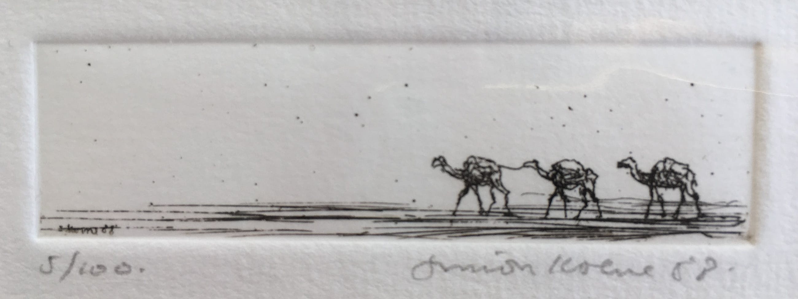 Links in de plaat gesigneerd: S. Koene '88 Rechts onder met potlood gesigneerd: Simon Koene '88 In passe-partout