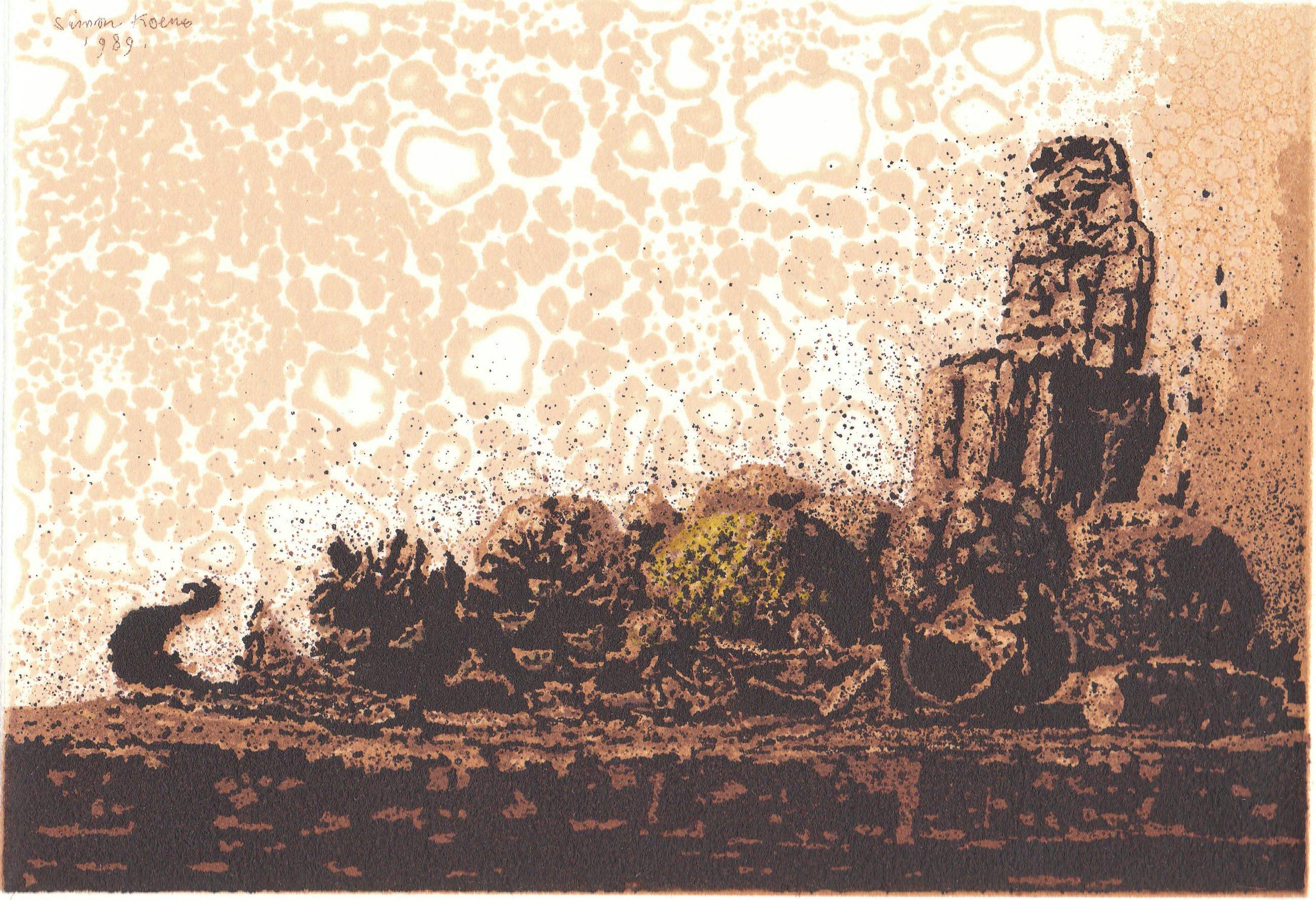 Linksboven in de etsplaat gesigneerd: Simon Koene 1989 Rechtsonder met potlood gesigneerd: Simon Koene 1989