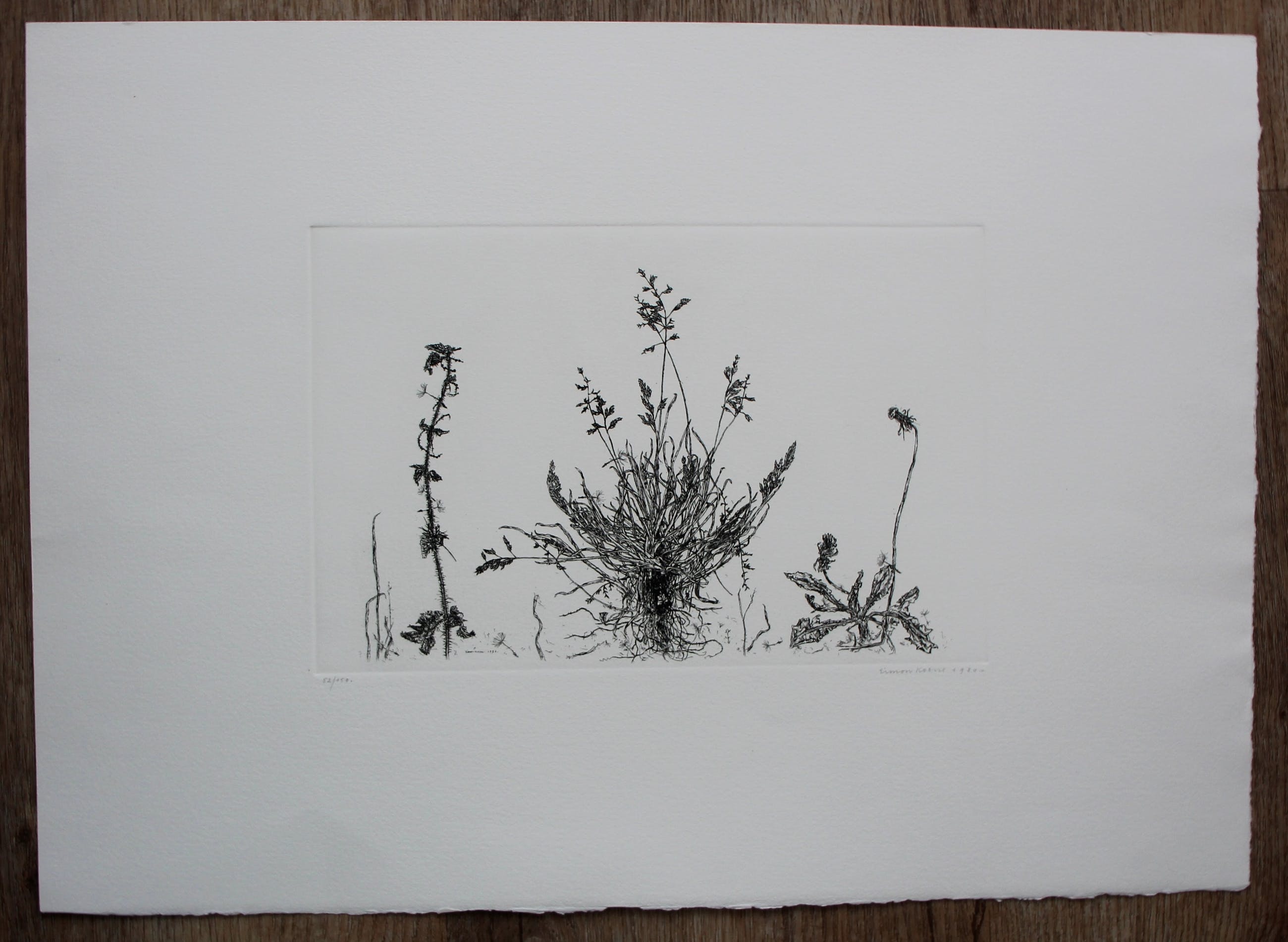 Ets van Simon Koene uit 1980. Titel: Plantensoorten. Nummer: 52/150. Afmeting blad: H39 x b54cm. Afmeting voorstelling: H19 x b29.5 cm. Het werk is rechts onderaan gesigneerd door de kunstenaar. De authenticiteit van het aangeboden werk wordt volledig gegarandeerd. Een certificaat van echtheid kan, op aanvraag, worden gemaild.