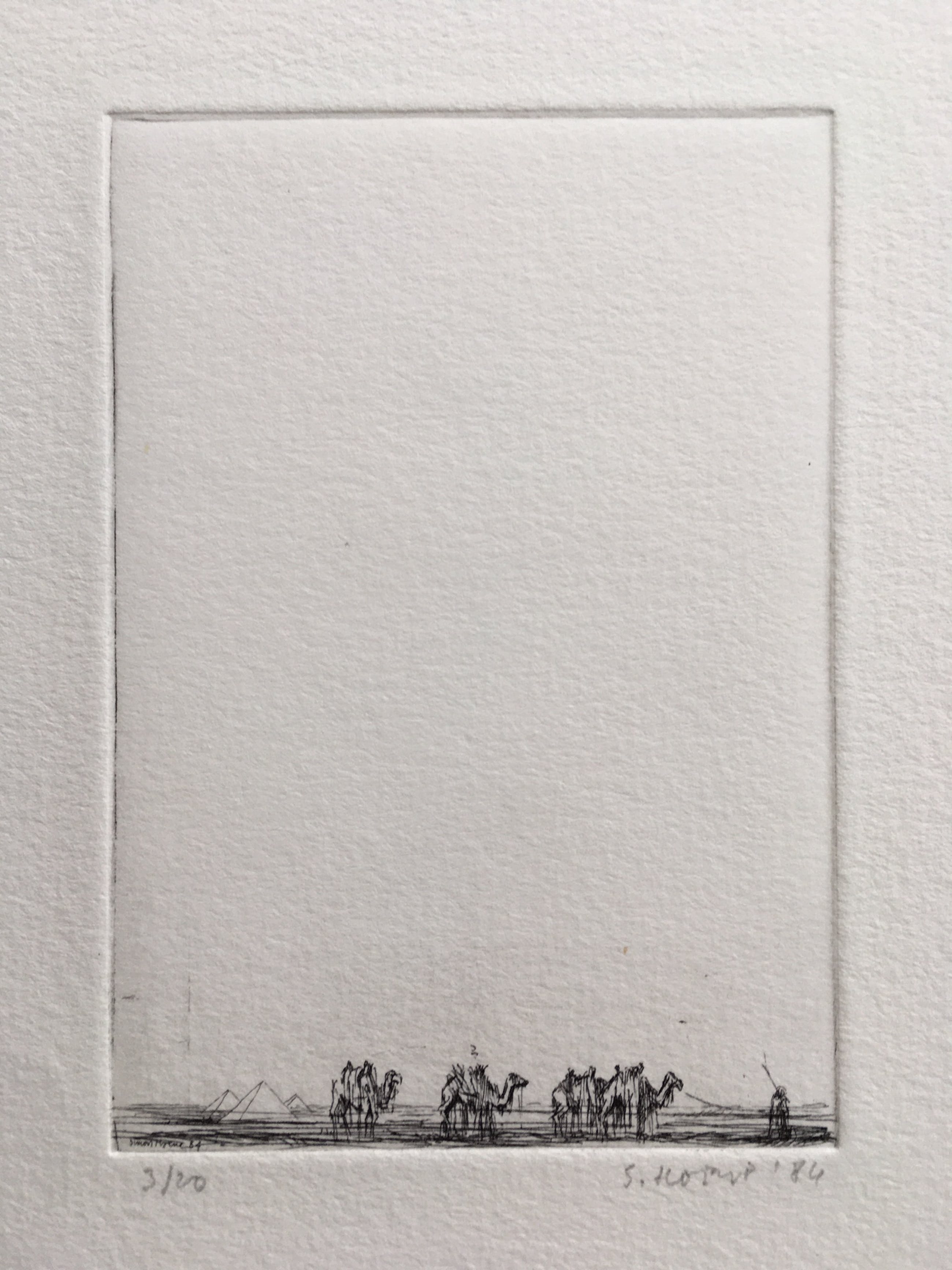 Simon Koene - Figuur met 4 kamelen in vlakte met piramiden kopen? Bied vanaf 10!