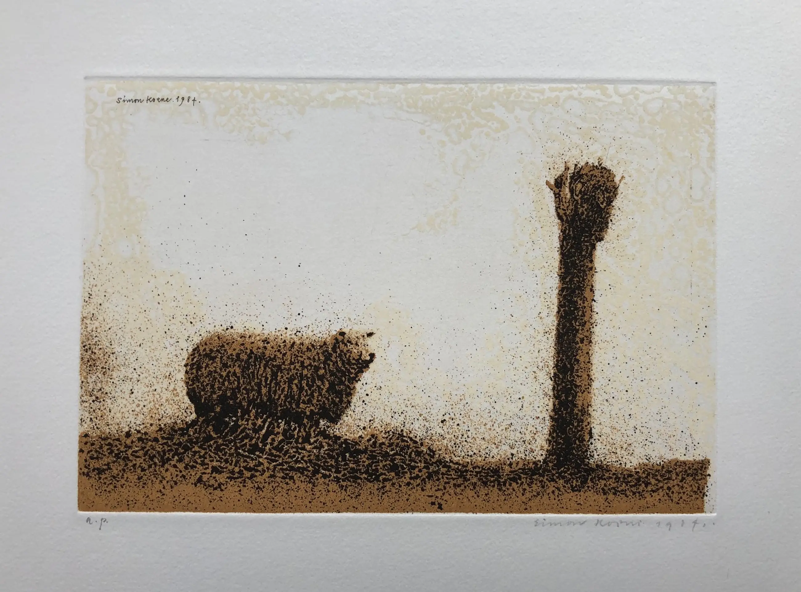 Linksboven in de etsplaat gesigneerd: Simon Koene 1984 Rechtsonder met potlood gesigneerd: Simon Koene 1984