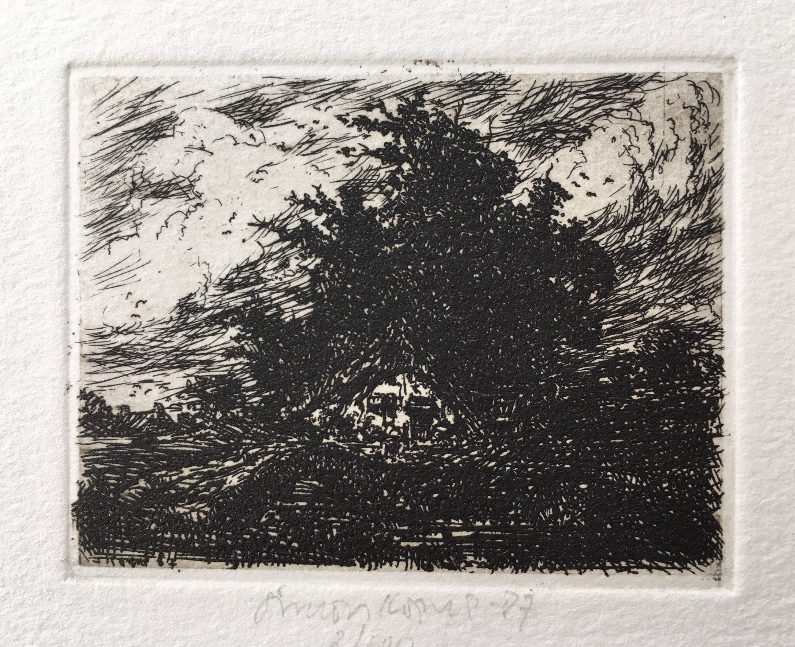 Linksonder in de etsplaat gesigneerd: S. Koene '87 Midden onder met potlood gesigneerd: Simon Koene '87