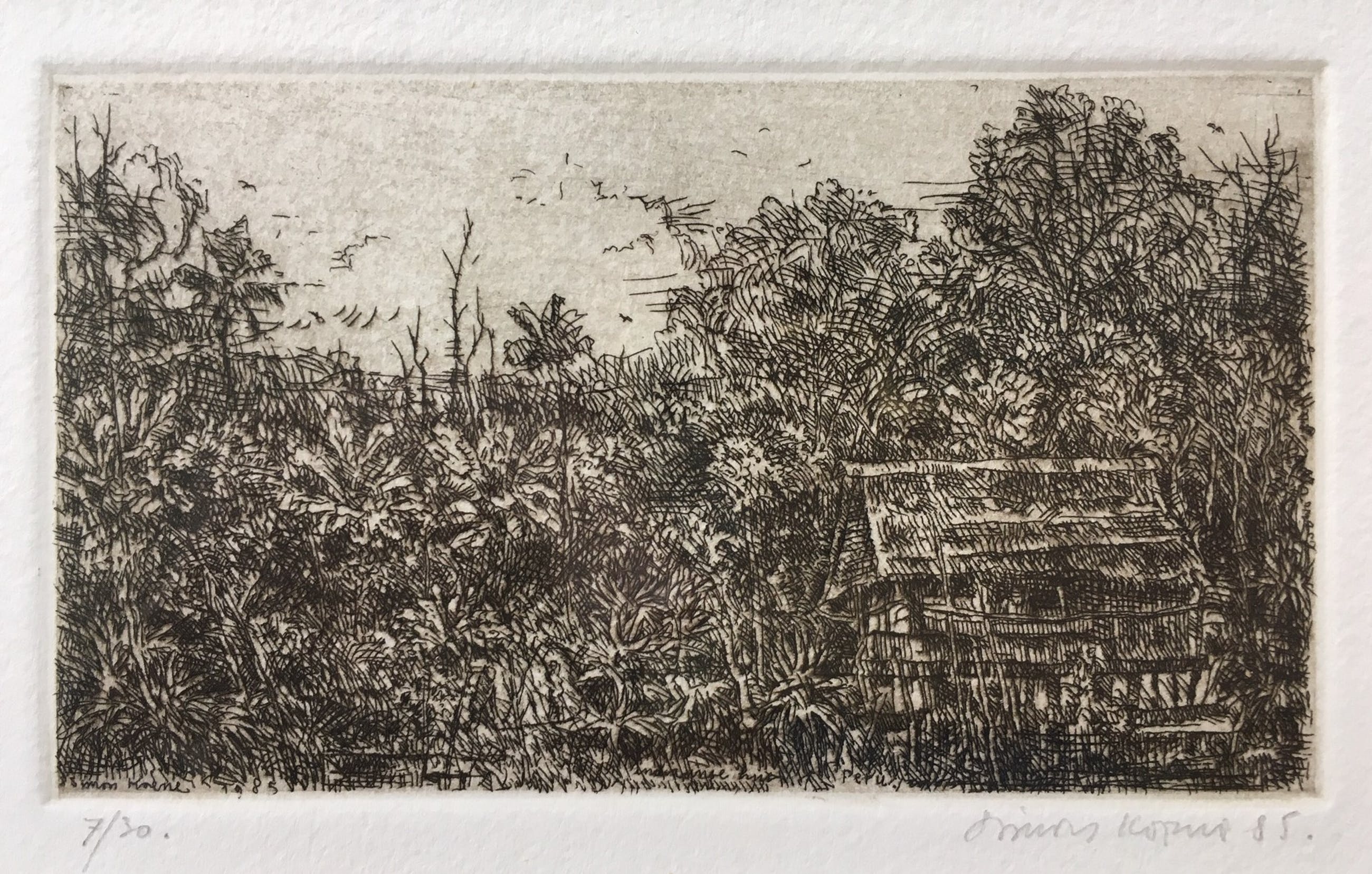 Linksonder in de etsplaat gesigneerd: Simon Koene 1985. Rechtsonder met potlood gesigneerd: Simon Koene '85.