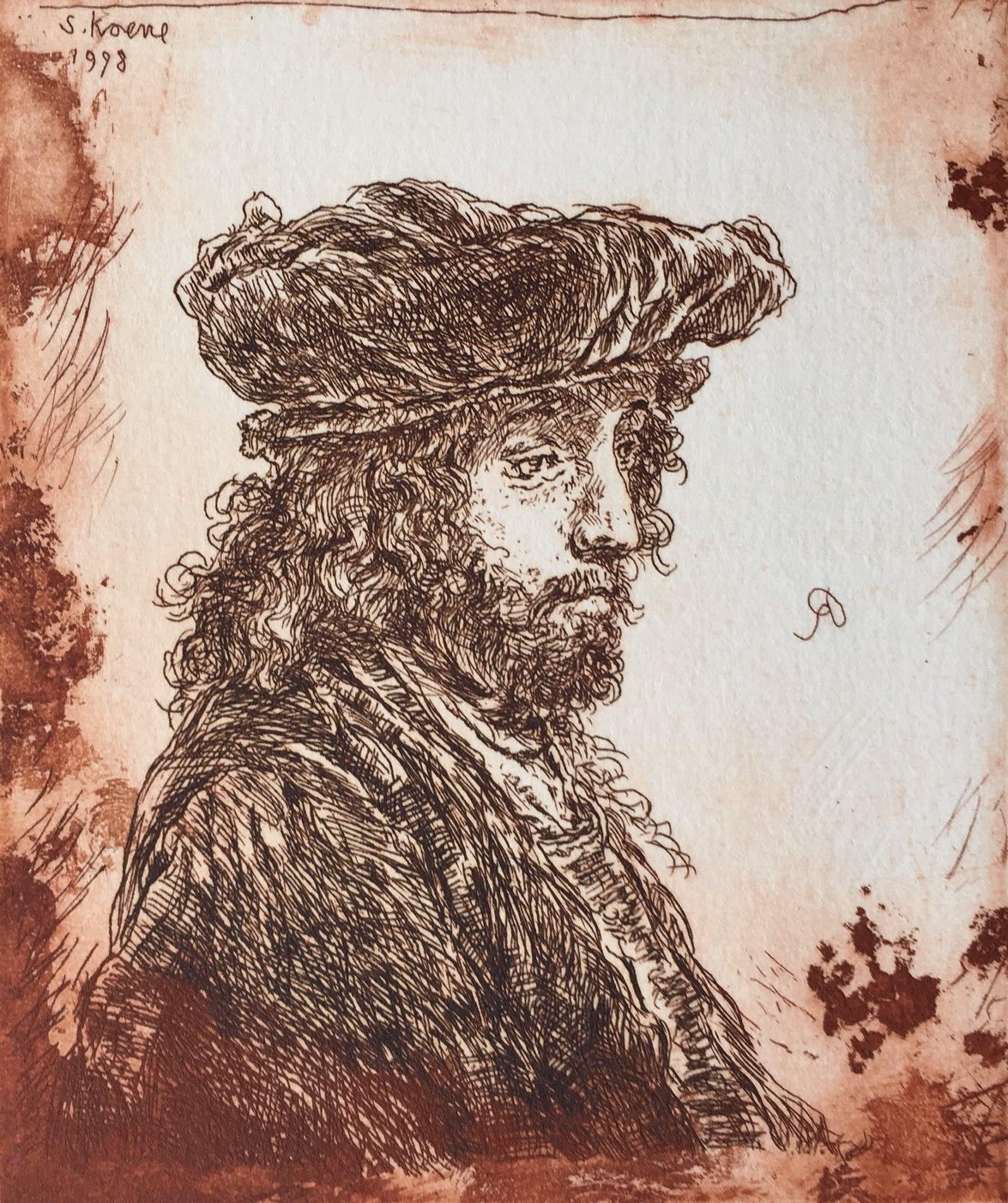 Uit de serie: 'Studies naar Rembrandt'. Linksboven in de etsplaat gesigneerd: S. Koene 1998 Rechtsonder met potlood gesigneerd: Simon Koene '98