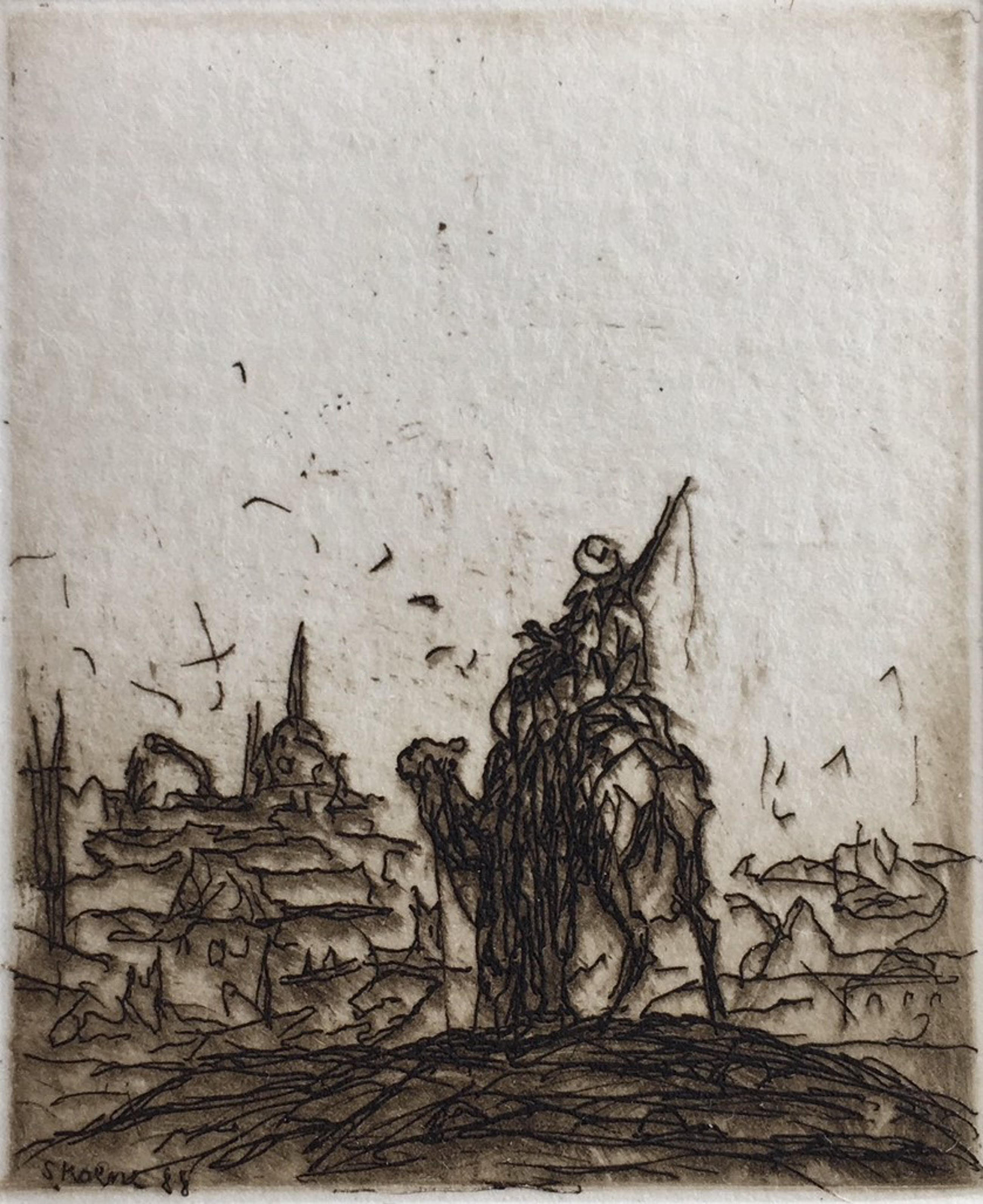 Linksonder in de etsplaat gesigneerd: S. Koene '88 Midden onder met potlood gesigneerd: Simon Koene '88 en oplagenummer
