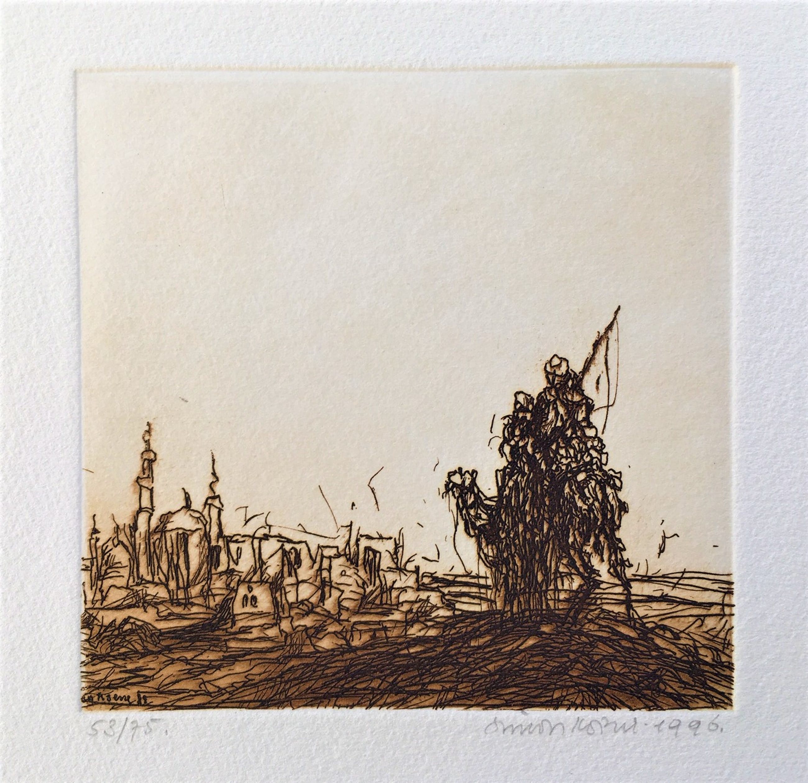Linksonder in de etsplaat gesigneerd: S. Koene '88 Rechtsonder met potlood gesigneerd: Simon Koene 1996