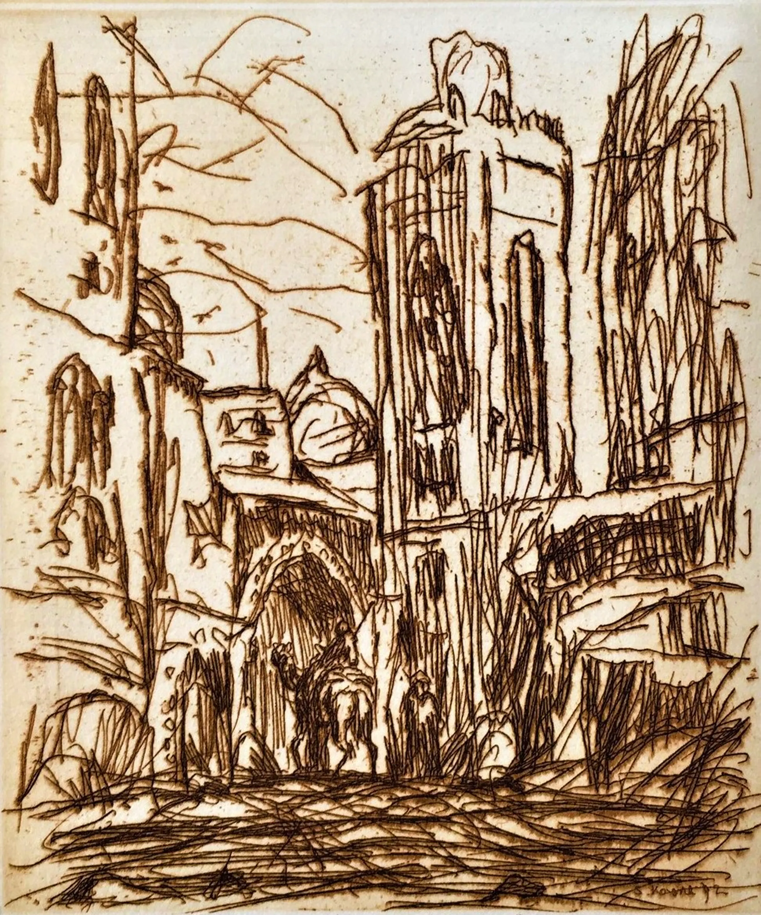 Rechtsonder in de etsplaat gesigneerd: S. Koene '92 Rechtsonder met potlood gesigneerd: Simon Koene 1992