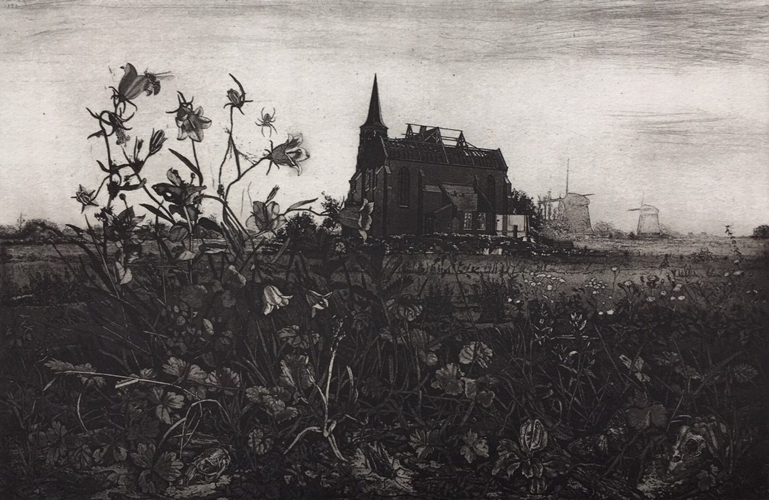 Linksboven in de etsplaat gesigneerd: S. Koene 1975 Rechtsonder met potlood gesigneerd: Simon Koene 1975