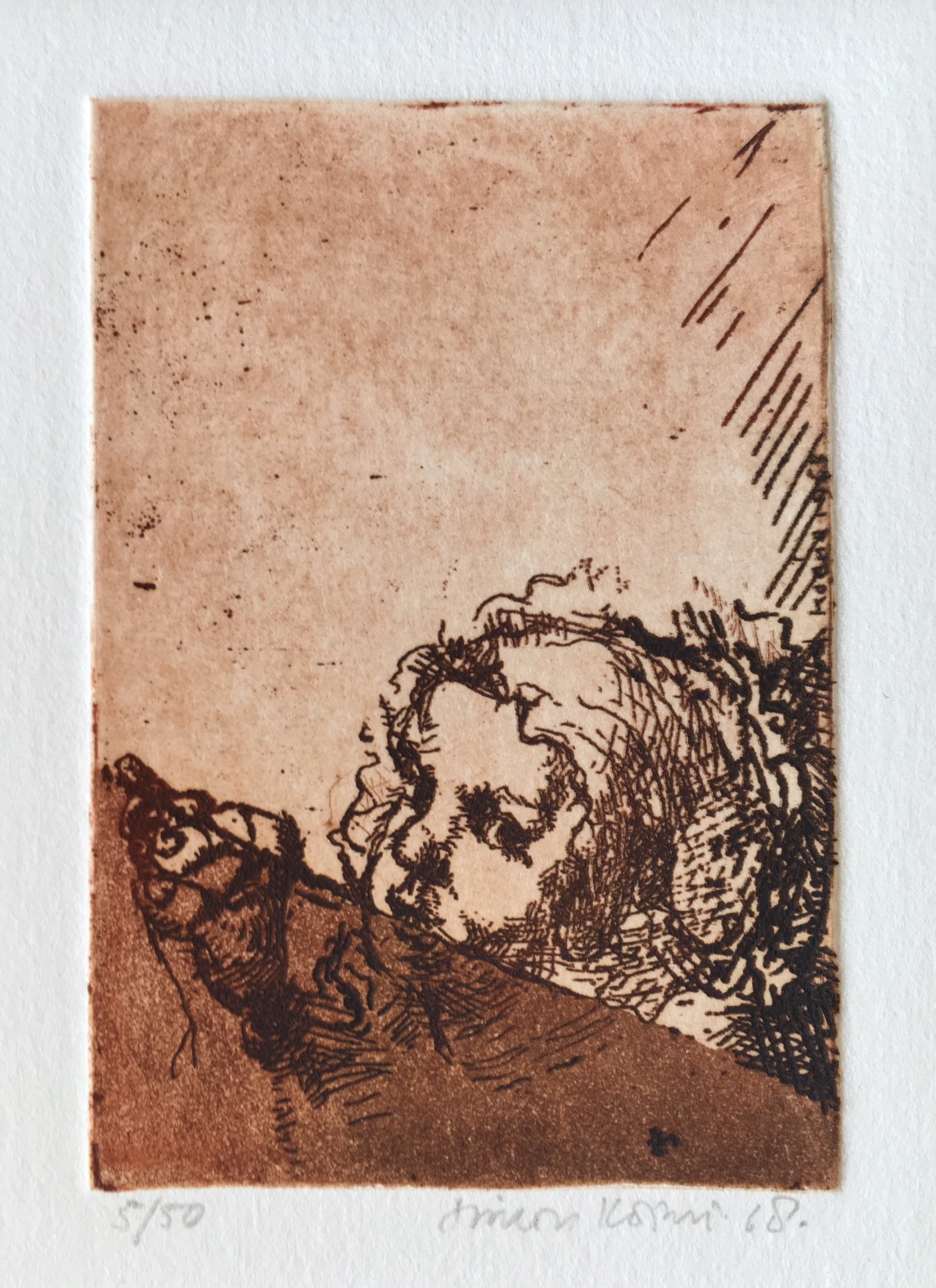 Zeer vroege ets. Rechts in de etsplaat gesigneerd: Koene 1968 Rechtsonder met potlood gesigneerd: Simon Koene '68