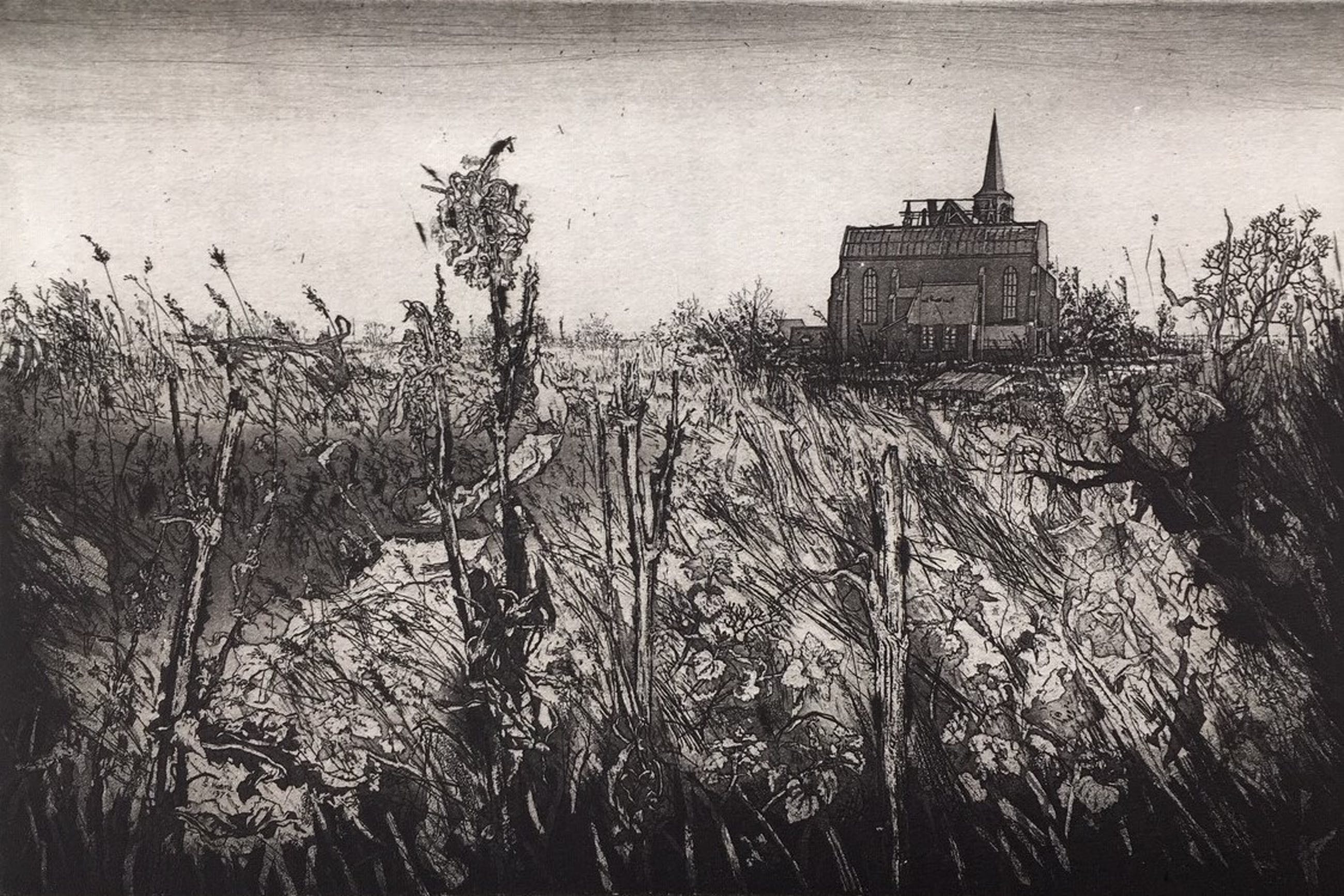 Linksonder in de etsplaat gesigneerd: S. Koene '74 Rechtsonder met potlood gesigneerd: Simon Koene 1974