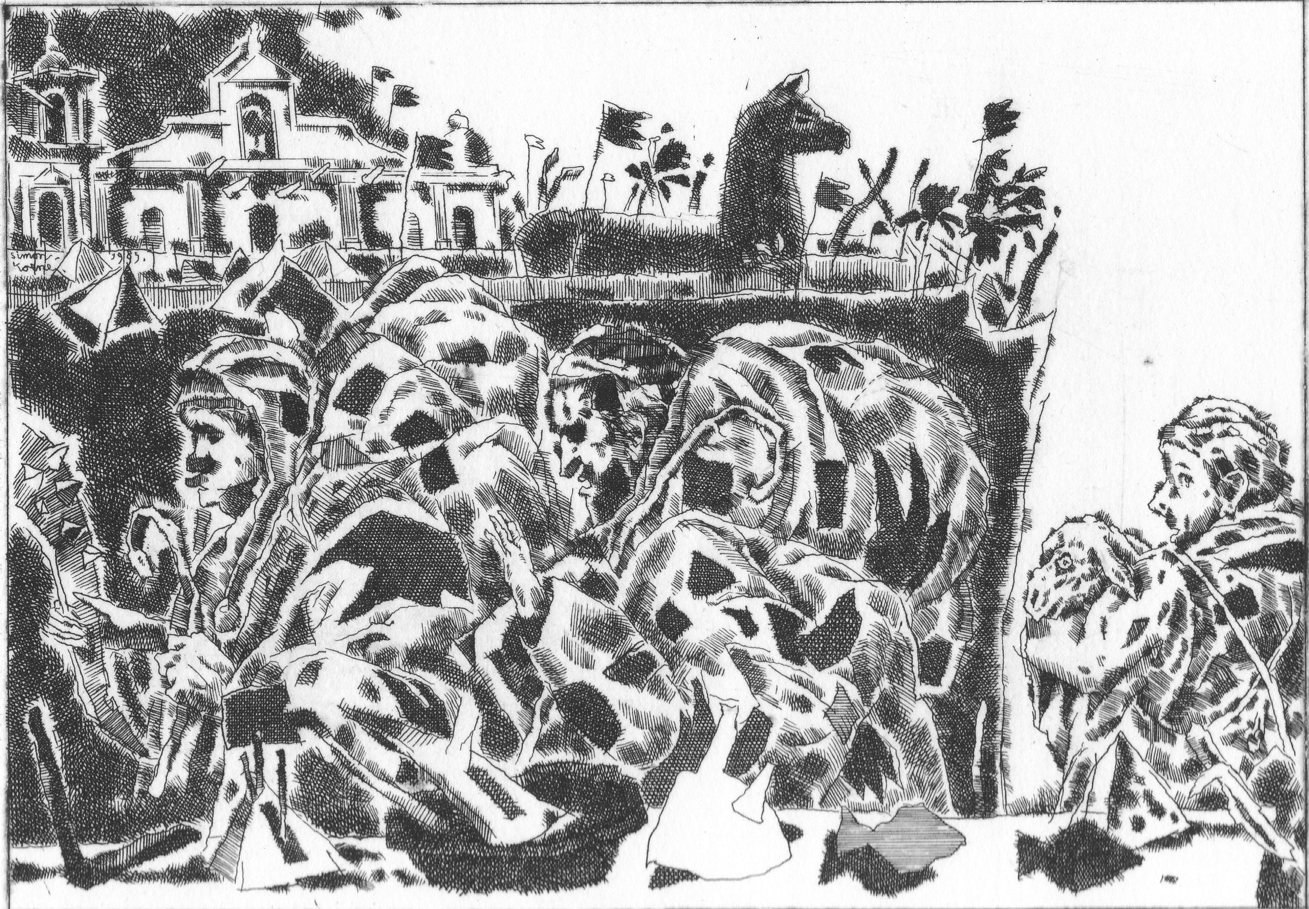 Links in de etsplaat gesigneerd: Simon Koene 1985 Rechtsonder met potlood gesigneerd: Simon Koene 1985