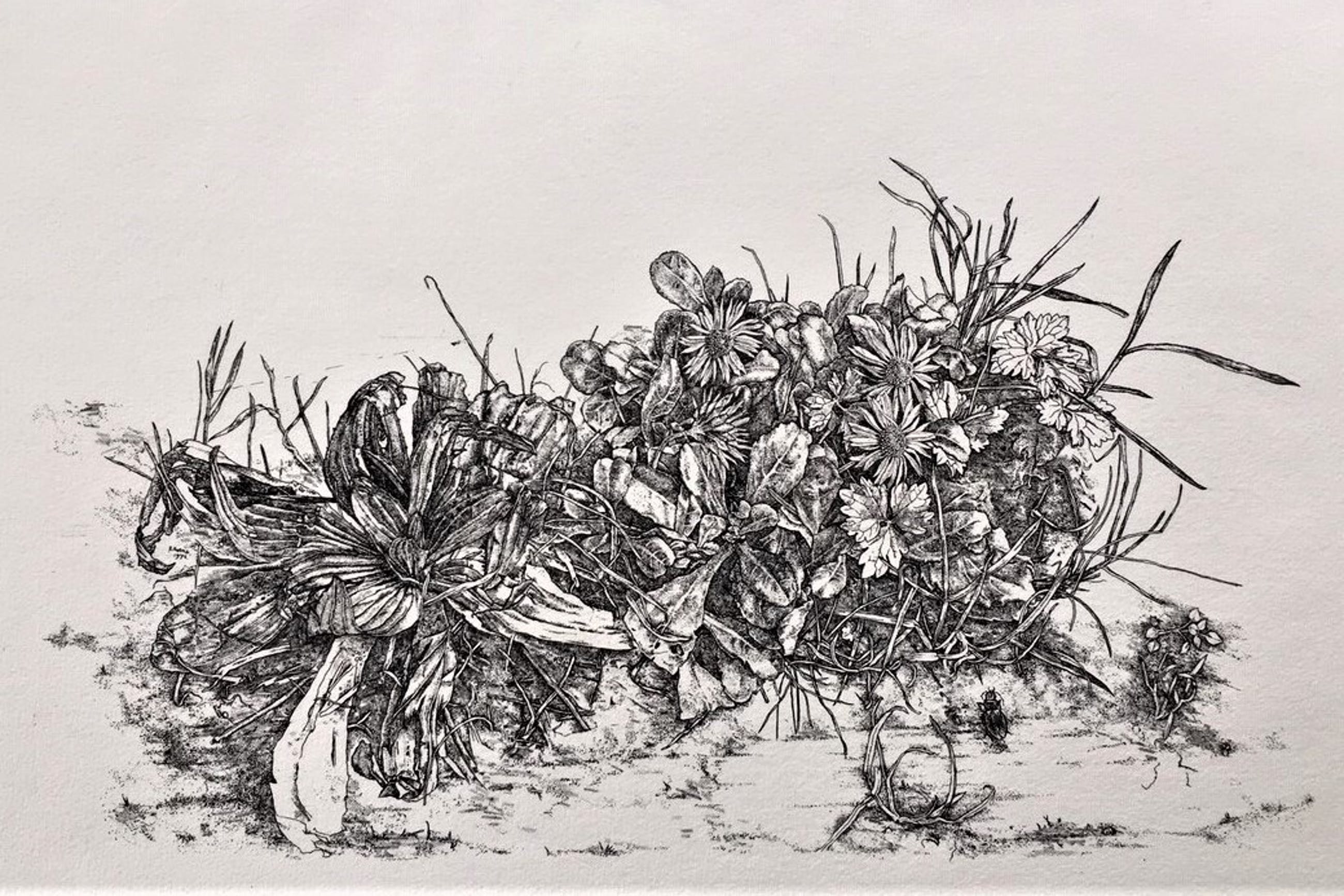 Linksonder in de etsplaat gesigneerd: S. Koene '74 Rechtsonder met potlood gesigneerd: Simon Koene 1974
