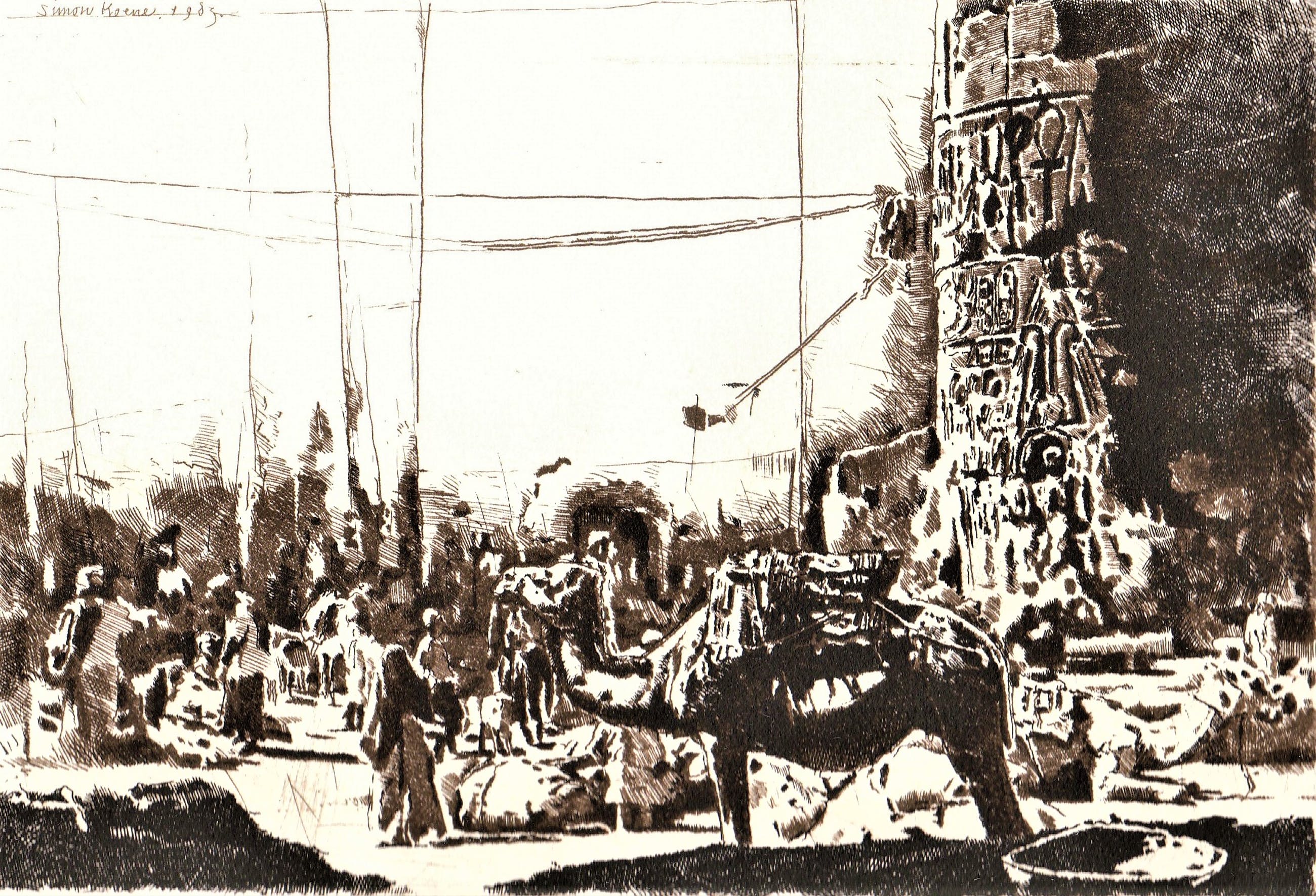Linksboven in de etsplaat gesigneerd: Simon Koene 1983 Rechtsonder met potlood gesigneerd: Simon Koene 1983